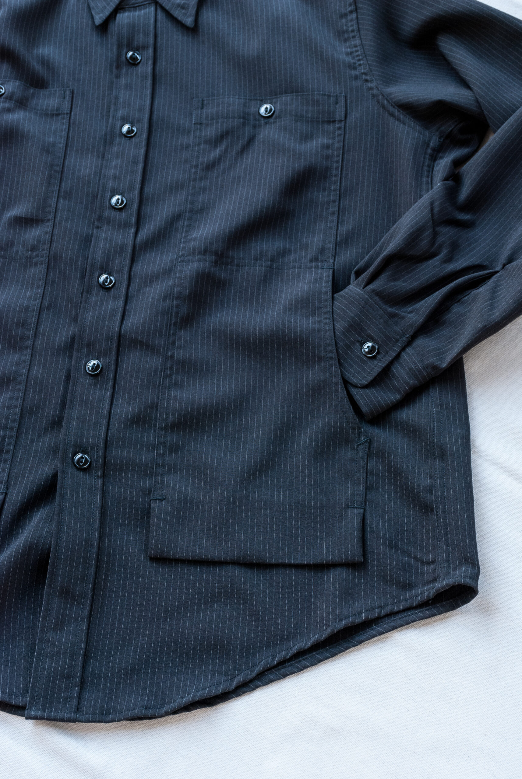生地は今季セレクトしまくったWool Like Tropicalのブラックストライプ。