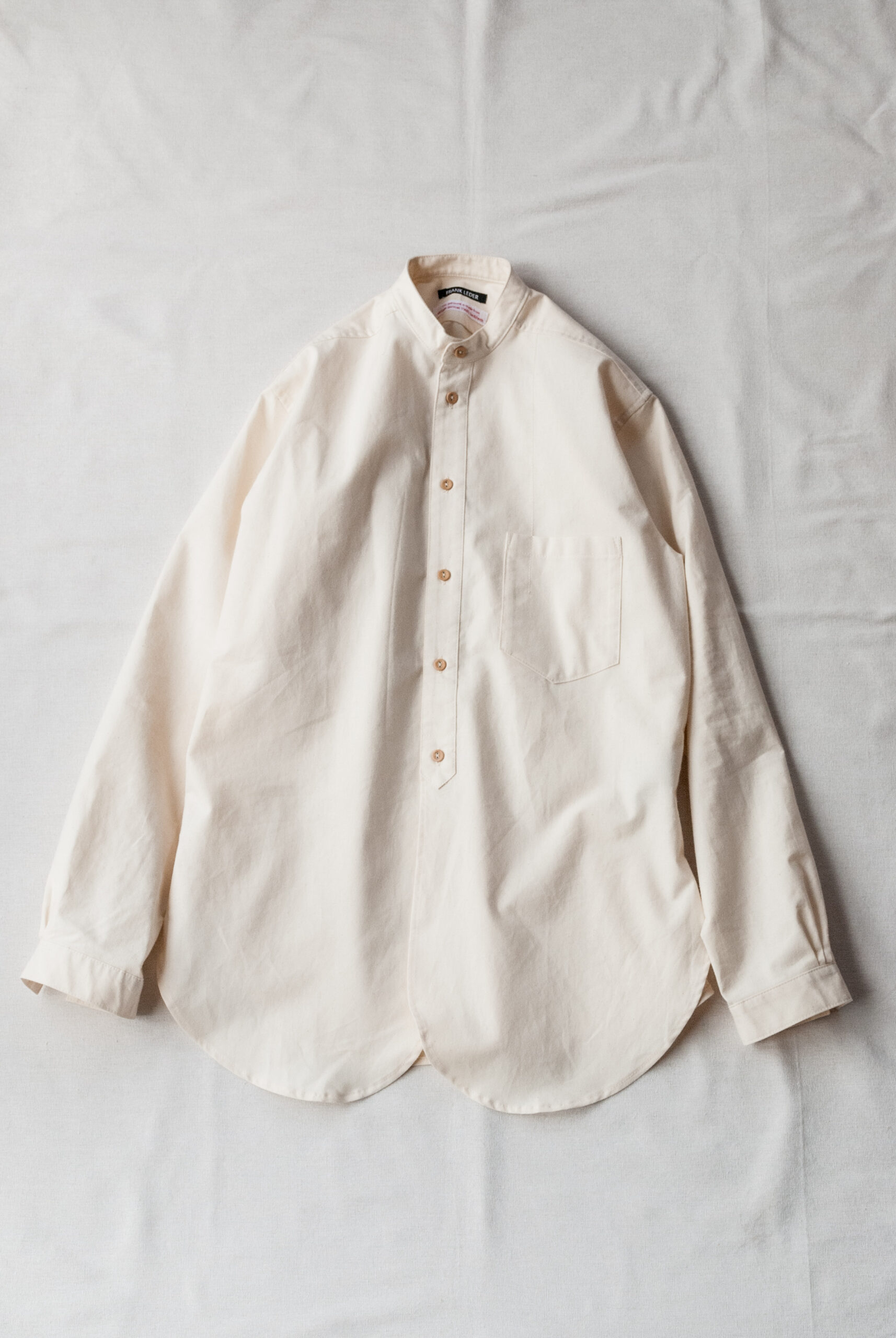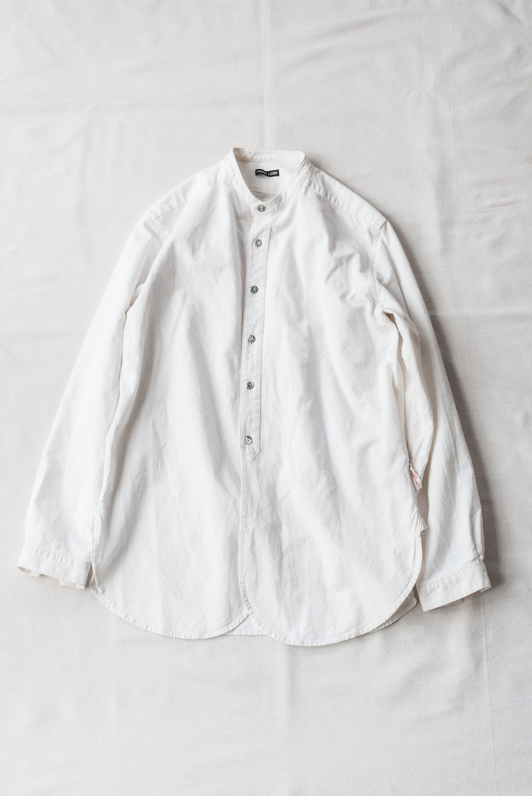 うちの定番としていつもご紹介しているこのシャツは、冷戦によって第三次世界大戦に突入する事を想定して備蓄され、1960年代にドイツ軍で実際に使われていた軍用ベッド用シーツを使った物。