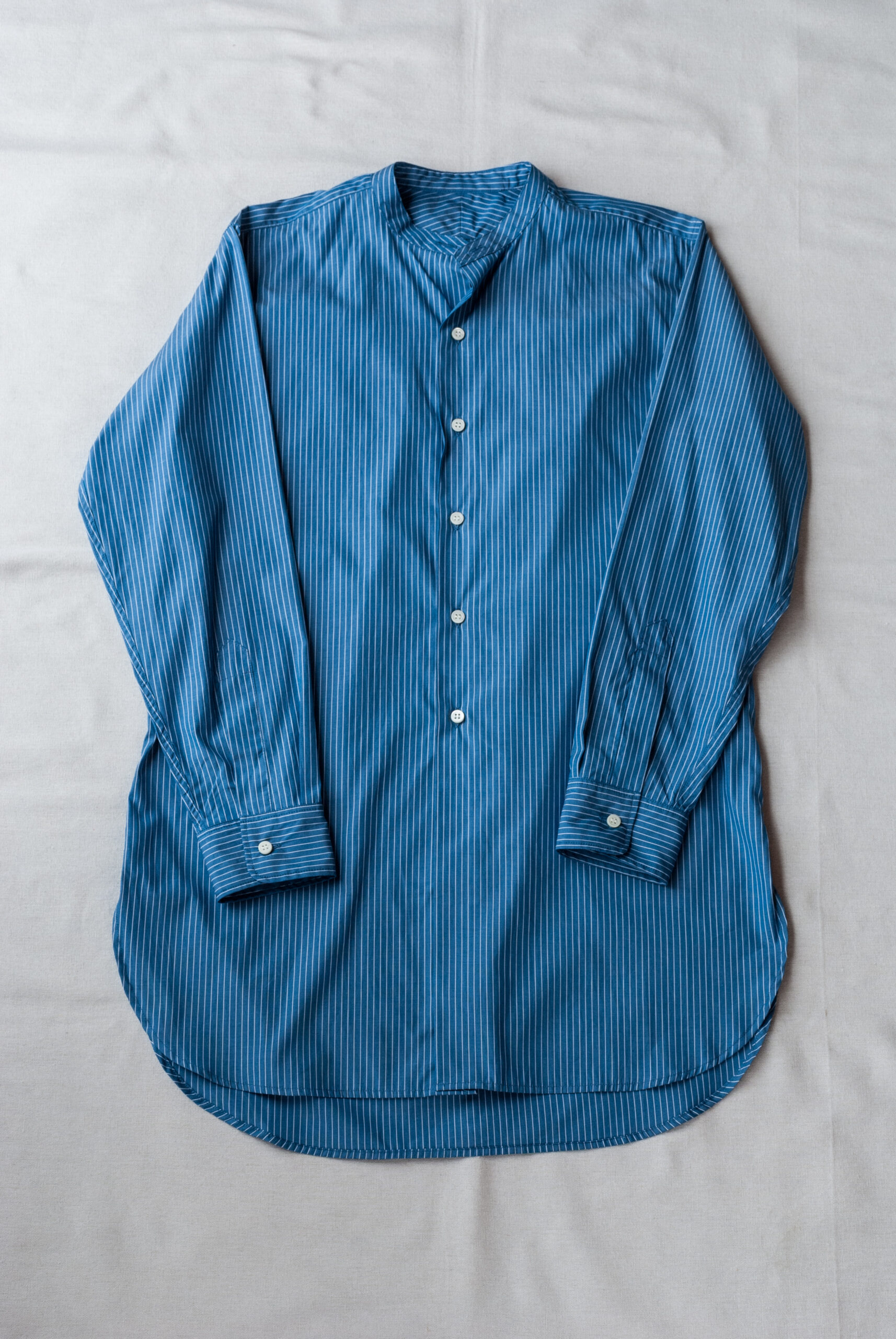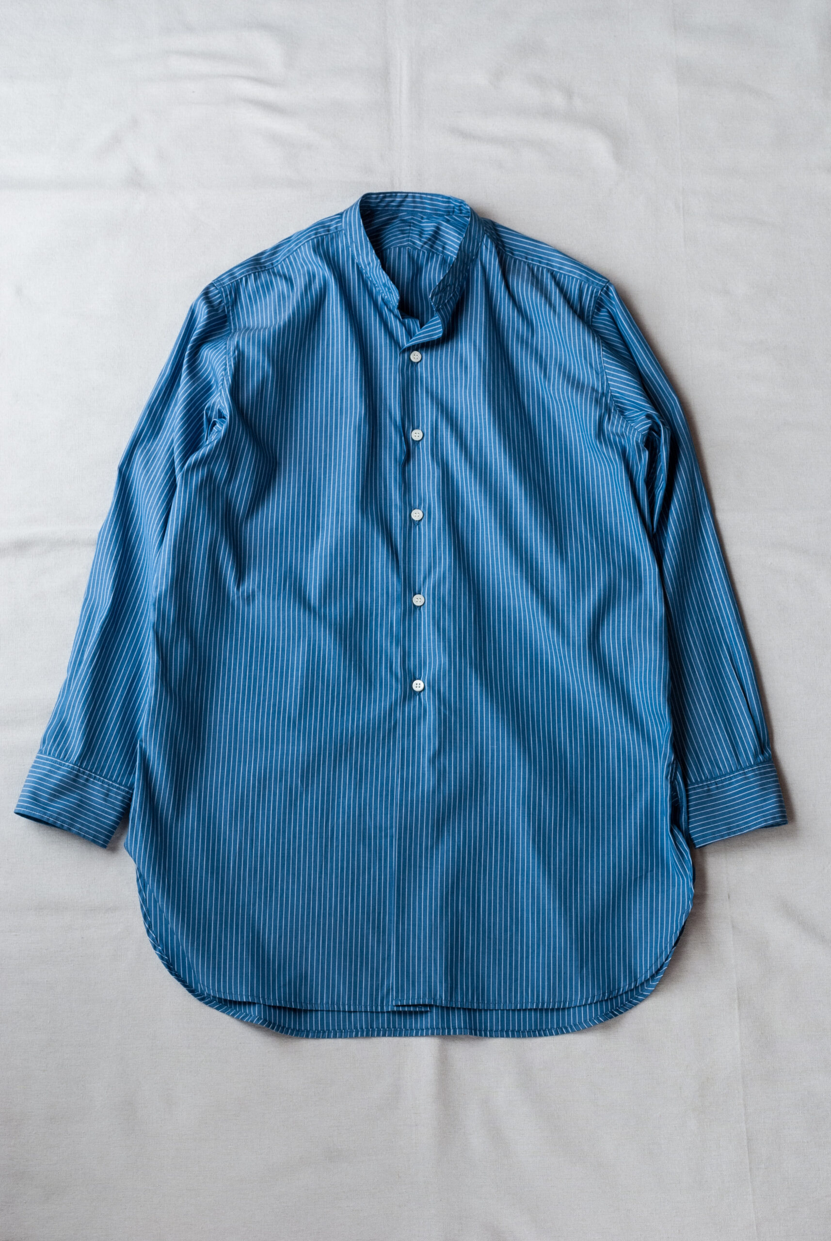 フランクのオールドスタイルのシャツや、マスターアンドコーのシャツは、アウターやジャケット、カバーオールからちらっと見えるシャツの裾の感じを楽しんでもらいたくて、しつこく提案し続けていますが、ふわっと長めの形的にも、やはり女性の購入が多く、まぁそれでもいいんですが、もっと男性に着て欲しいとずっと思っています。