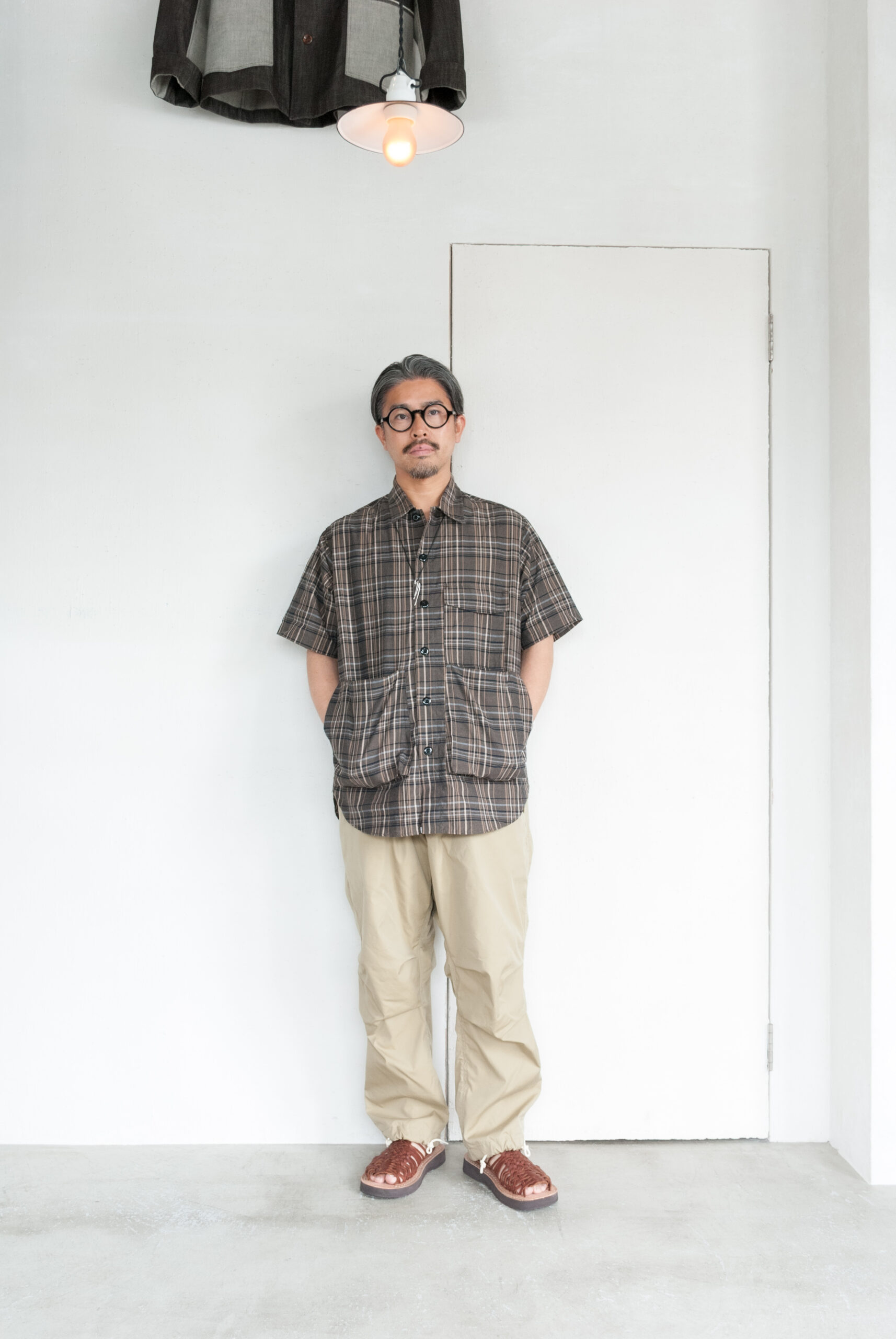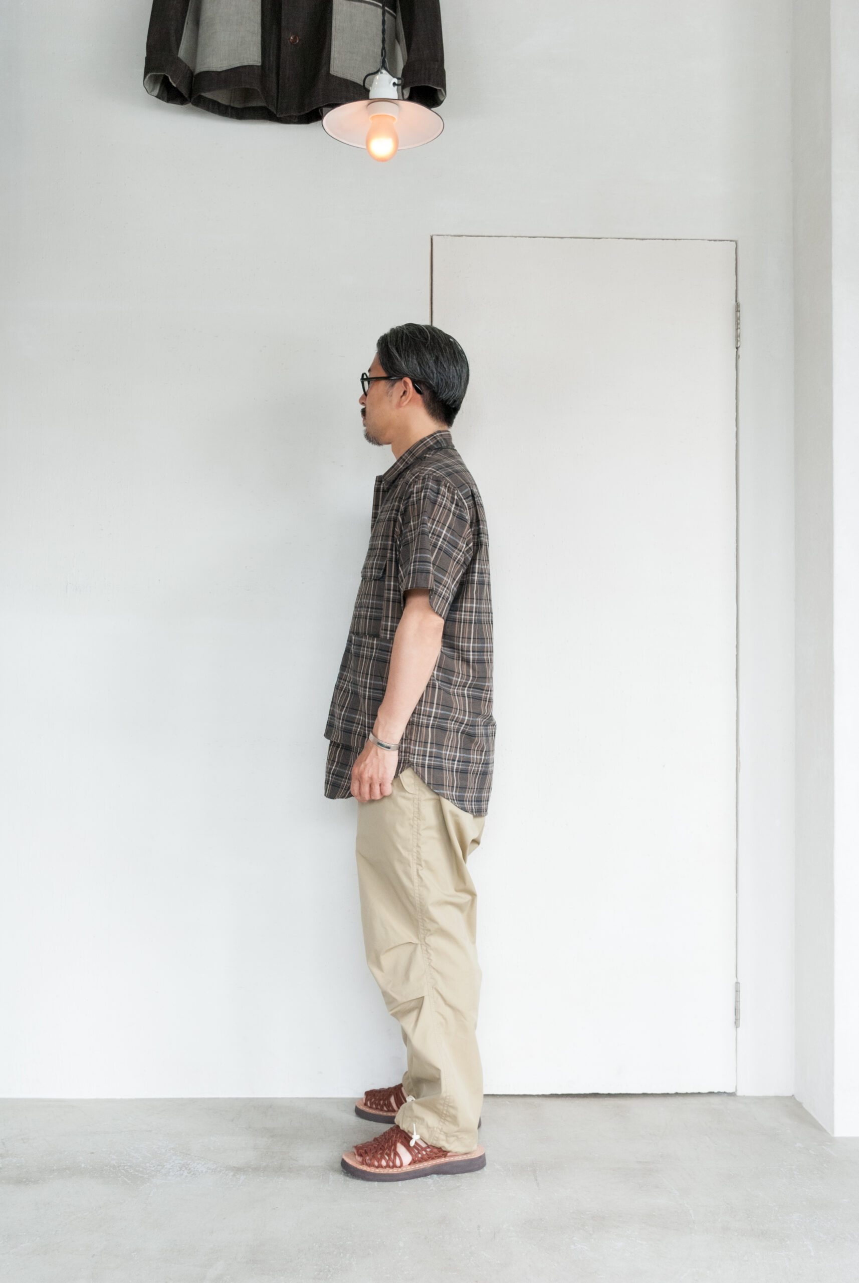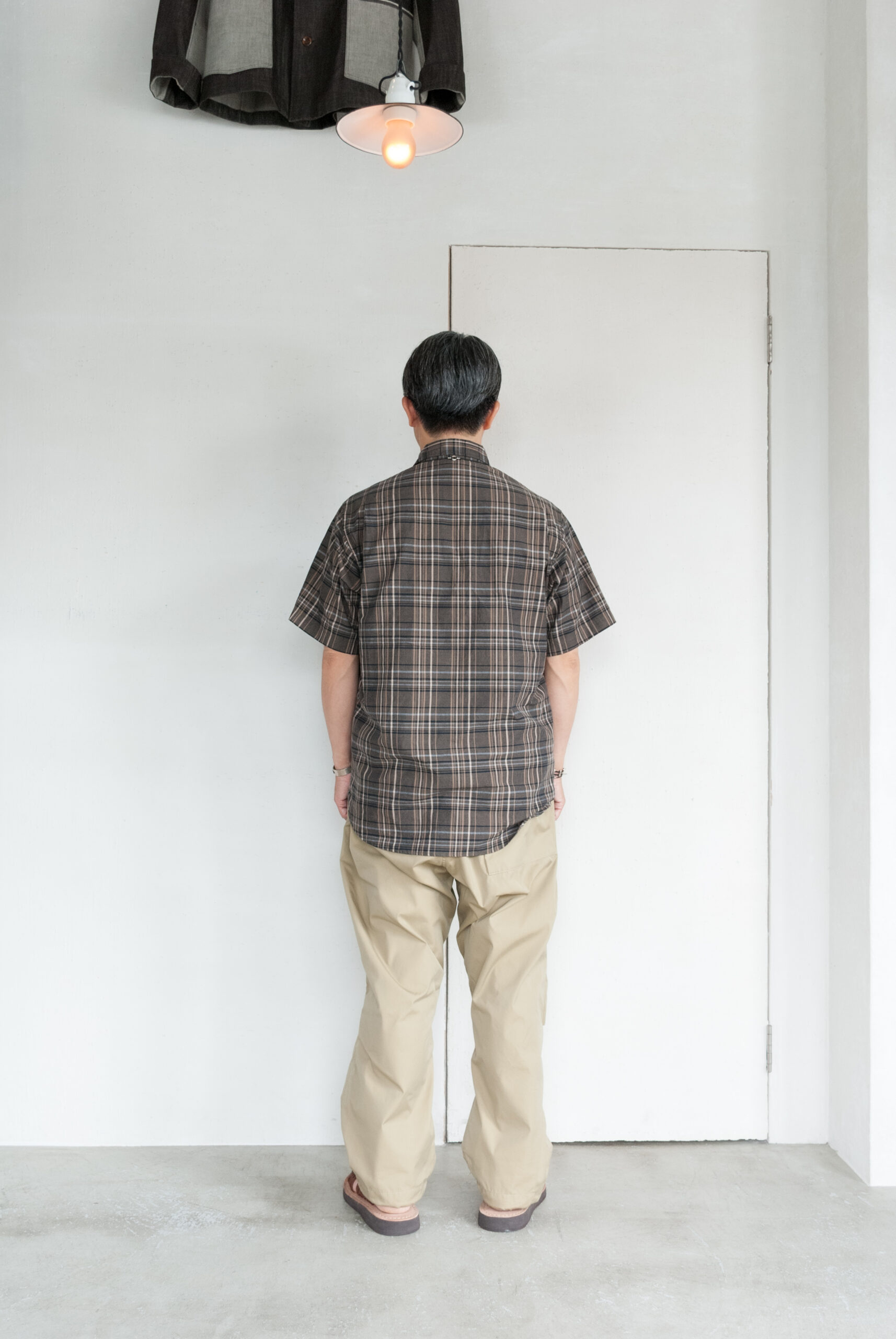 といってもこのモデルだから選んだわけではなく、最近気になる茶系のマドラスチェックの柄がとても良くて、落ち着いた大人の普段着として選びました。