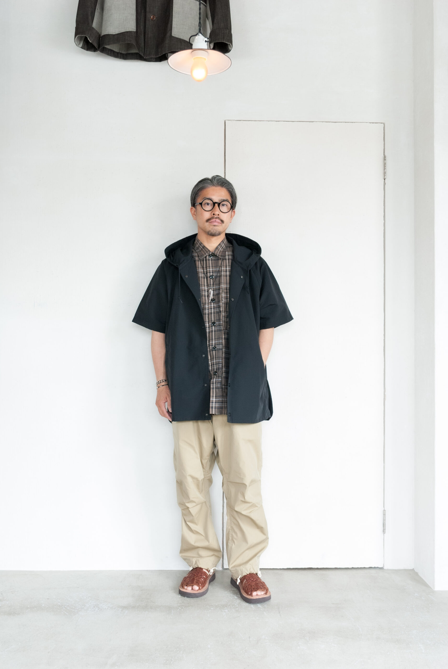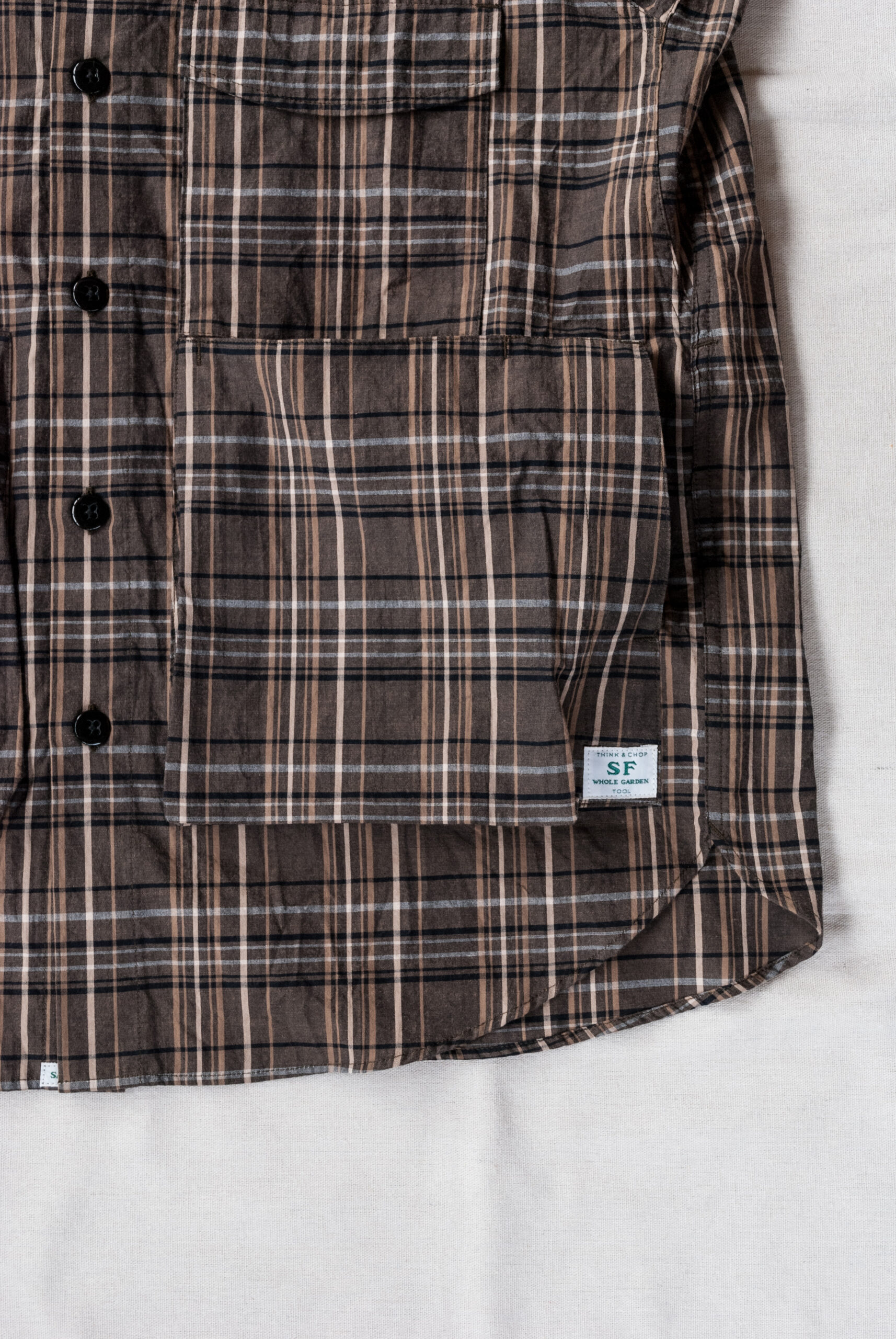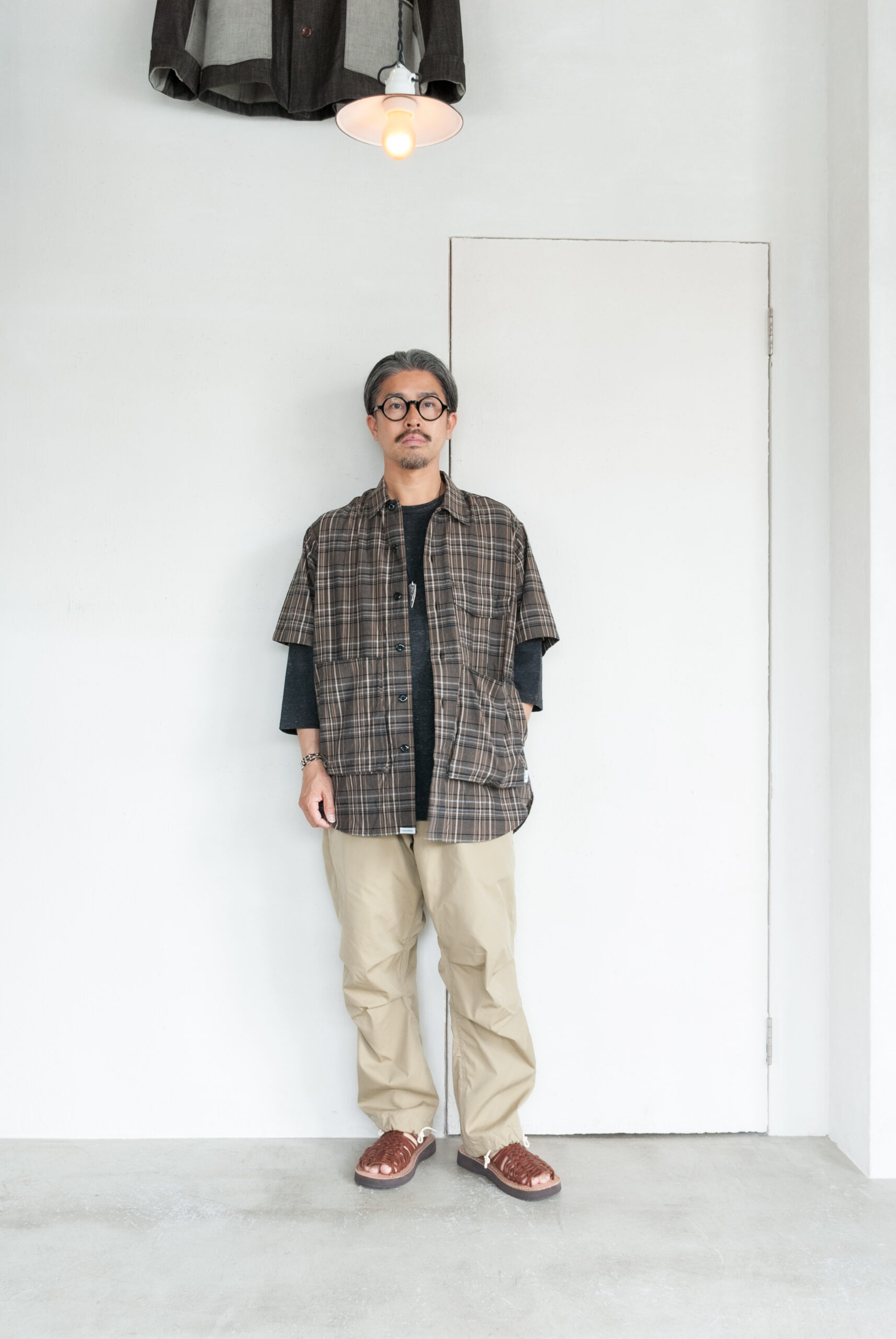 といってもこのモデルだから選んだわけではなく、最近気になる茶系のマドラスチェックの柄がとても良くて、落ち着いた大人の普段着として選びました。