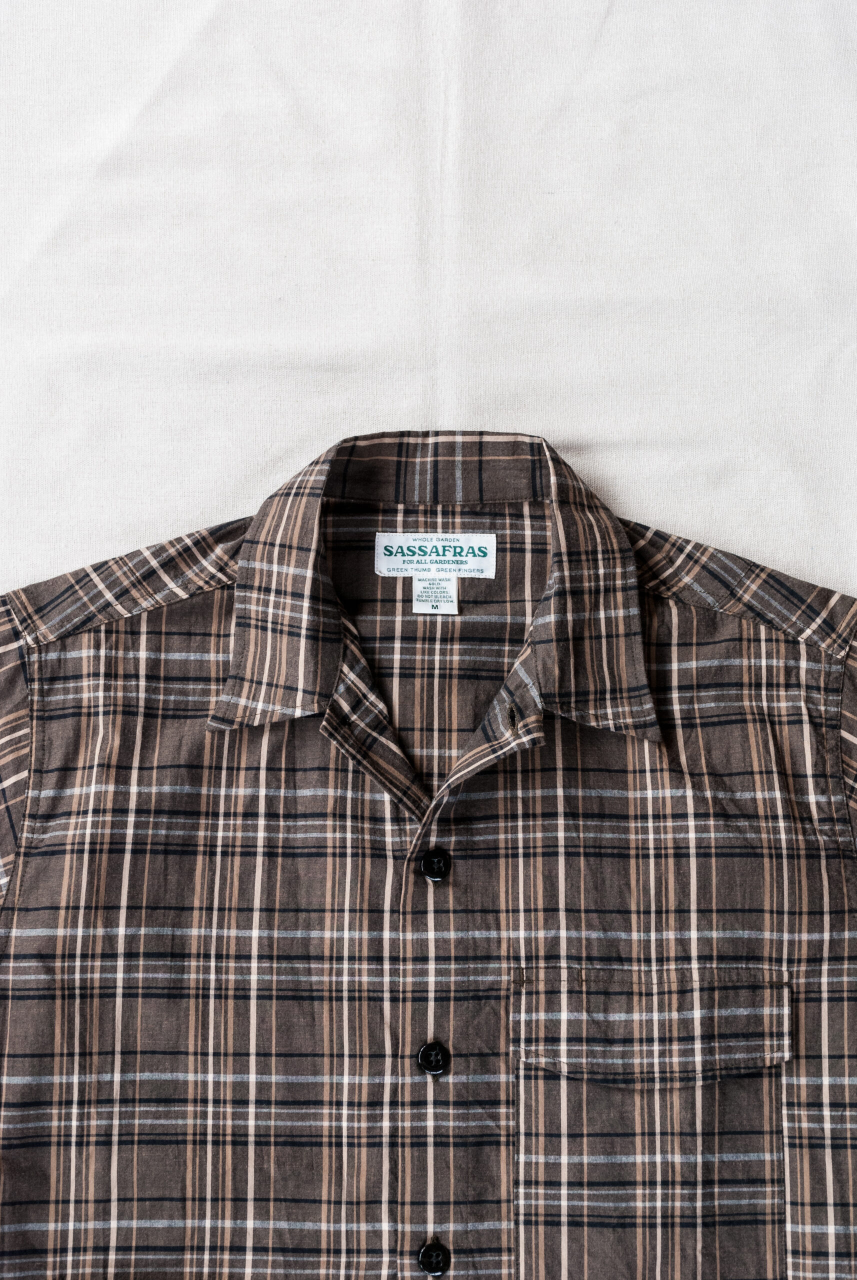 コットン100%の風合いの良い生地は、少しざらついた肌離れの良い質感で、真夏の日差しが強すぎて避難した木陰のような、穏やかで涼しげな印象。