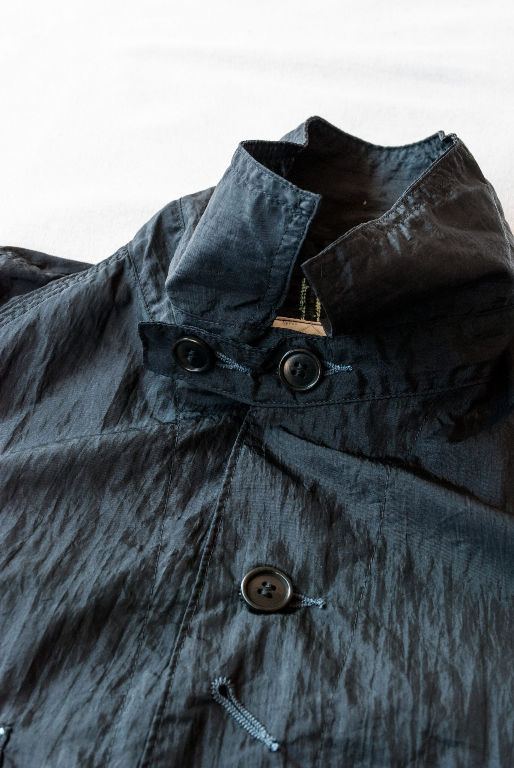 このシワ加工を施したクリンクルナイロンタフタは、重ね着が好きな人が着るとやみつきになってしまう素材で、ポストでは2000年代後半から採用されている生地です。