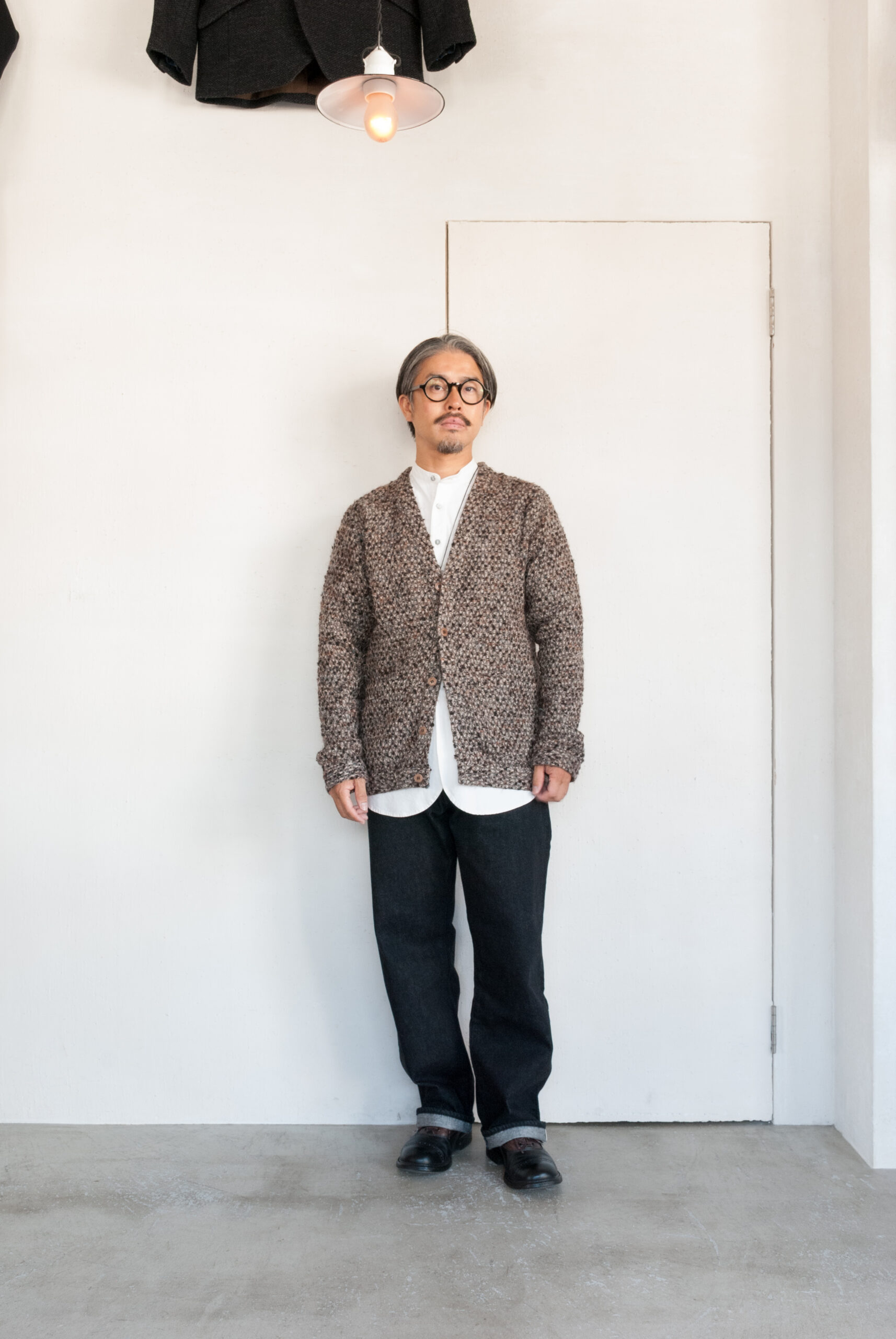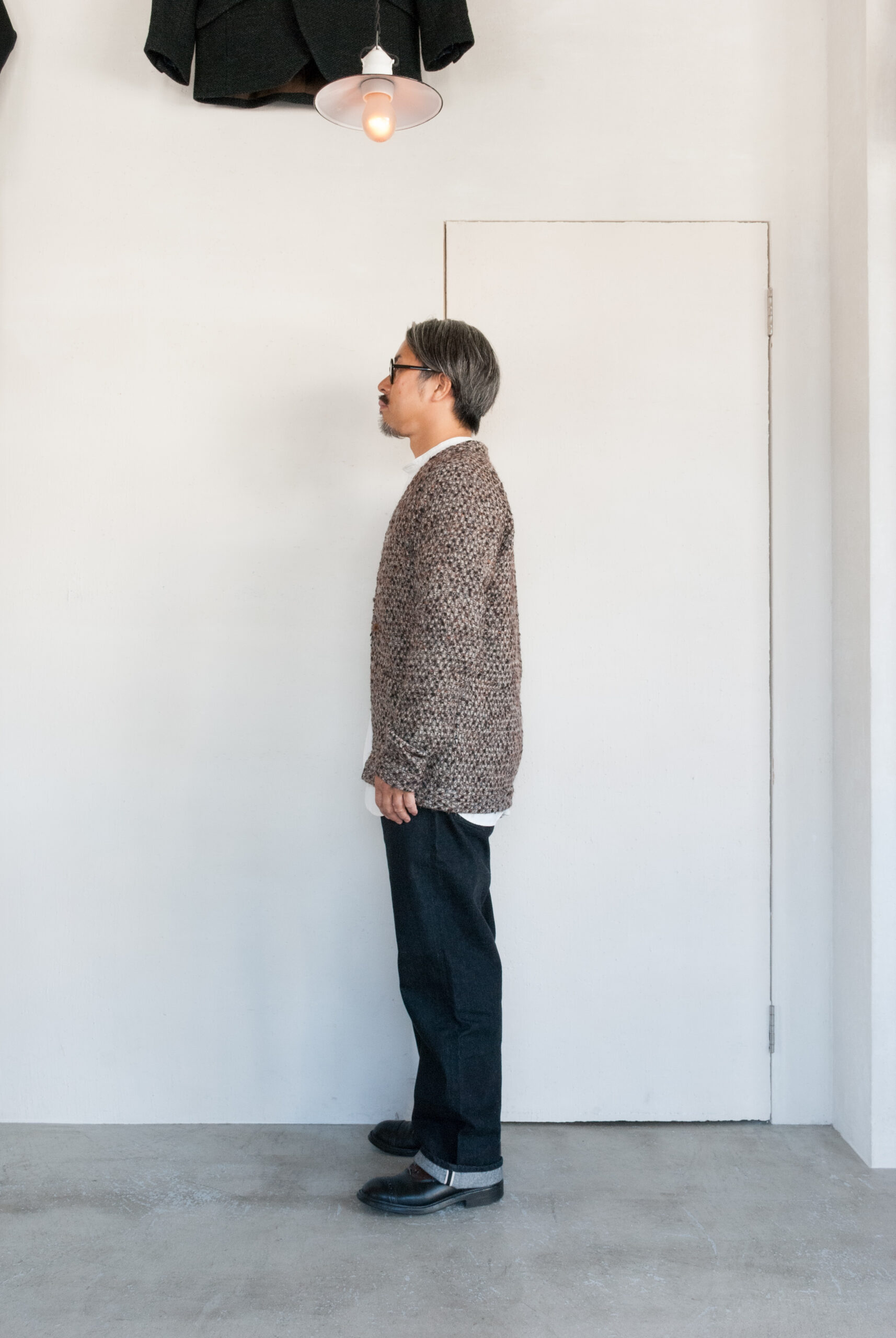 やや細身の腕周りとすっきりとした身幅、袖丈と着丈は少し長めなので、ニットのカーディガンとは全然違うシルエットになります。