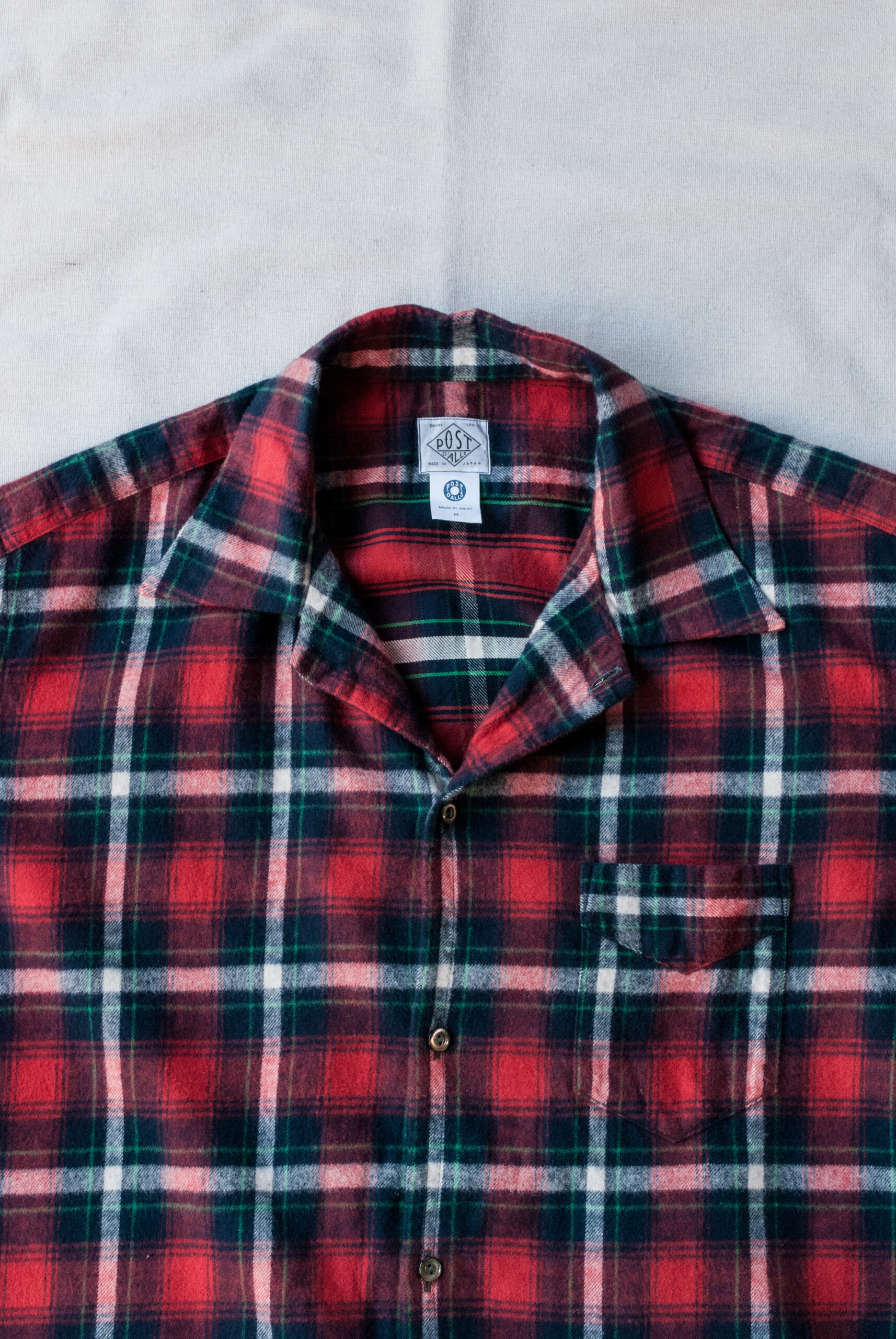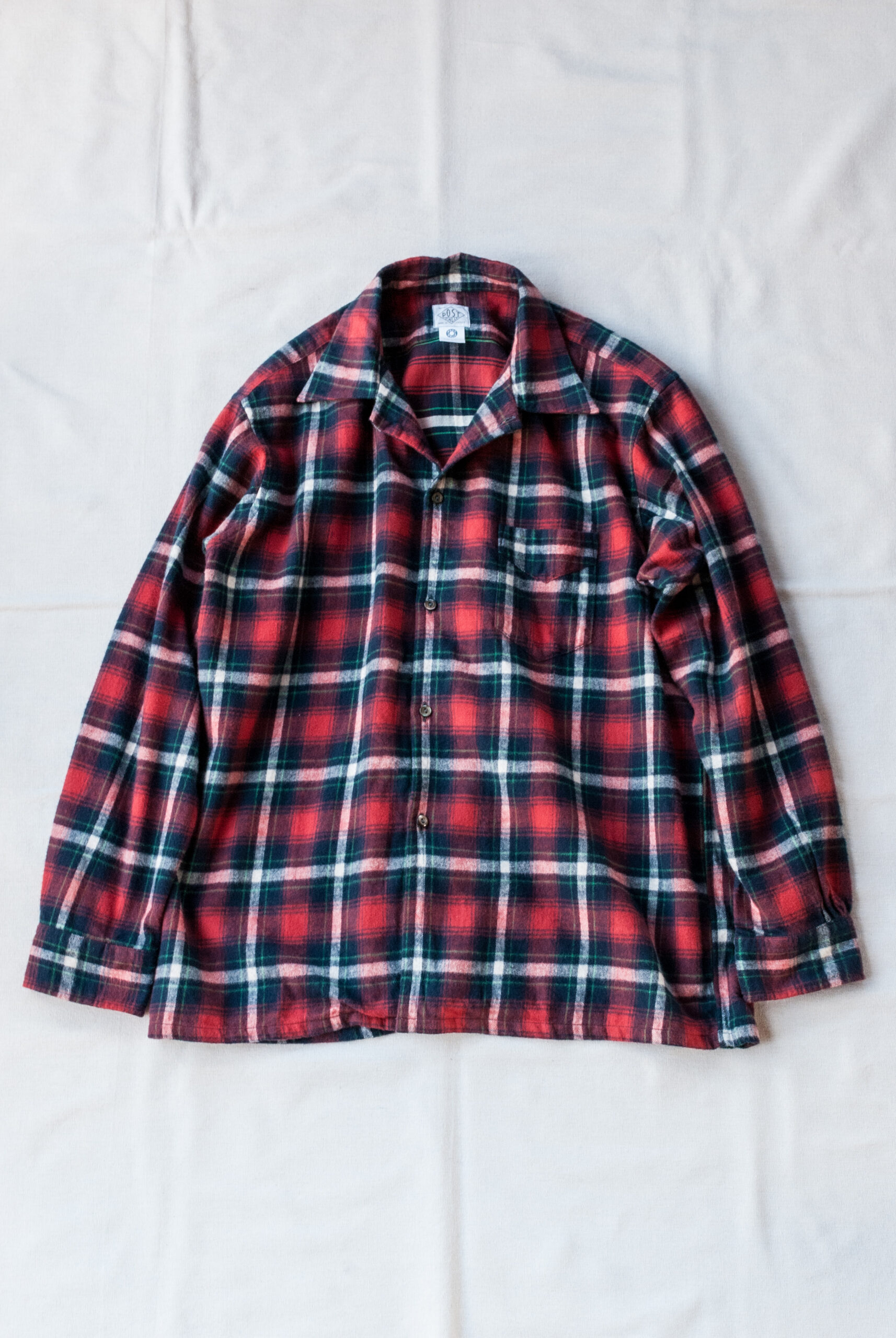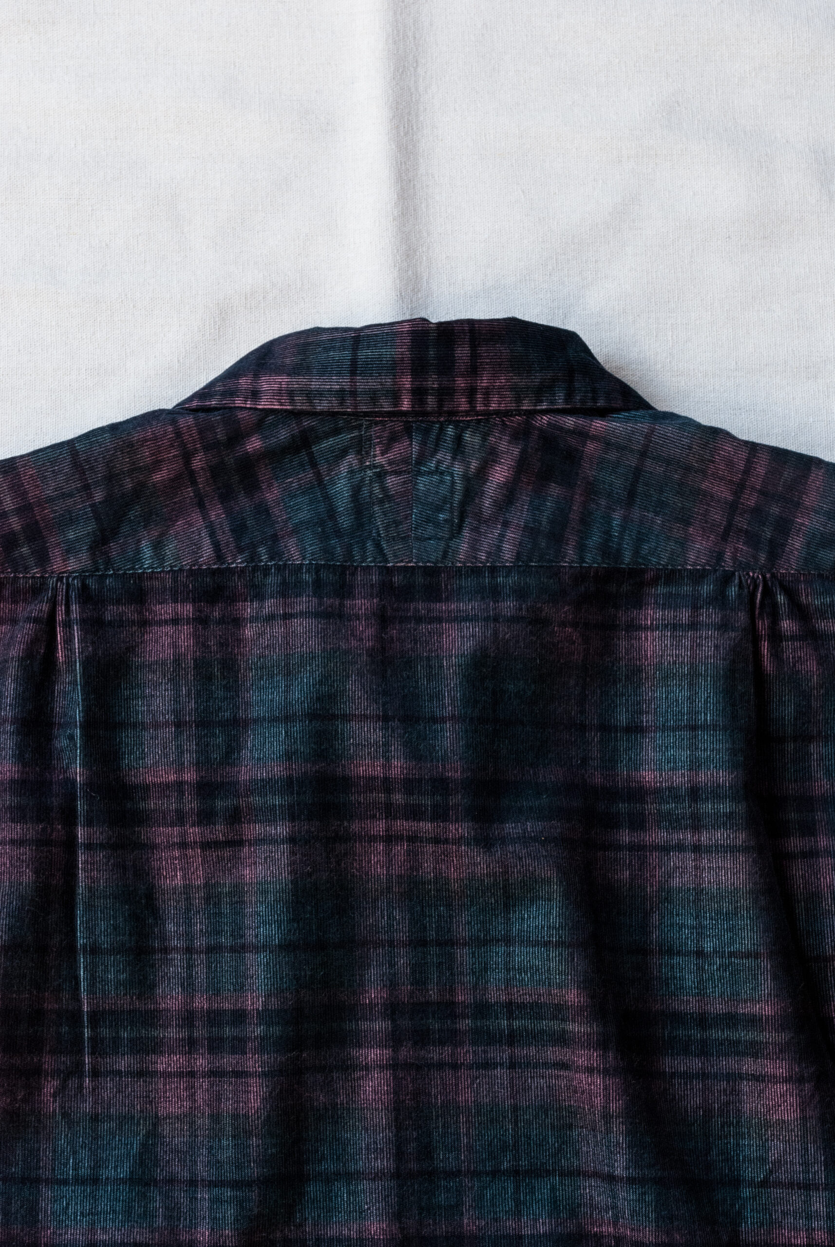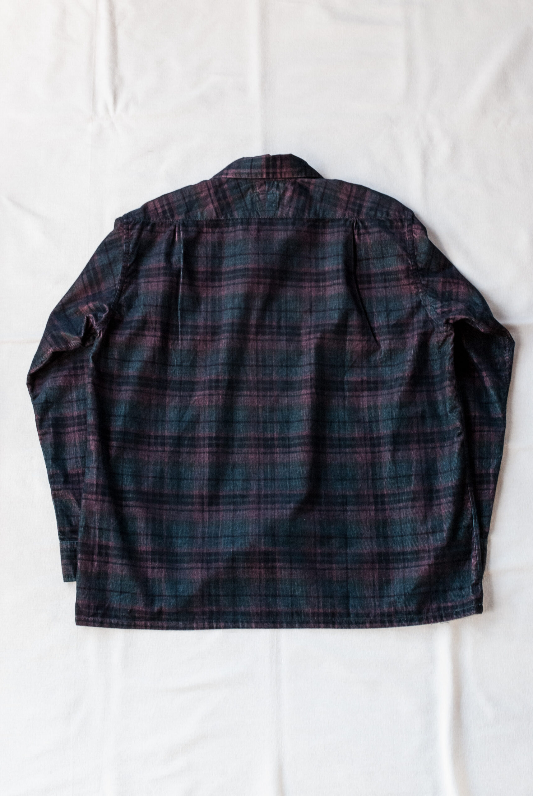 Post O’Alls の他のシャツよりも少し小さめなボタンを使用したり、縫製の運針の細かさや背中のスプリットバックヨーク、味わい深いサイドギャザー、脇下は本縫いですっきりした印象、、、、等。お話しすることはとても多いんですが、見た目は至ってシンプル。