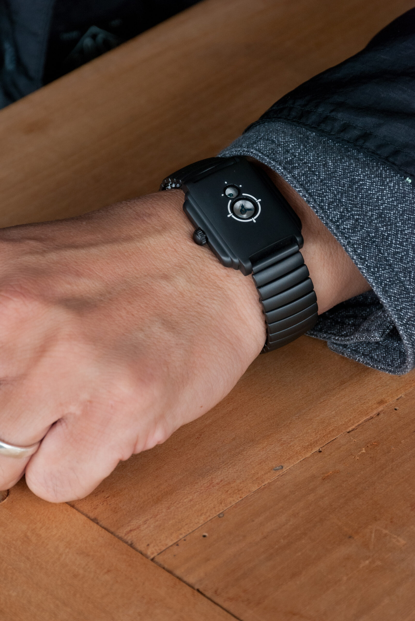 明らかに小さい文字盤や秒針は、視認性よりも視覚的な美しさを追求したデザイン。