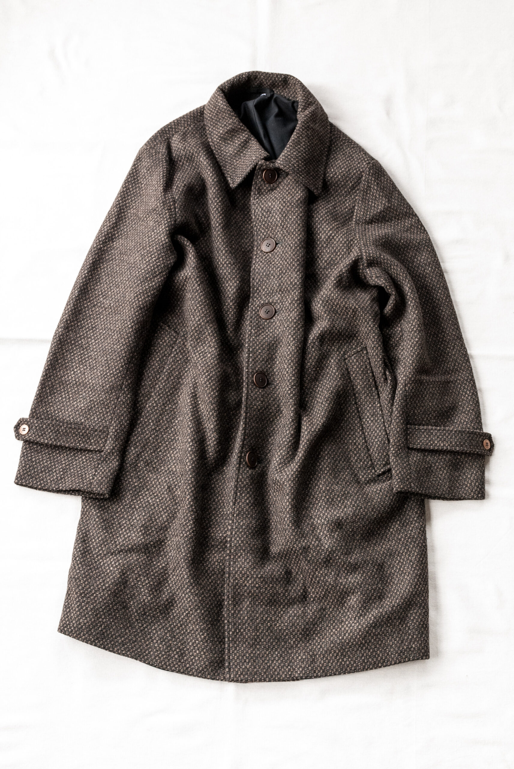一枚物ではなく、コットンやアセテート素材で裏張りされているので、決して軽くはありませんが、その分ウールのコートを着ているという安心感があり、視覚的にもダウンや化繊の高機能素材では得られない天然素材ならではの温かみがあります。