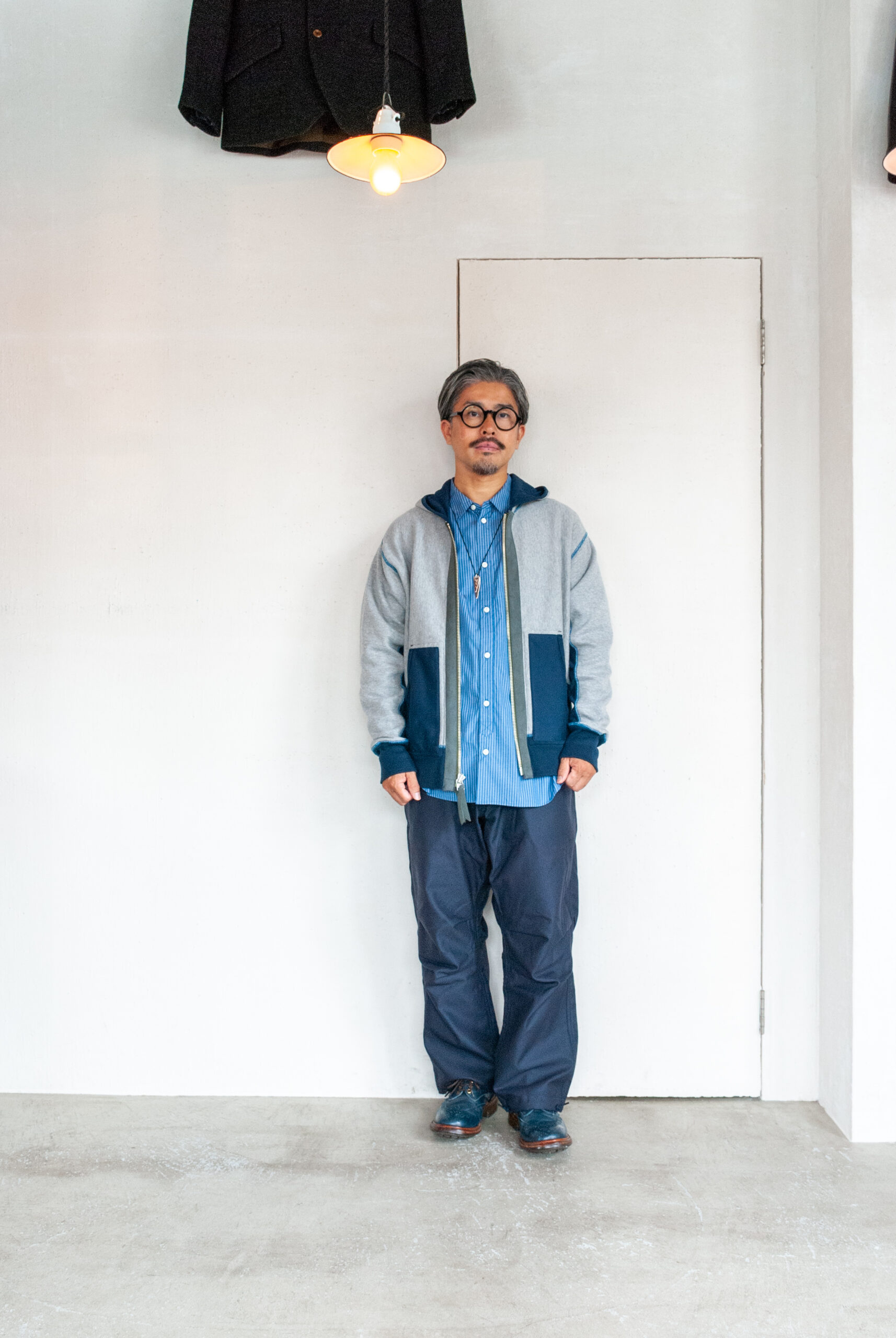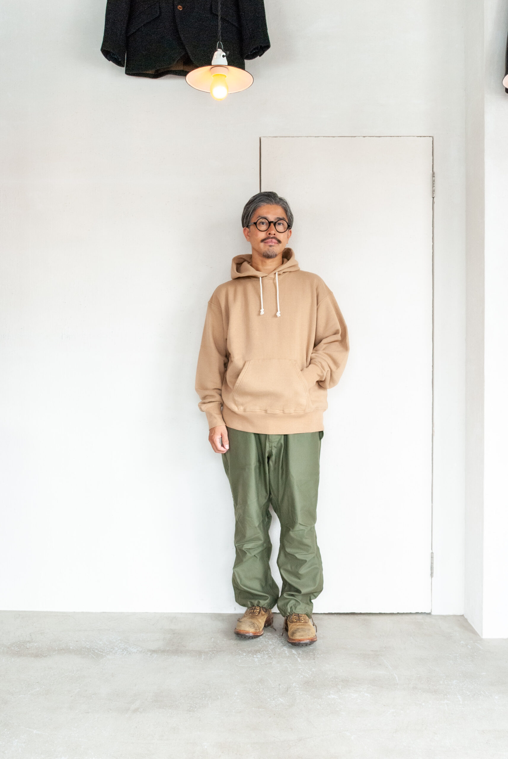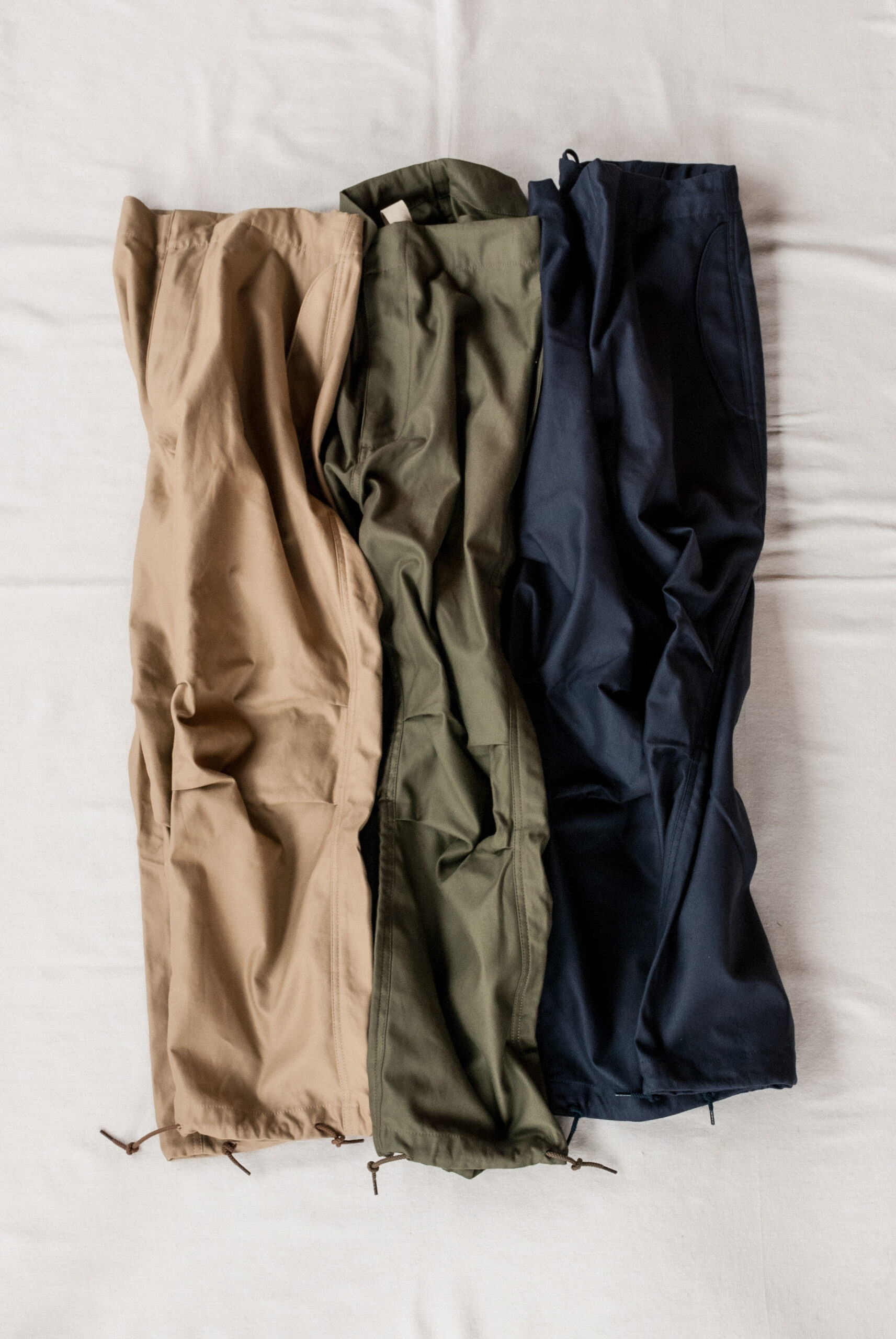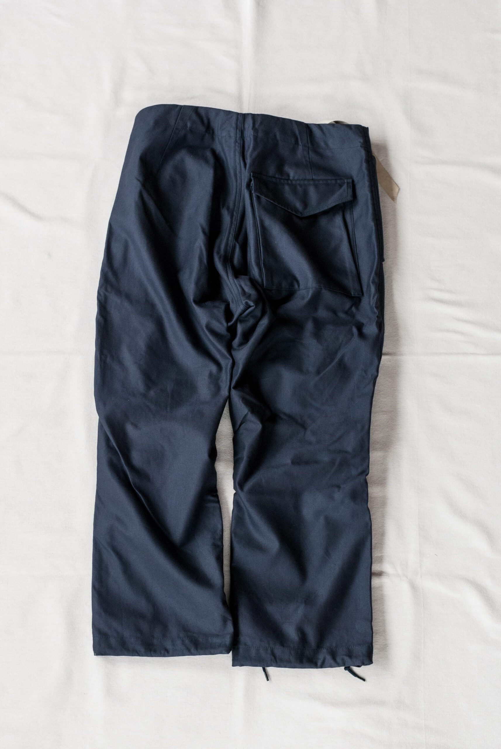 見た目はかなりシンプルですが、膝のダーツや、少し大ぶりなフロントジッパー、ウエストと裾につけられたドローコード、前回よりも広くとられた裾幅など。どれもデザイナーの拘りが詰まったディテールです。