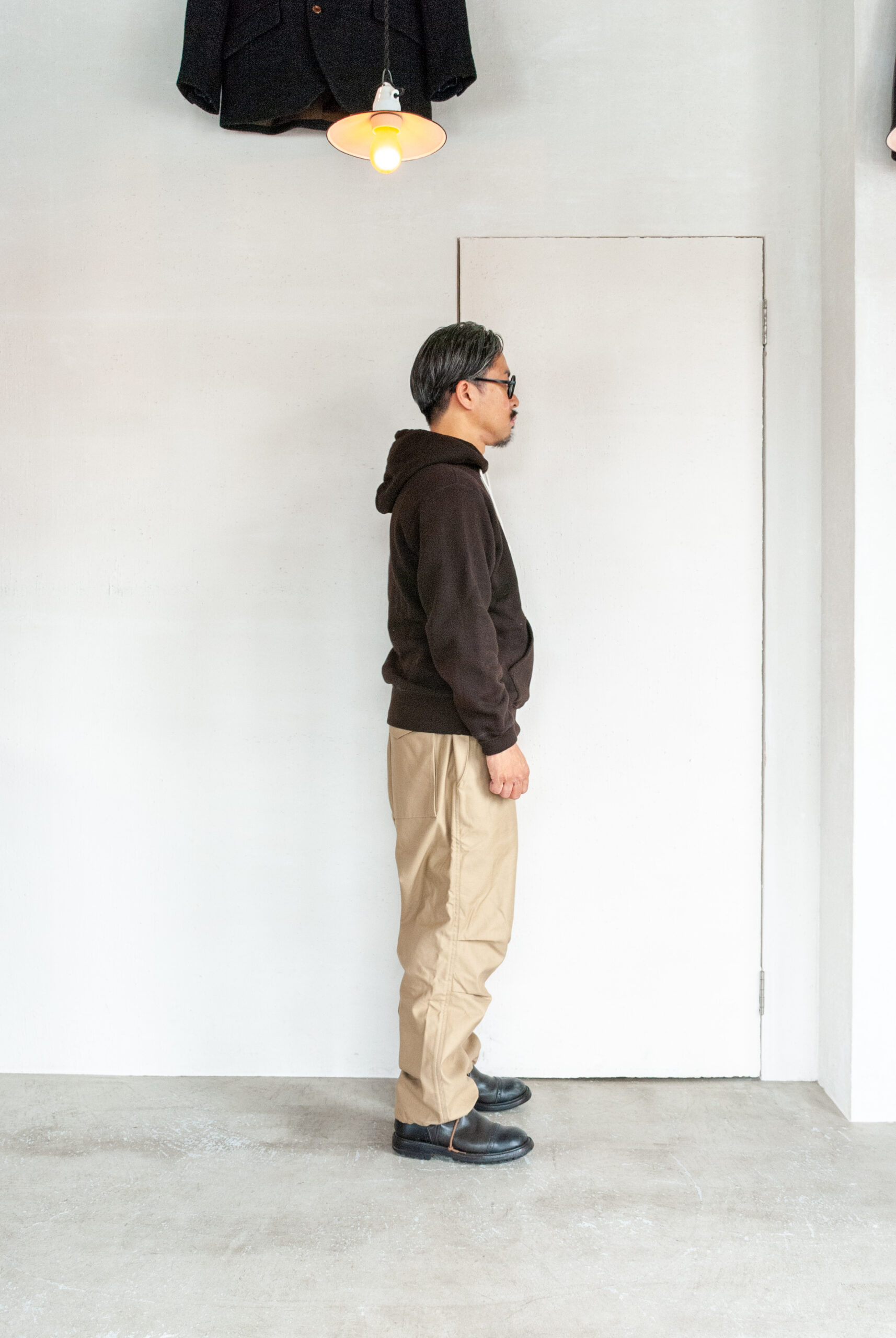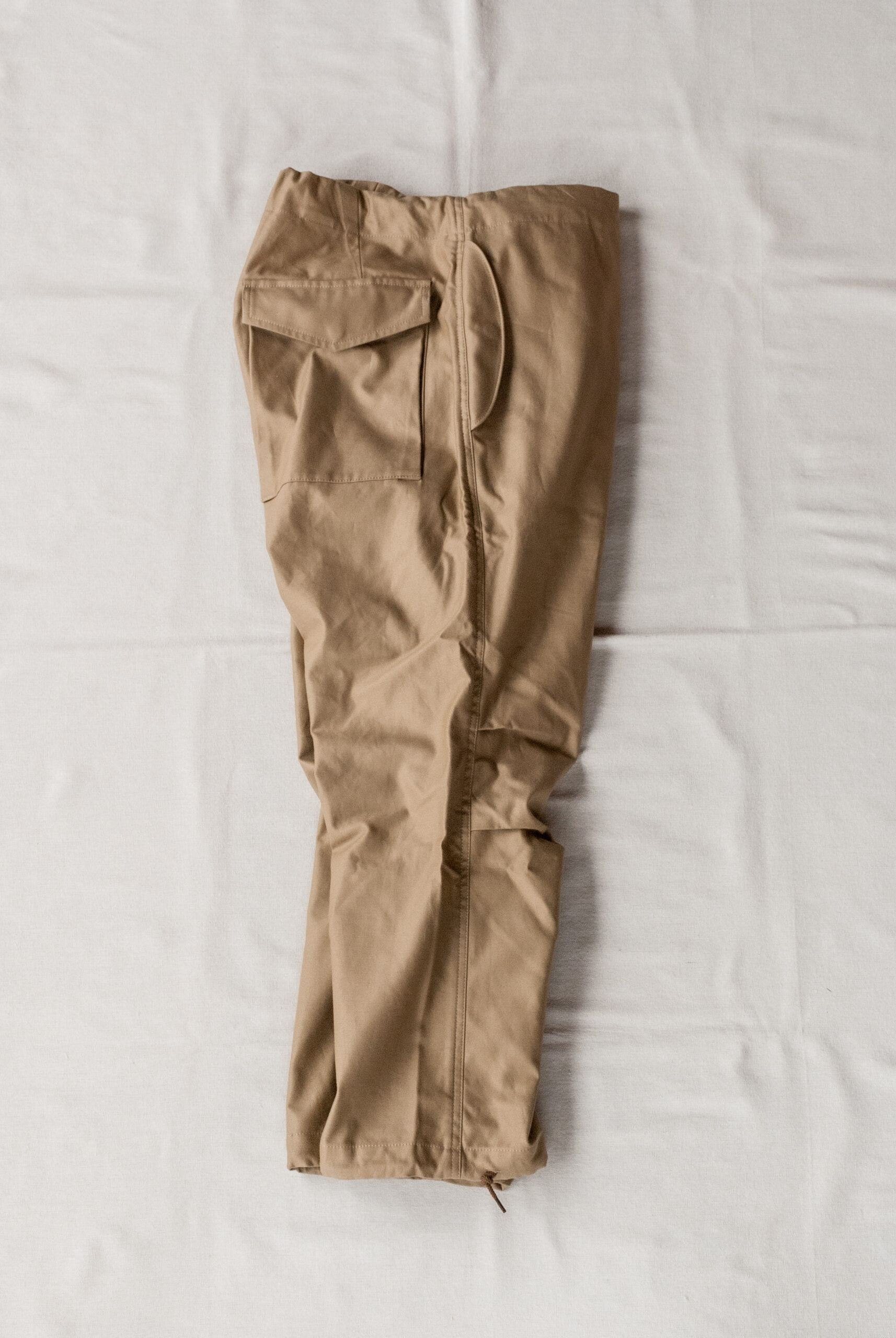 今回ご紹介するHOPPER’S BRUNCHの定番軍パンは、アメリカ軍の名作パンツM-65とオーバーパンツ(防寒や防水の為、ズボンの上から穿くズボン)をフュージョンさせ、レングスをアメリカ軍のSHORT丈に設定した、個人的にかなり理想的な軍パンです。