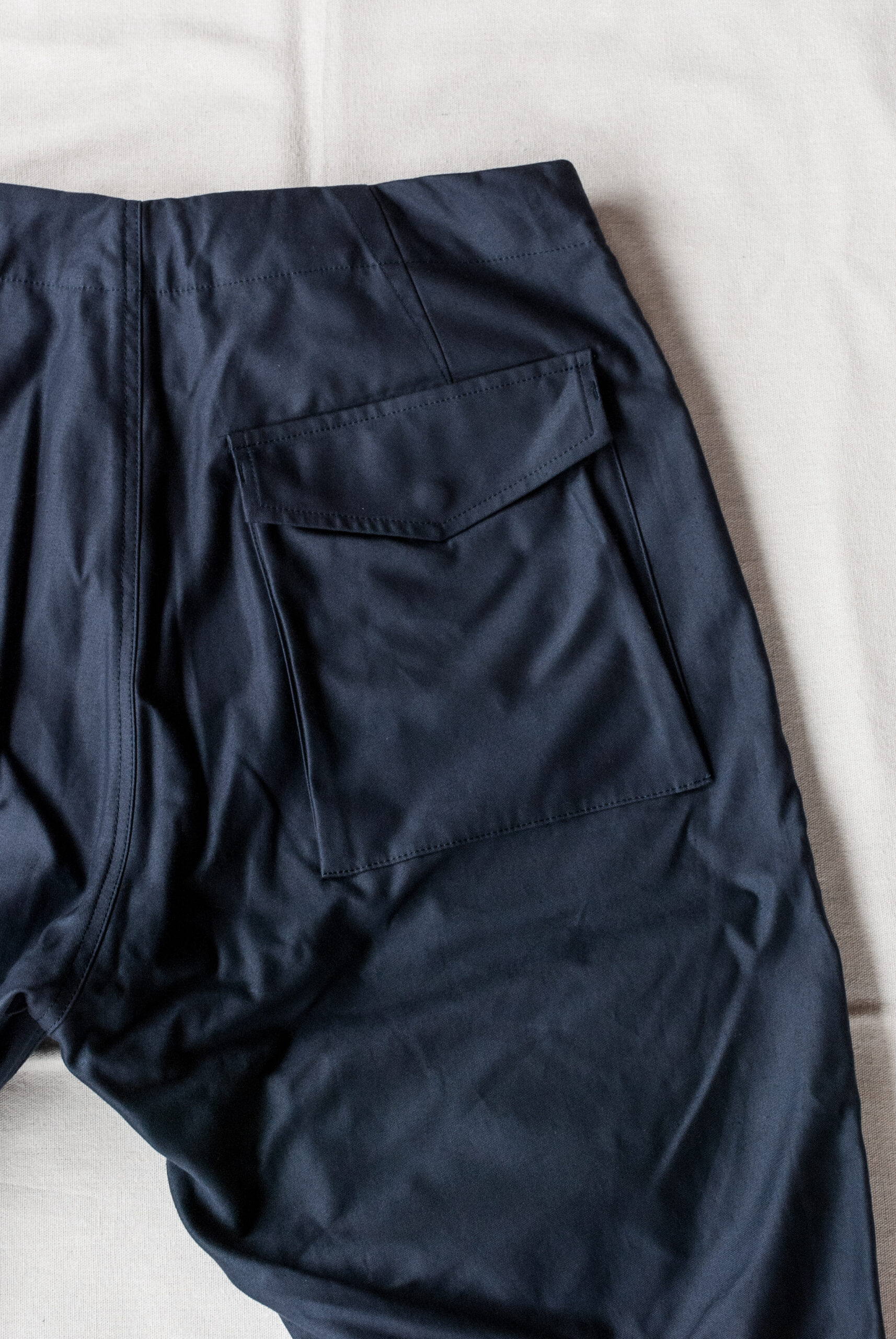 軍パンに付いている両サイドのカーゴポケットを排除し、バックポケットも一つだけ。
