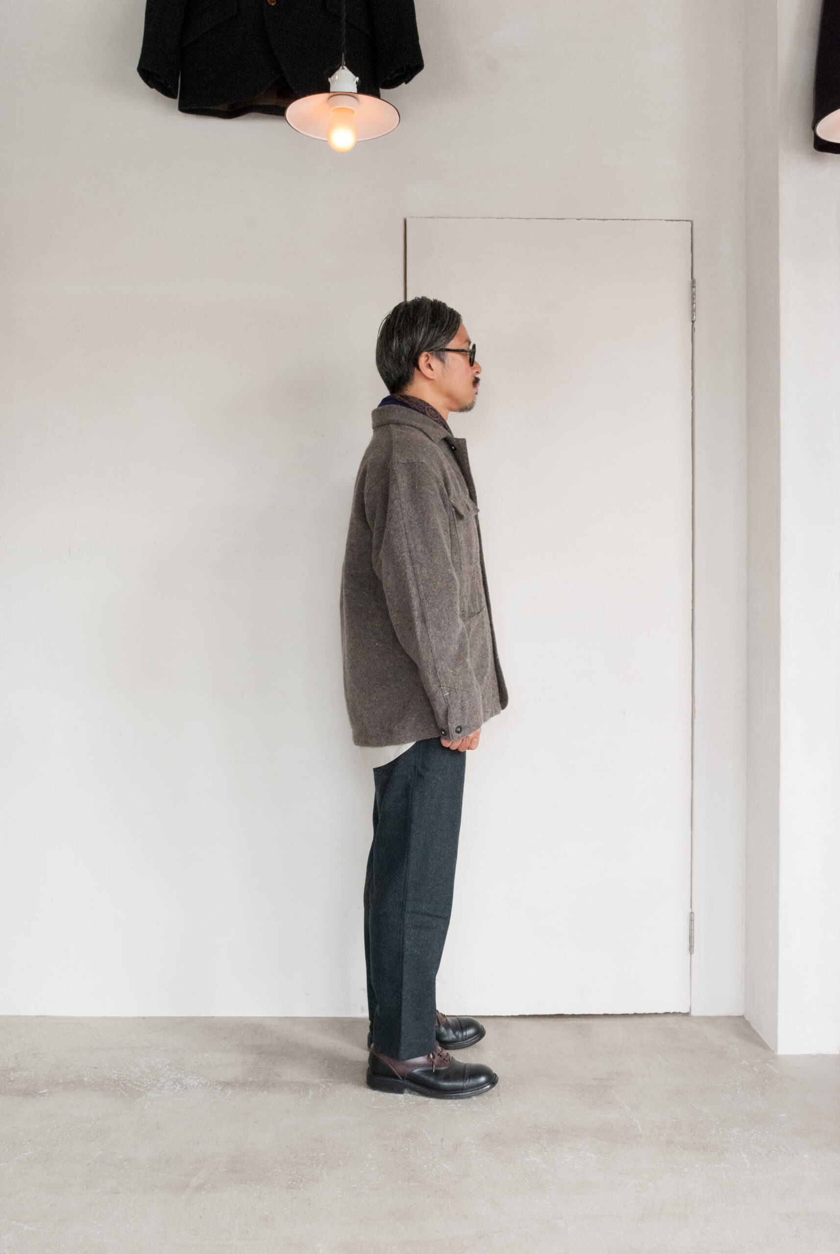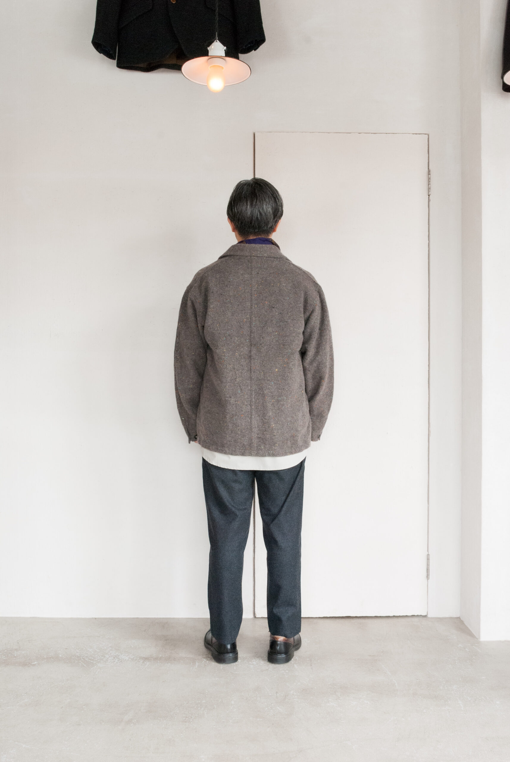 春や夏には着れない、実に秋冬らしいトラッシュドウールを使ったカバーオールは、ダウンには出せない見た目のあたたかさがあります。