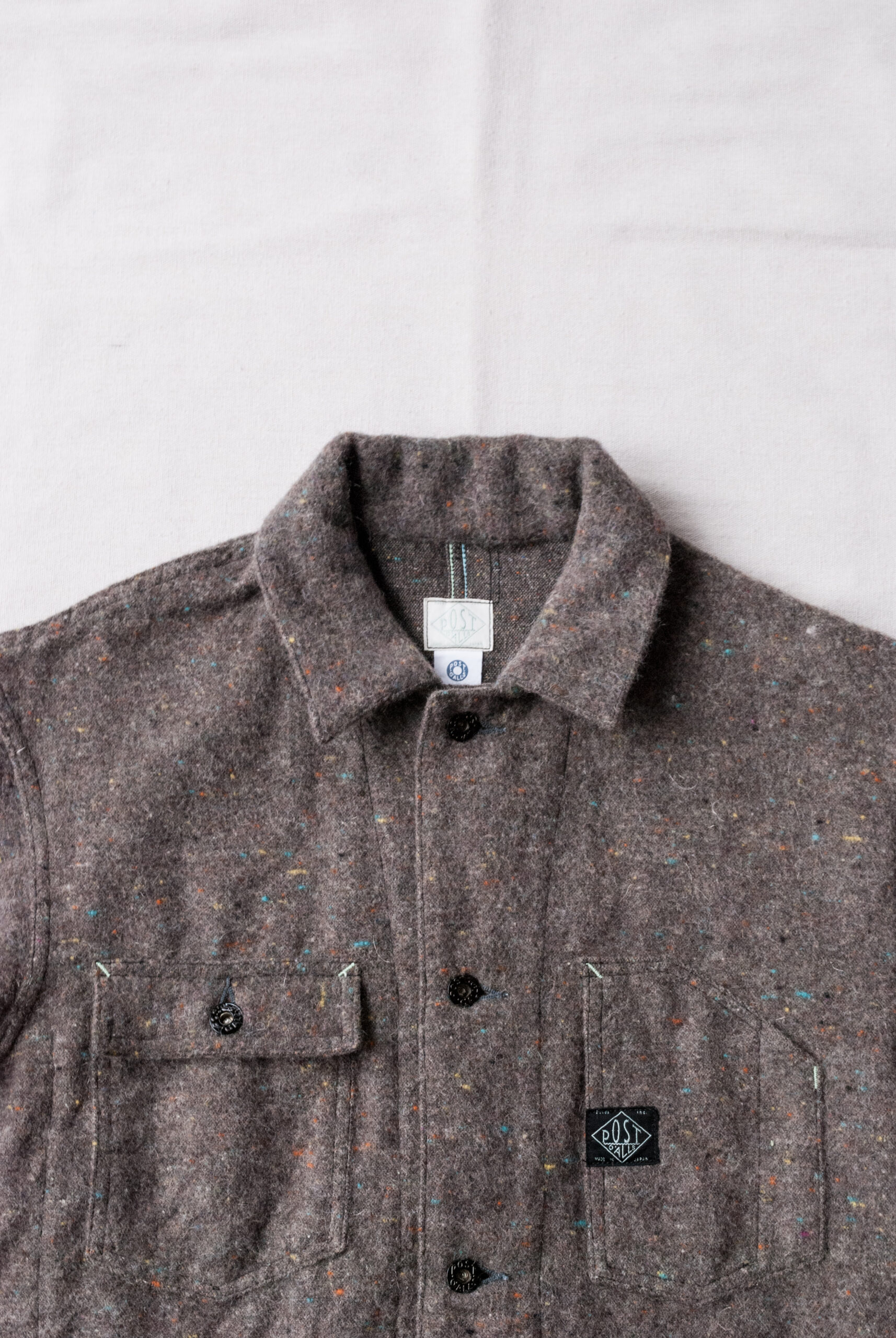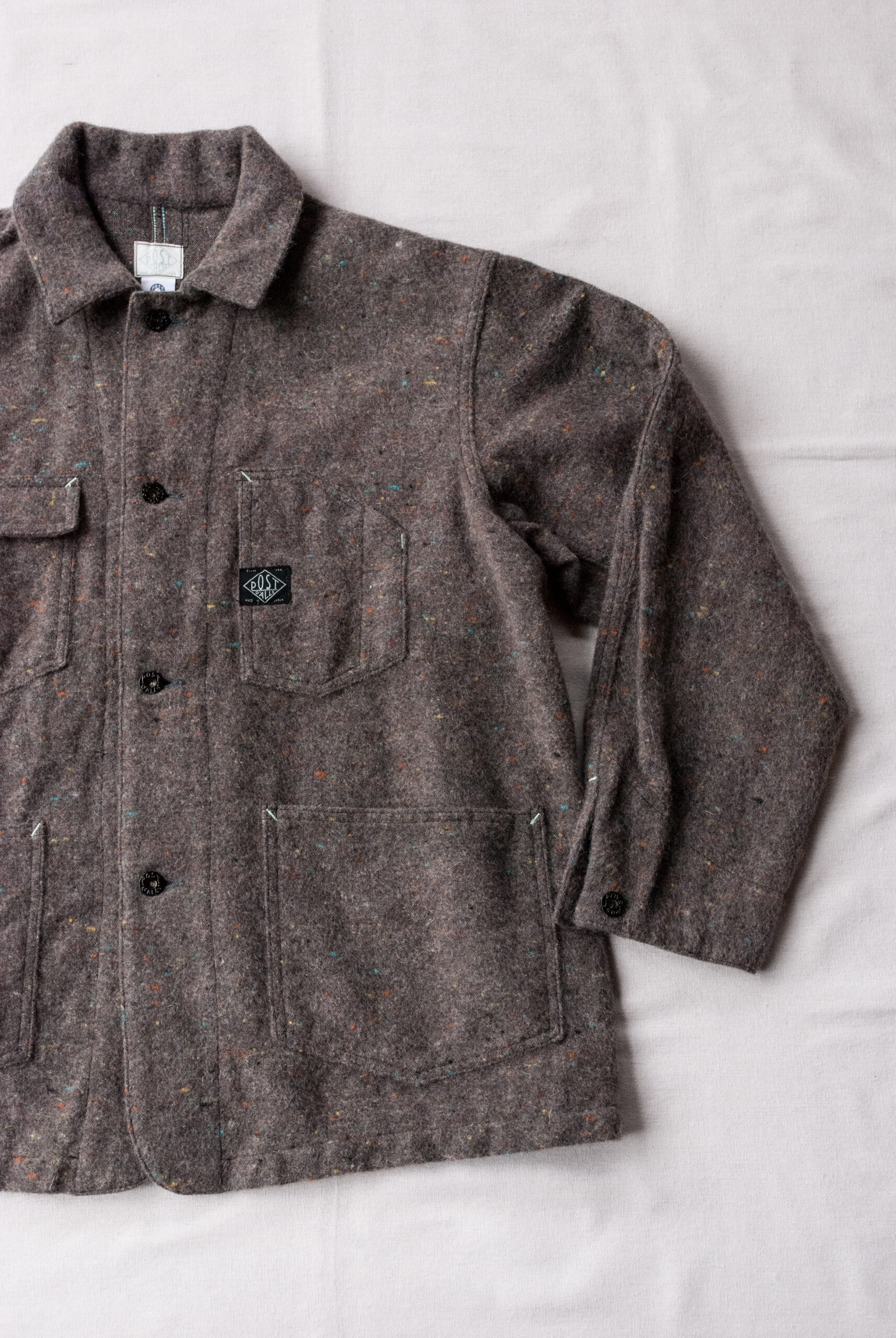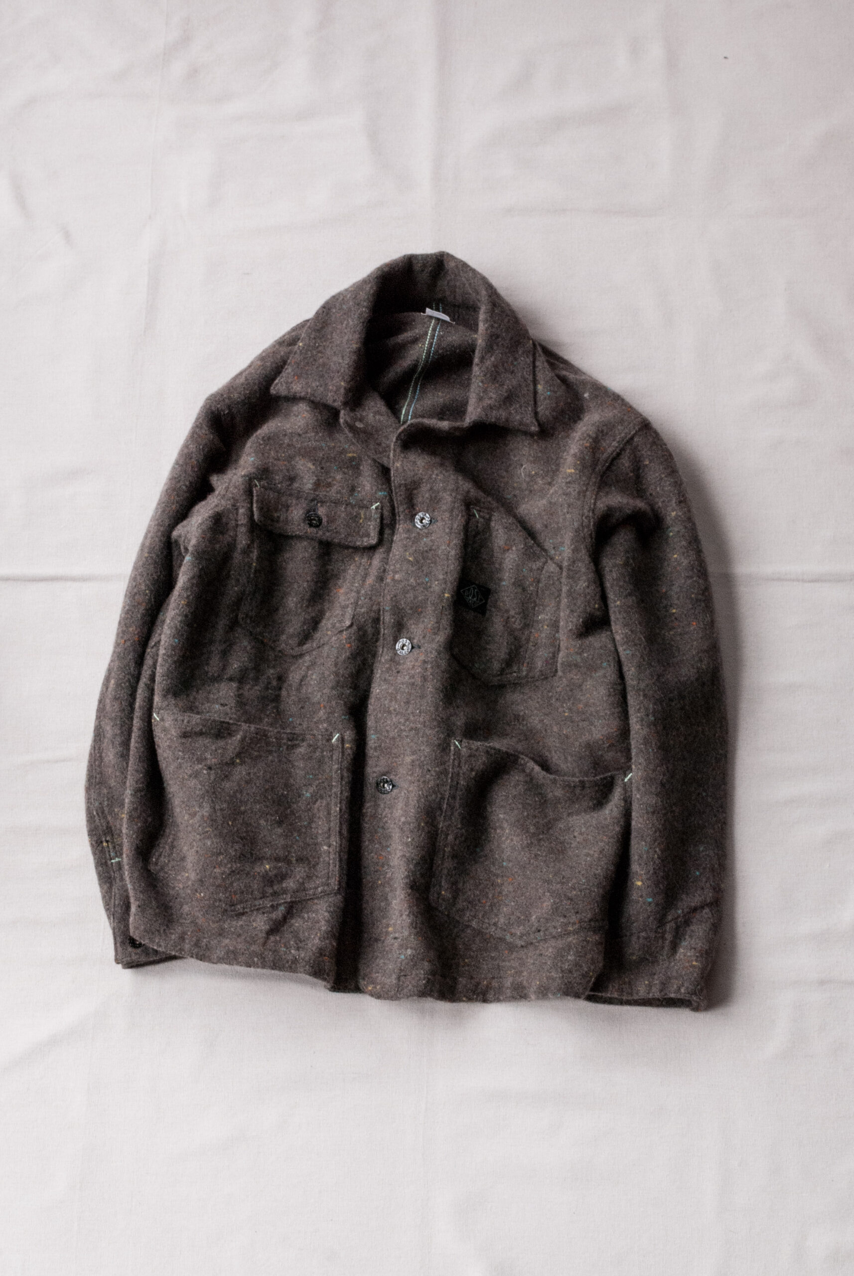 当時はその時の糸の集まり具合で色のムード変わるといったかなり一点もの感の強い生地でしたが、今回は独特のネップ感や当時の色彩を再現しながらも偏りの少ない生地を使用しているので安心してください。