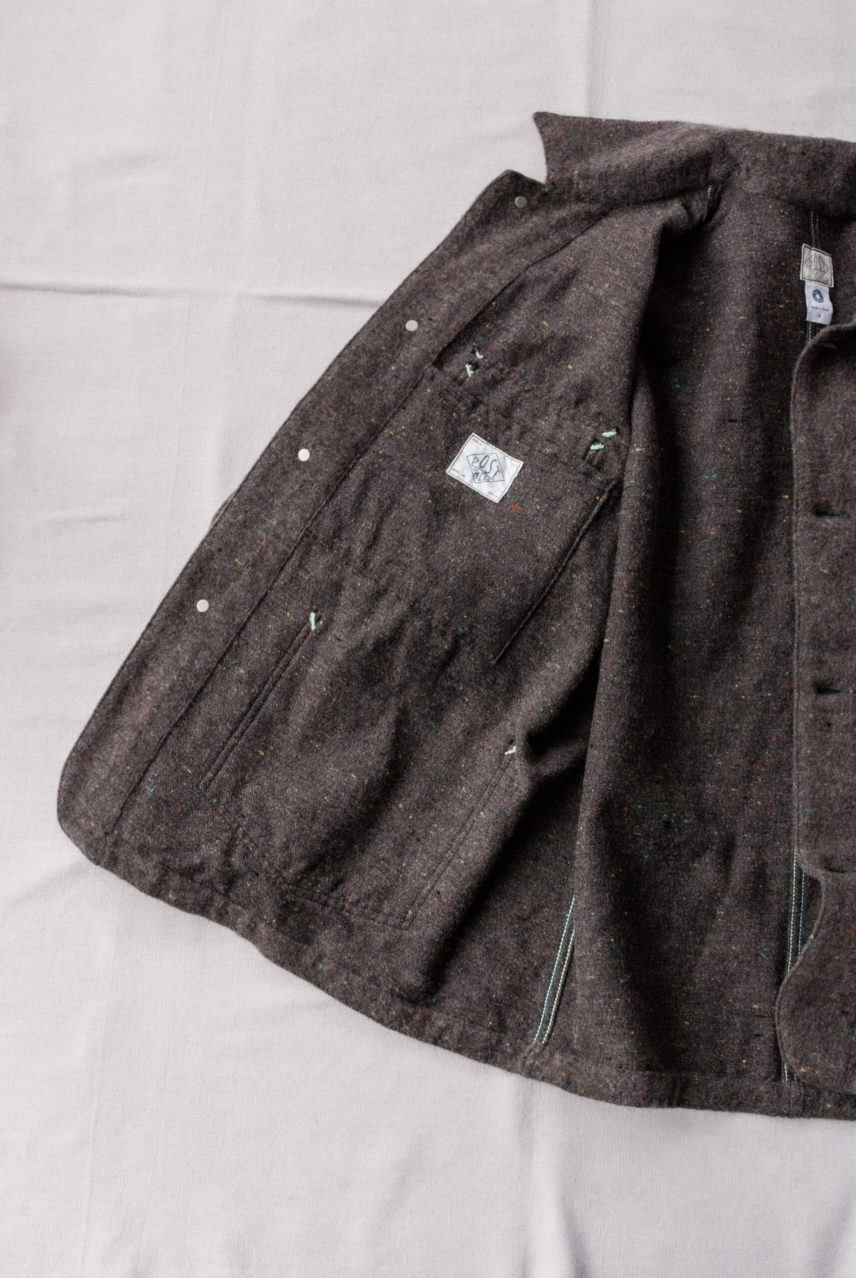 ポストでは何年かに一度この生地(Trashed Wool)が復活するのですが、今回はベーシックなストライプのウールバージョンではなく、もっともミックス感の強い生地をセレクトさせて頂きました。