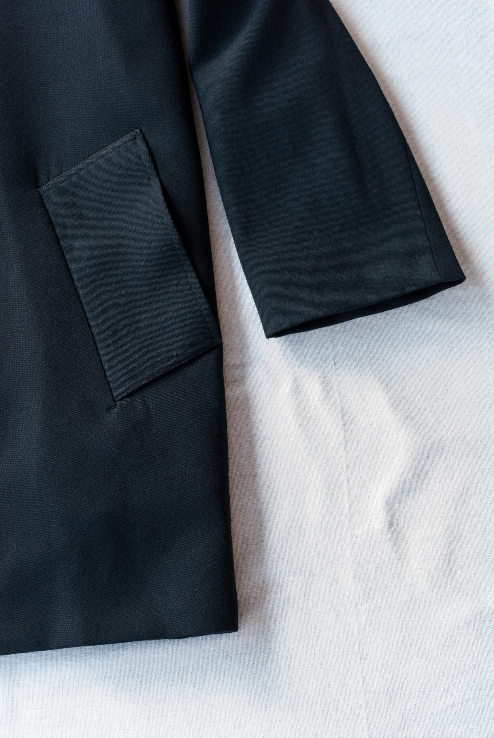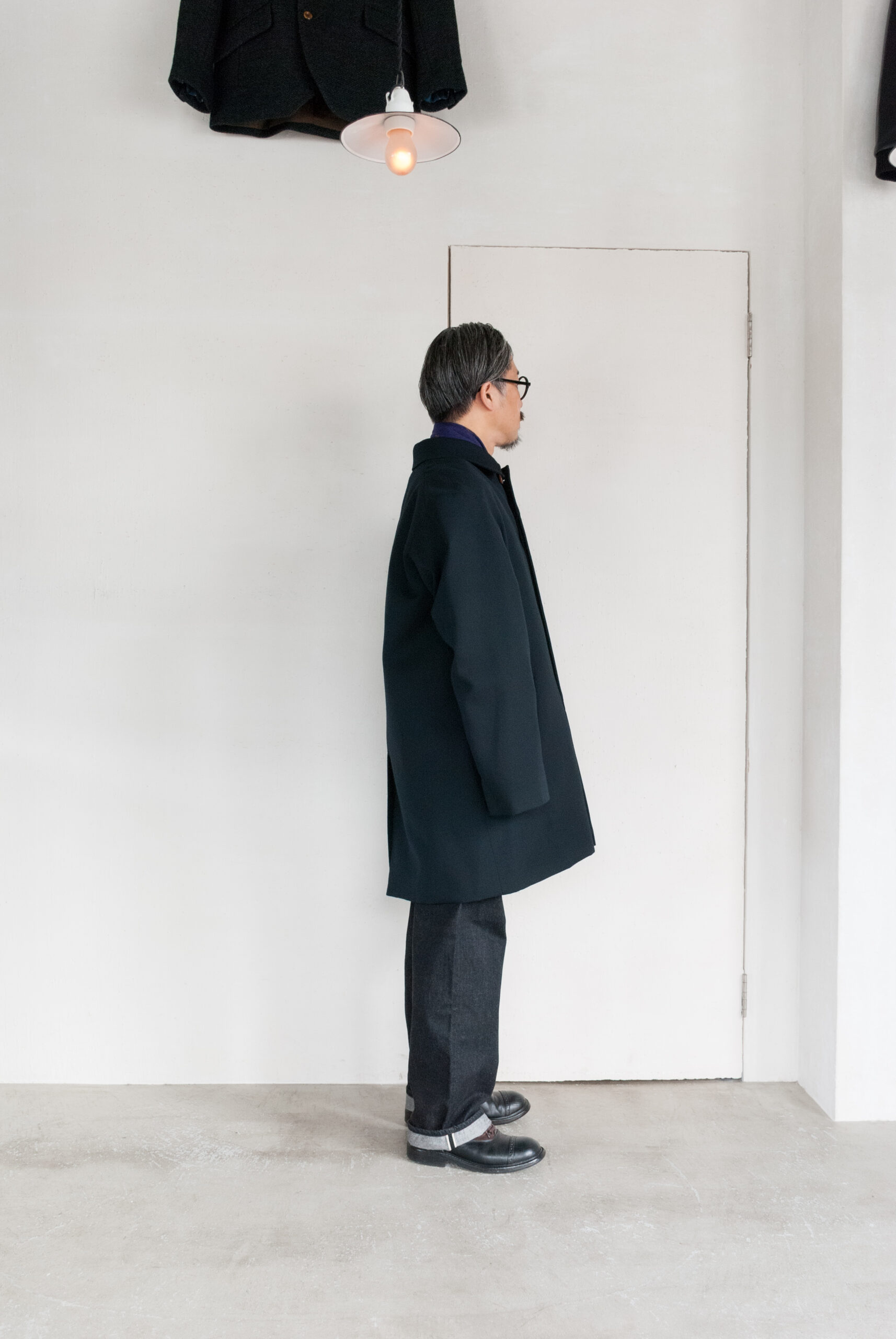 QUILPのコート『Hays』は、HainsworthのBarathea(バラシャ) Dressの生地を贅沢に使用し、シンプルで洗練されたデザインと卓越した仕立てが魅力的なコートです。