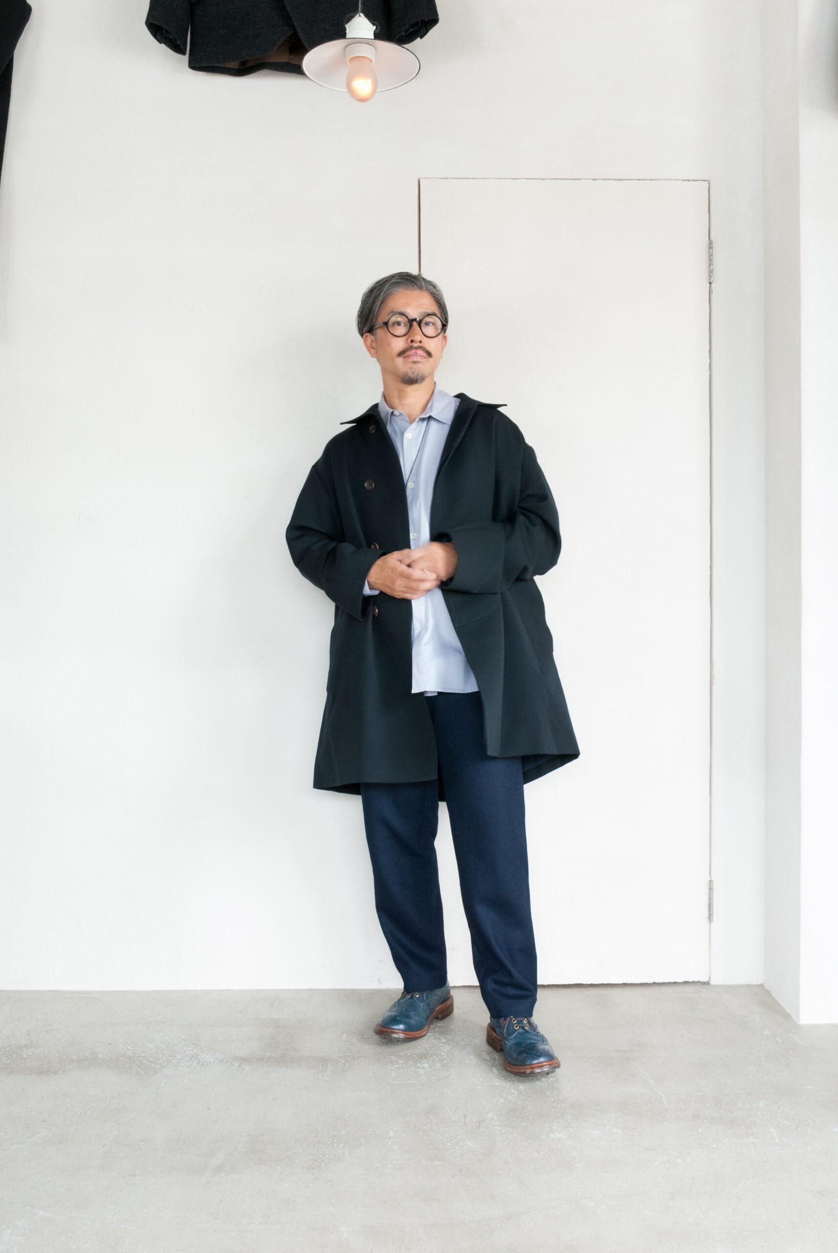 QUILPでは当たり前のように使用されているブリスベンモス社のツイルを贅沢にも裏張りに使用したり、袖口にボタンを付けなかったりと、随所に森下さんらしさを感じさせながらも、それはいつも通りさりげなく、思慮深い。