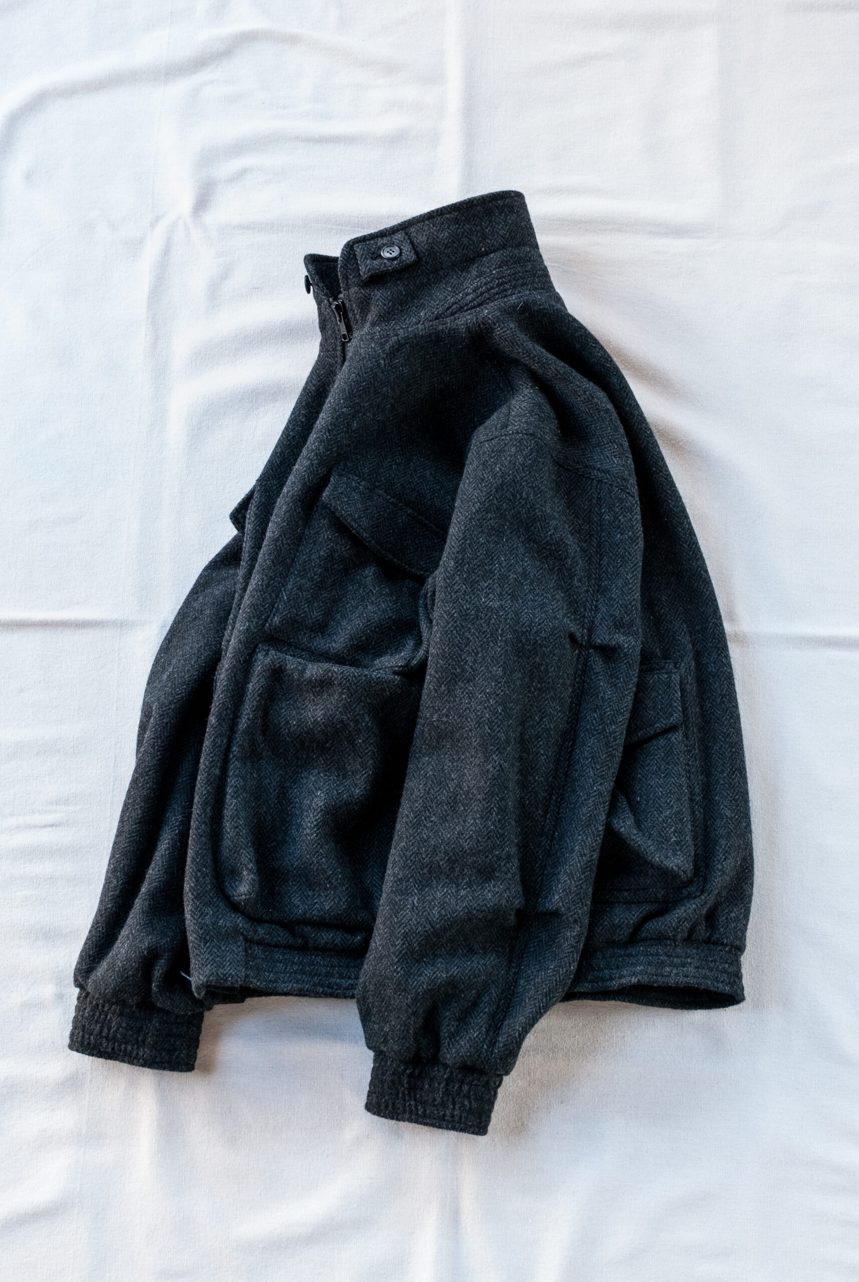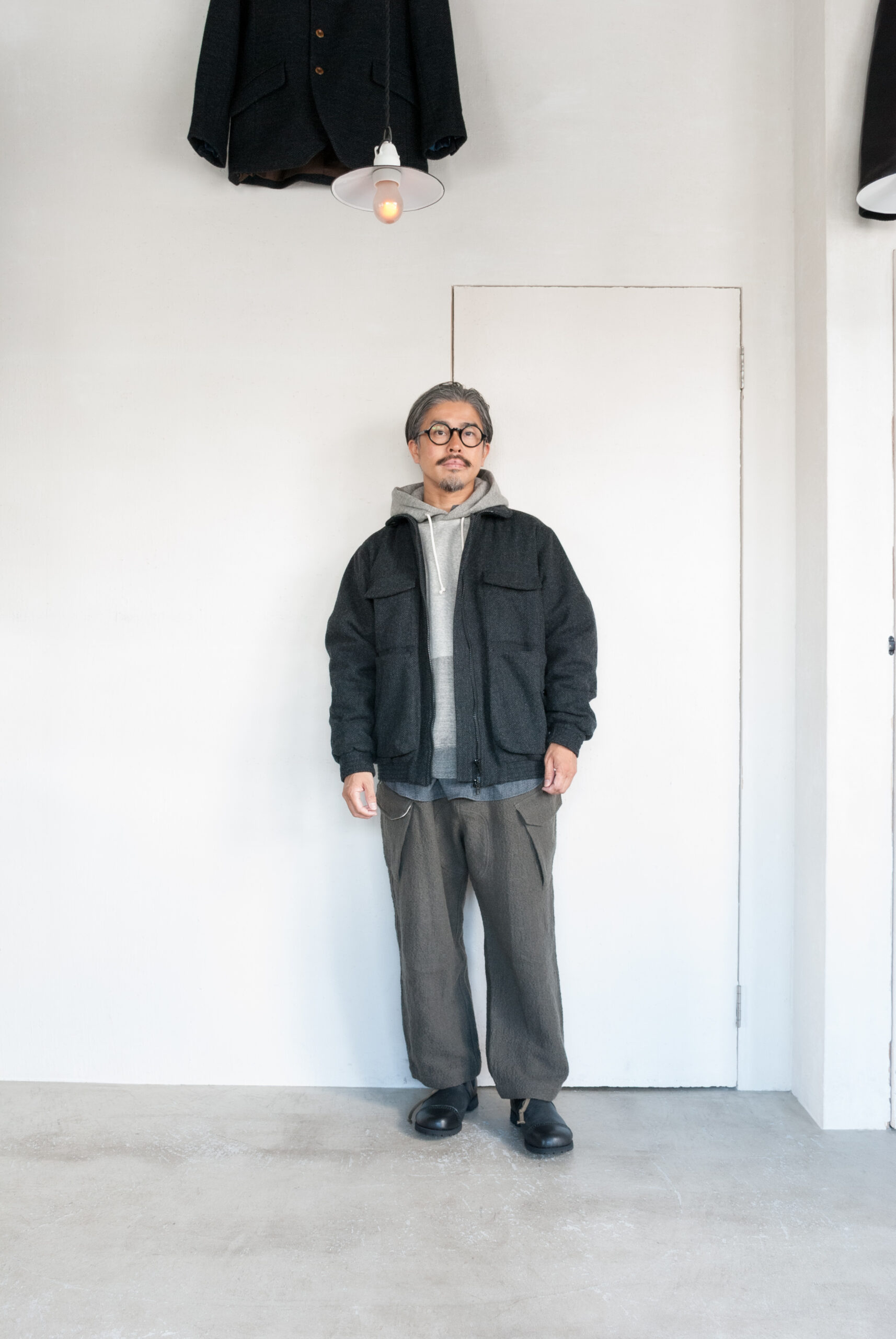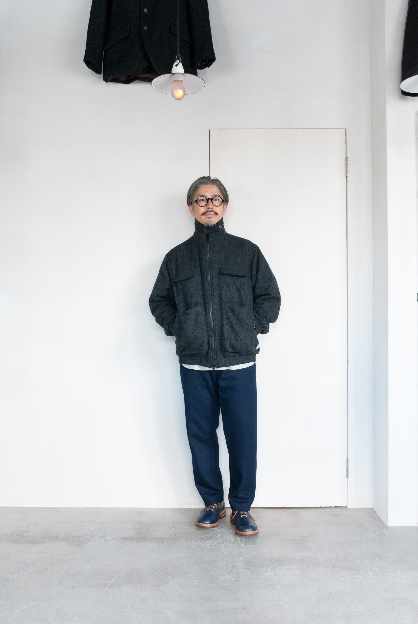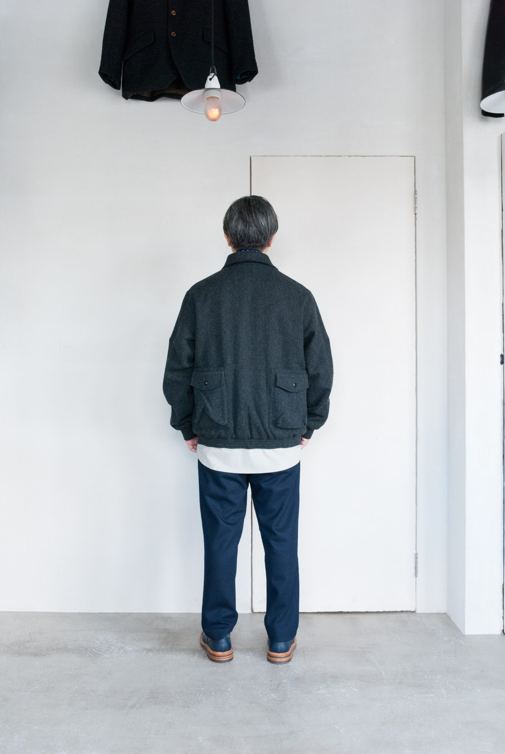 展示会場で一番気に入った渋ーい生地なので性懲りも無くコート、ブルゾン(これ)、ジャケット、パンツでオーダーしてます笑。
