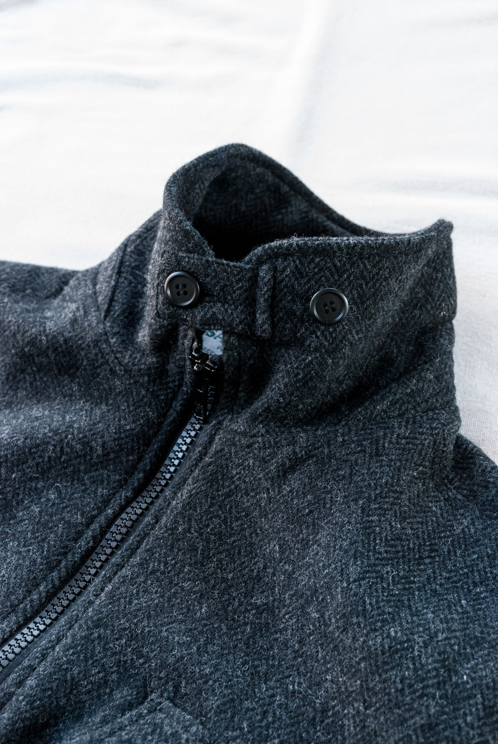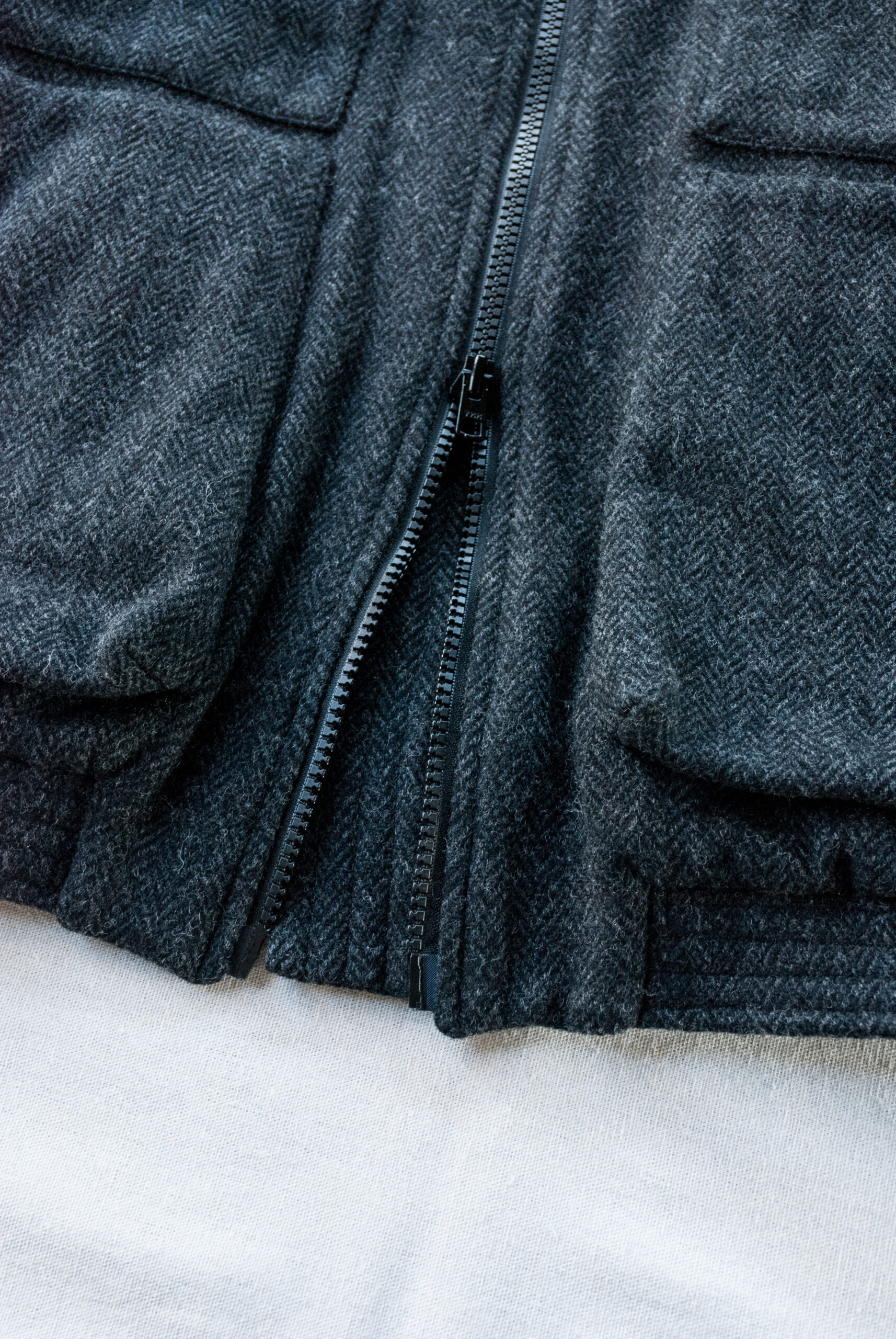 生地はヘリンボーンのウールブランケット。