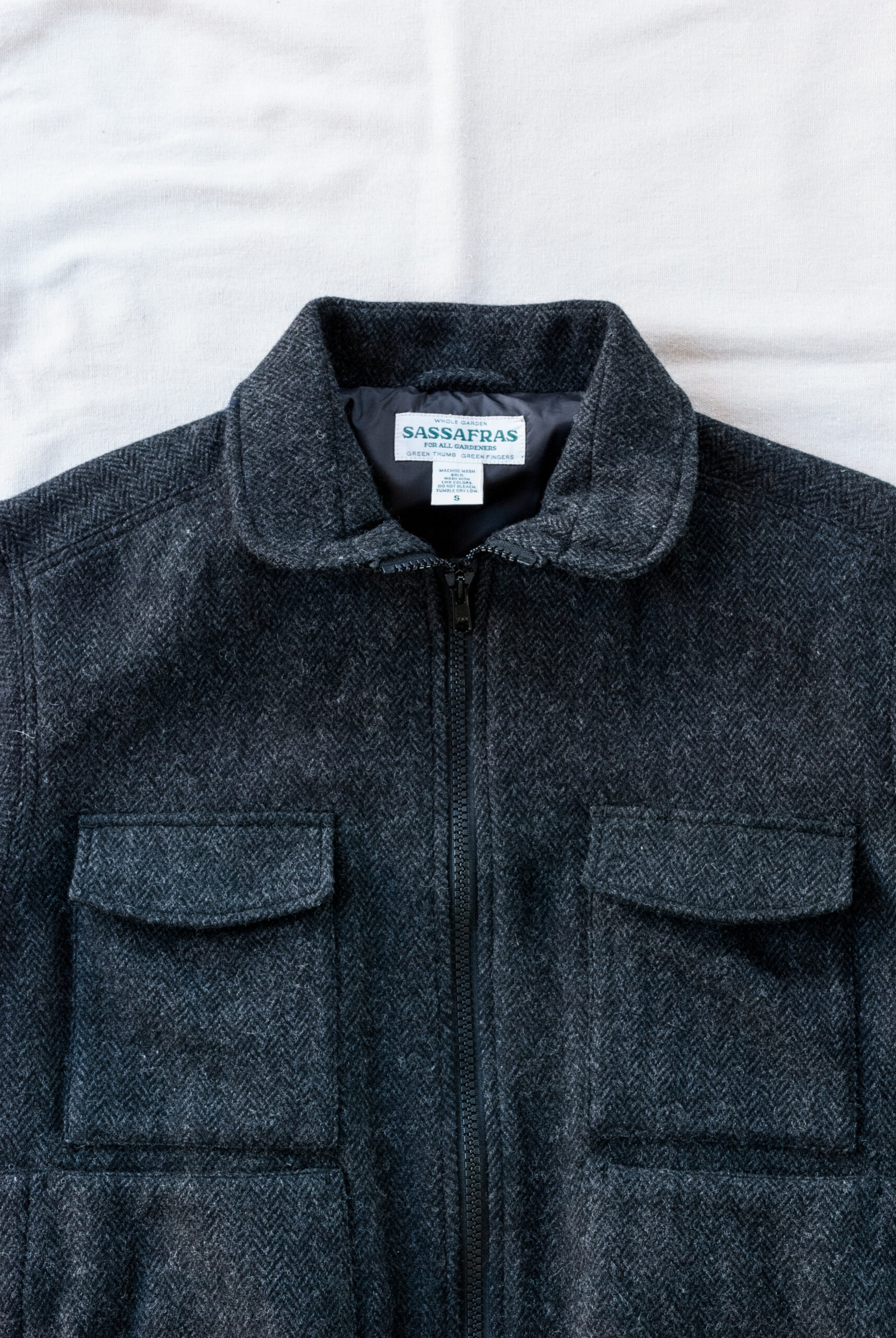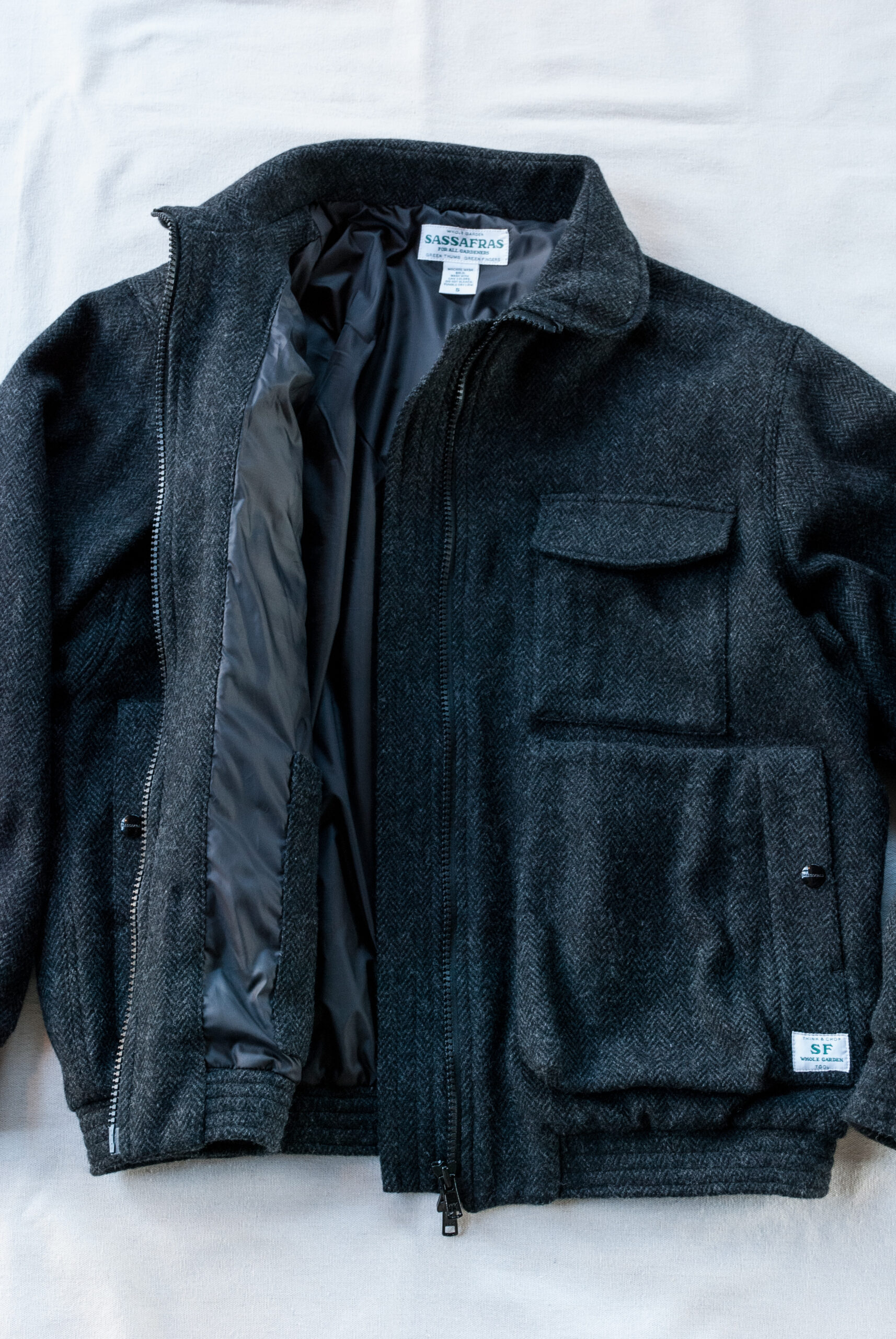 おじさん大好きスイングトップ(ハリントンジャケット)のようなムードを持ちながら、ササフラスらしいポケット使いとゆったりしたシルエット、緩めに設定されたリブのテンションやダブルジッパー等、色々なギミックが搭載されながらも、『らしく』まとまった『D/C Armor Jacket Heavy』。