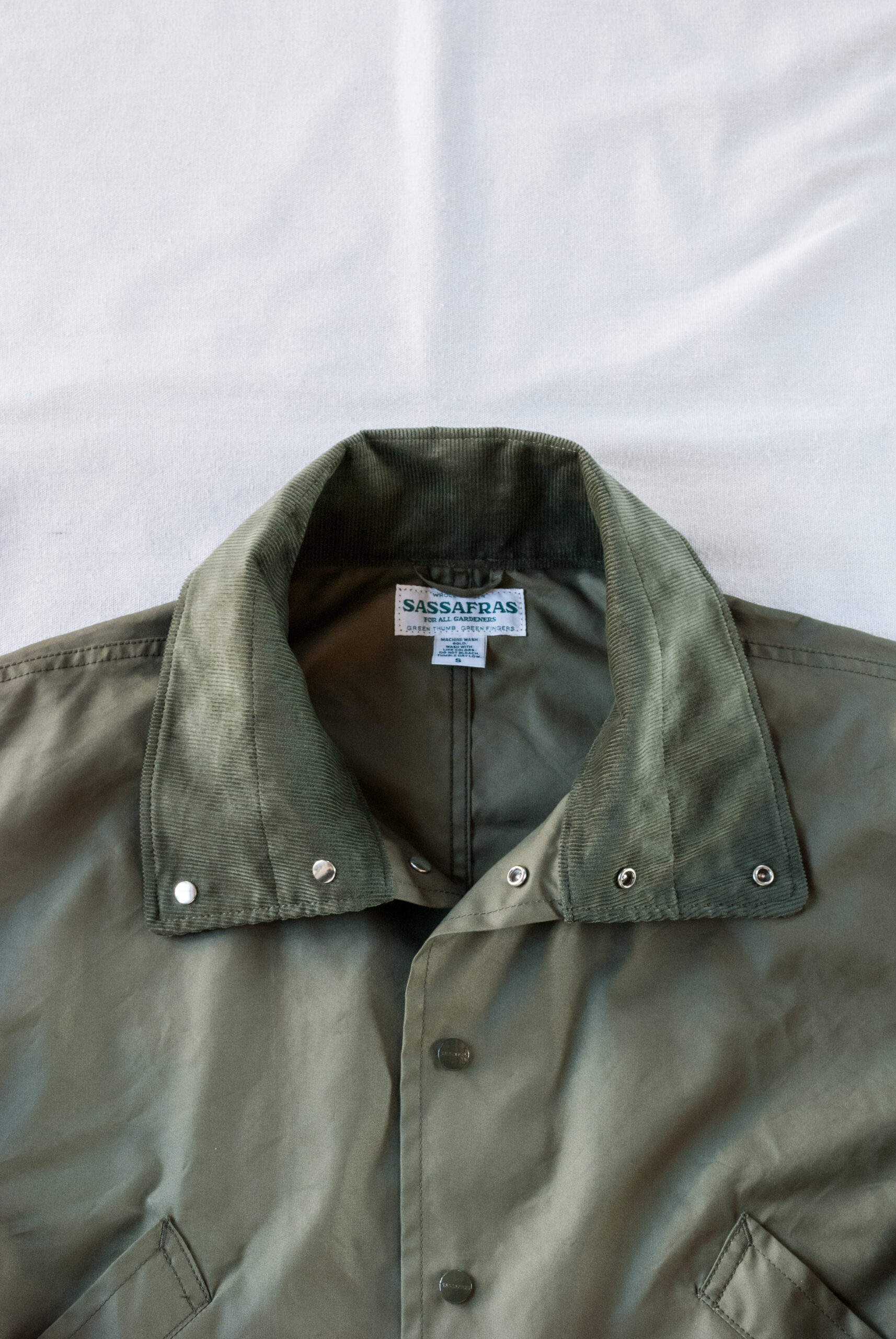 光沢感を抑えてあるロクヨンに対して、ベースのオックス、首元と袖口のコーデュロイは少し光沢感があるので、それぞれの生地の表情のコントラストが面白く、洗い込んでいくことで変化していく全体のムードにも期待大です。