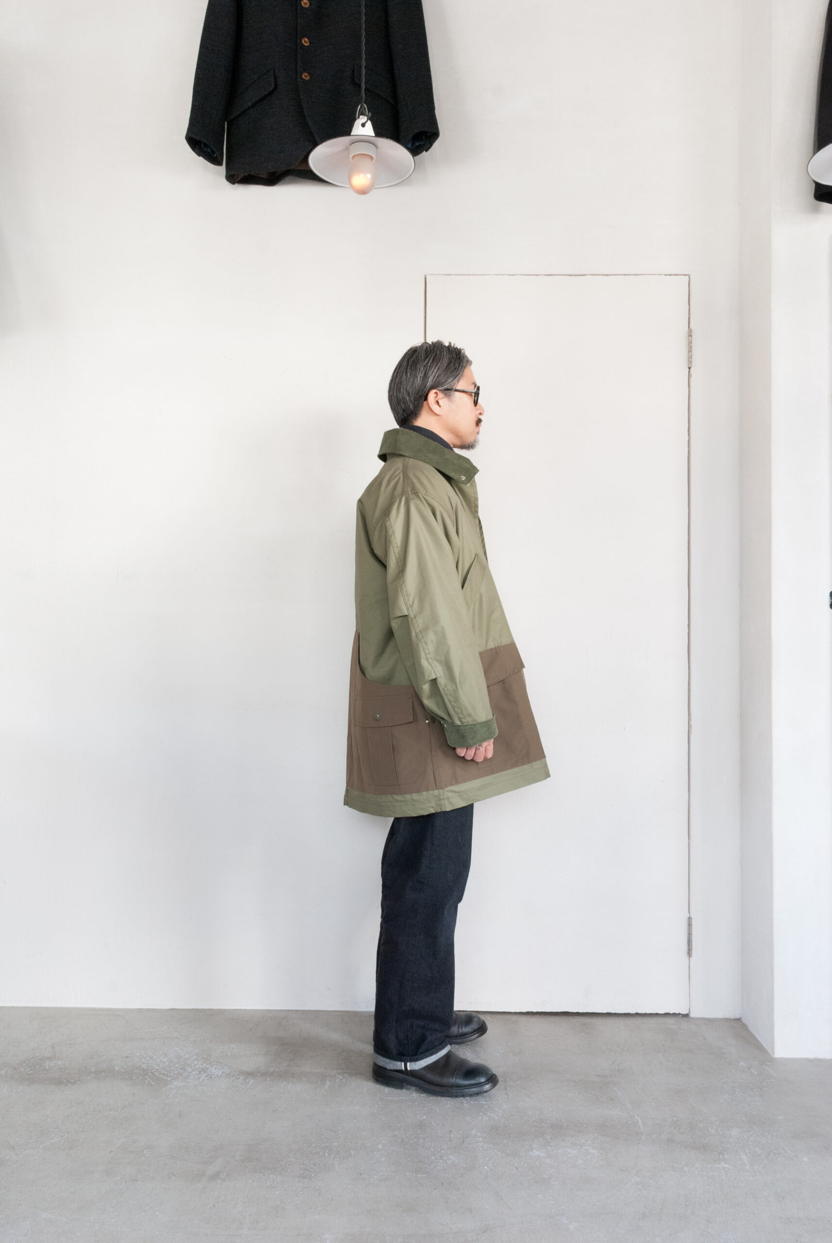 3種類の生地を組み合わせたササフラスの新型コート『Botanical Scout Tube Coat』。