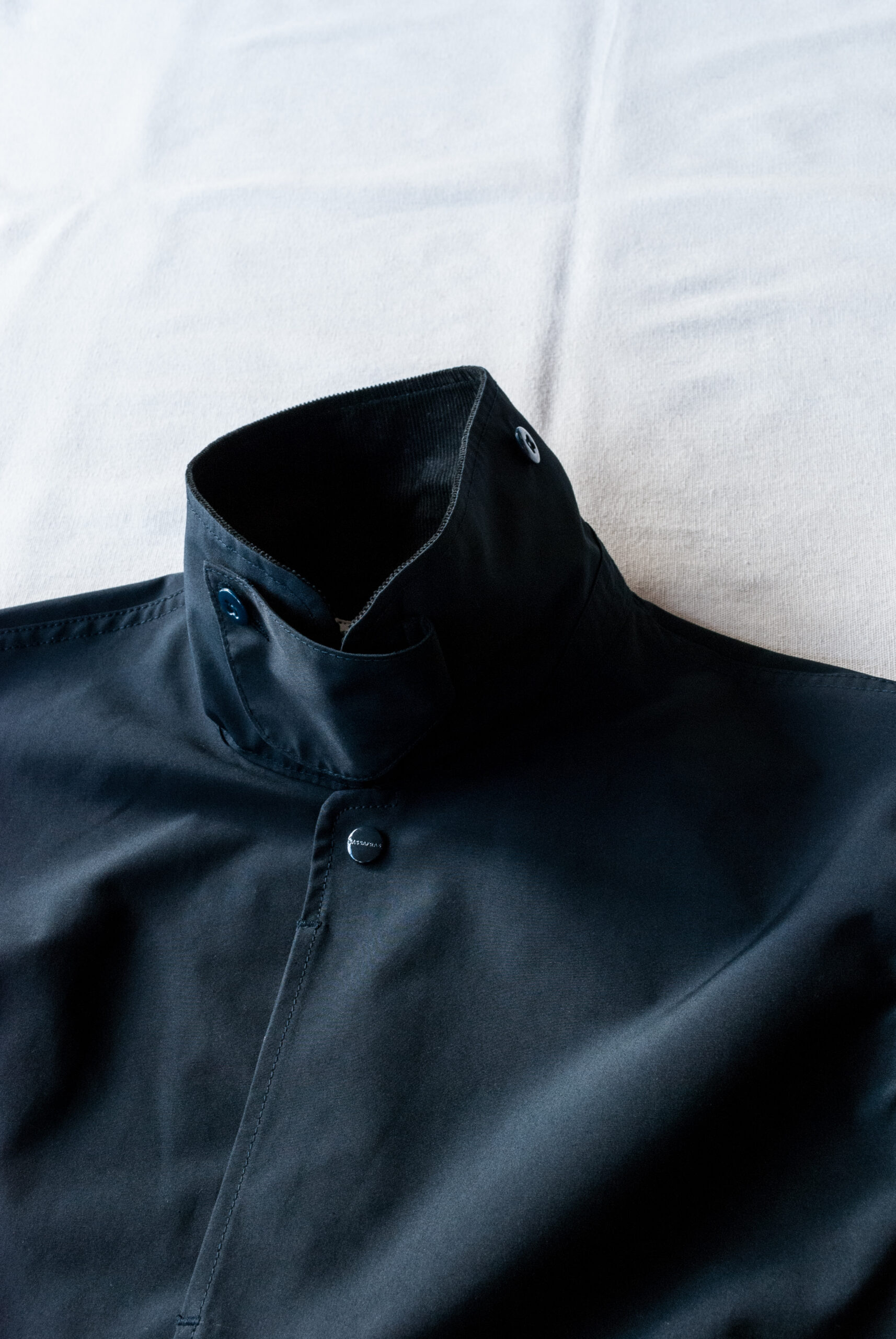 スロートタブ付きの襟は、立ててもねかせても良いのですが、立てた時に首元がヒヤッとしないように貼られた14Wのコーデュロイが良い仕事をしているので着こなしのムードが変わります。