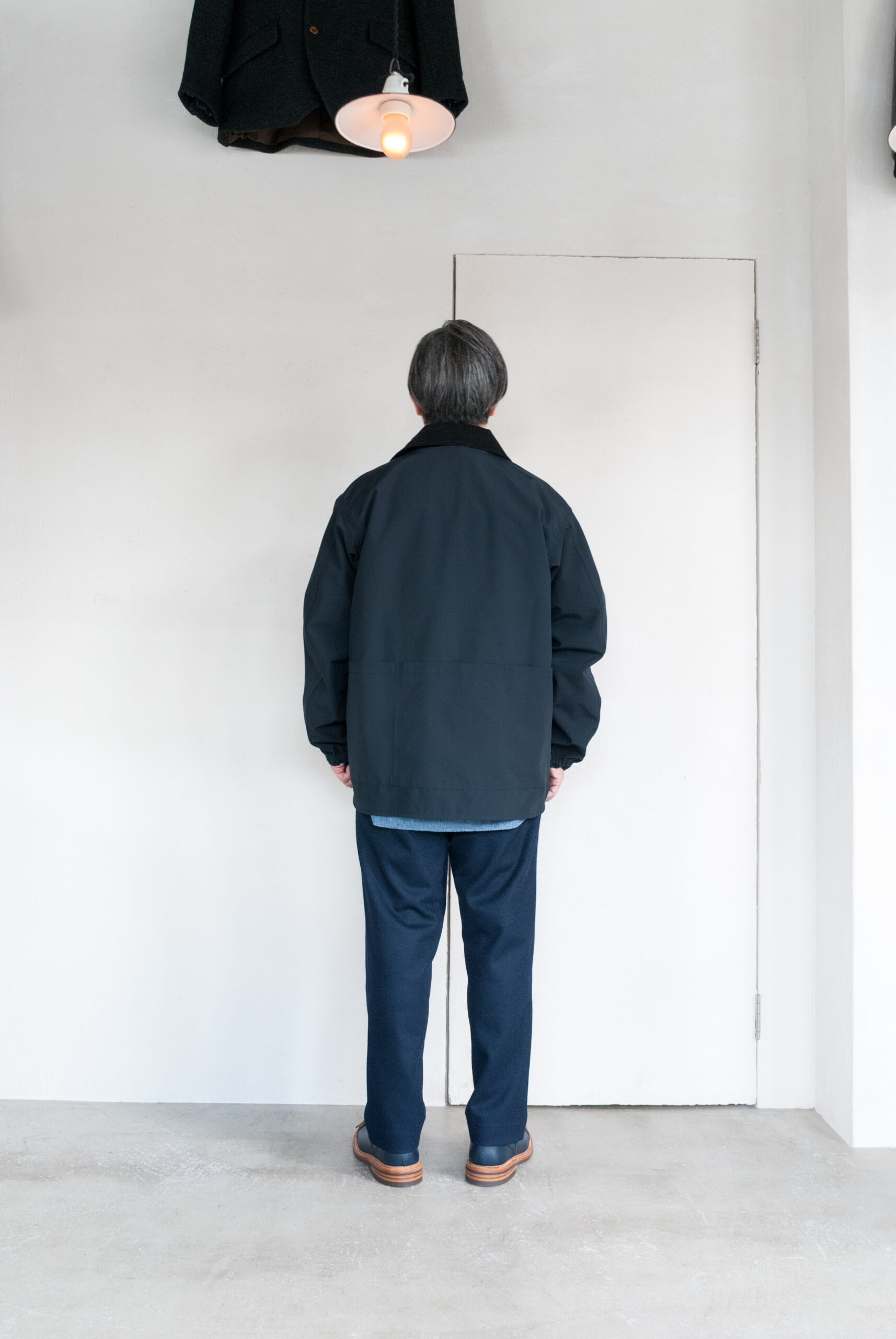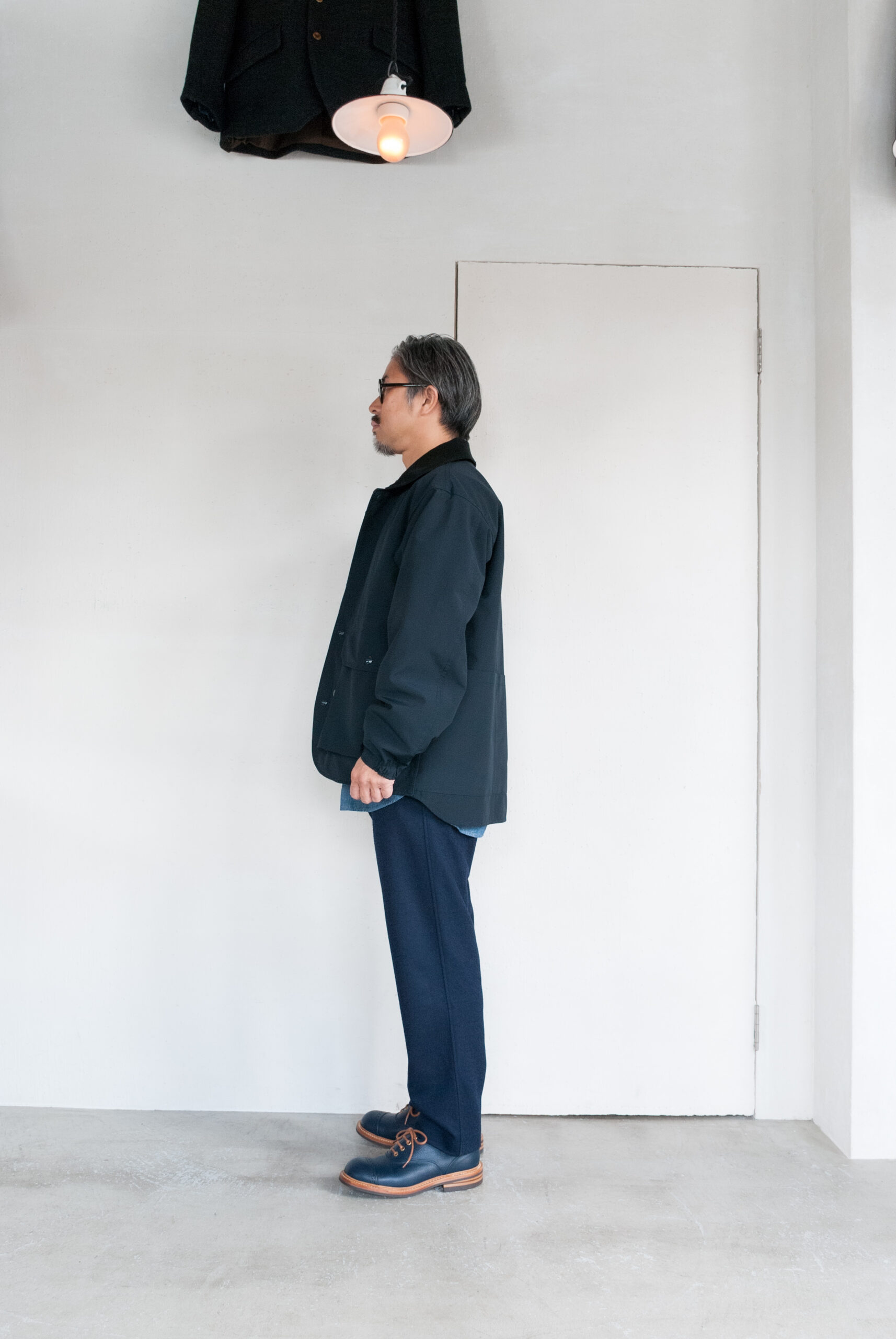少し短めに設定された着丈は、シャツとのレイヤリングや、スウェットパーカーやニットと合わせてあげたりとコーディネートしやすい。