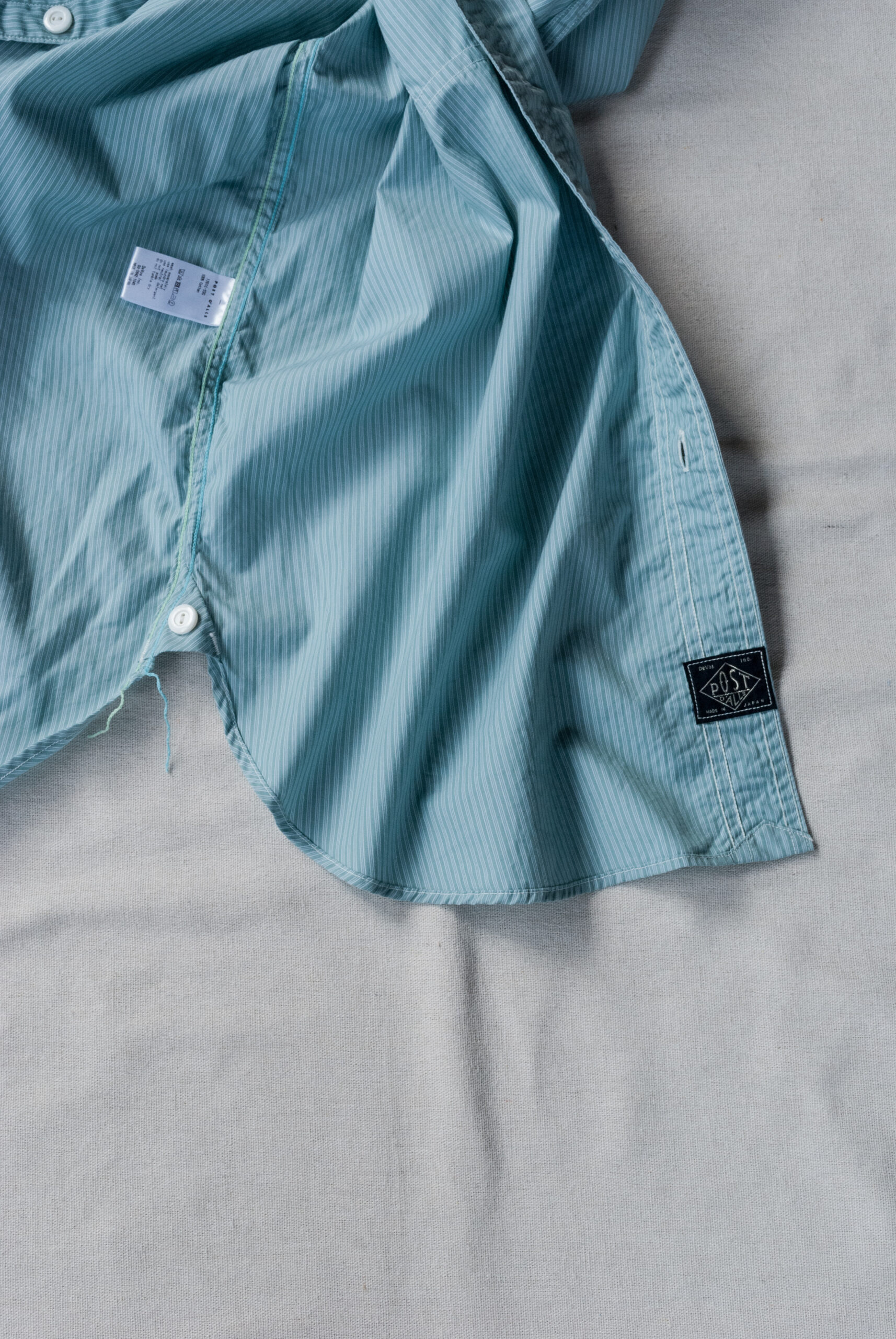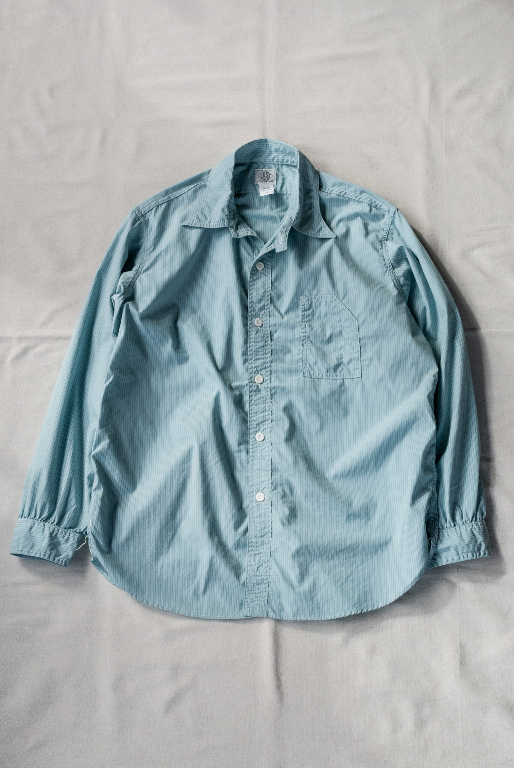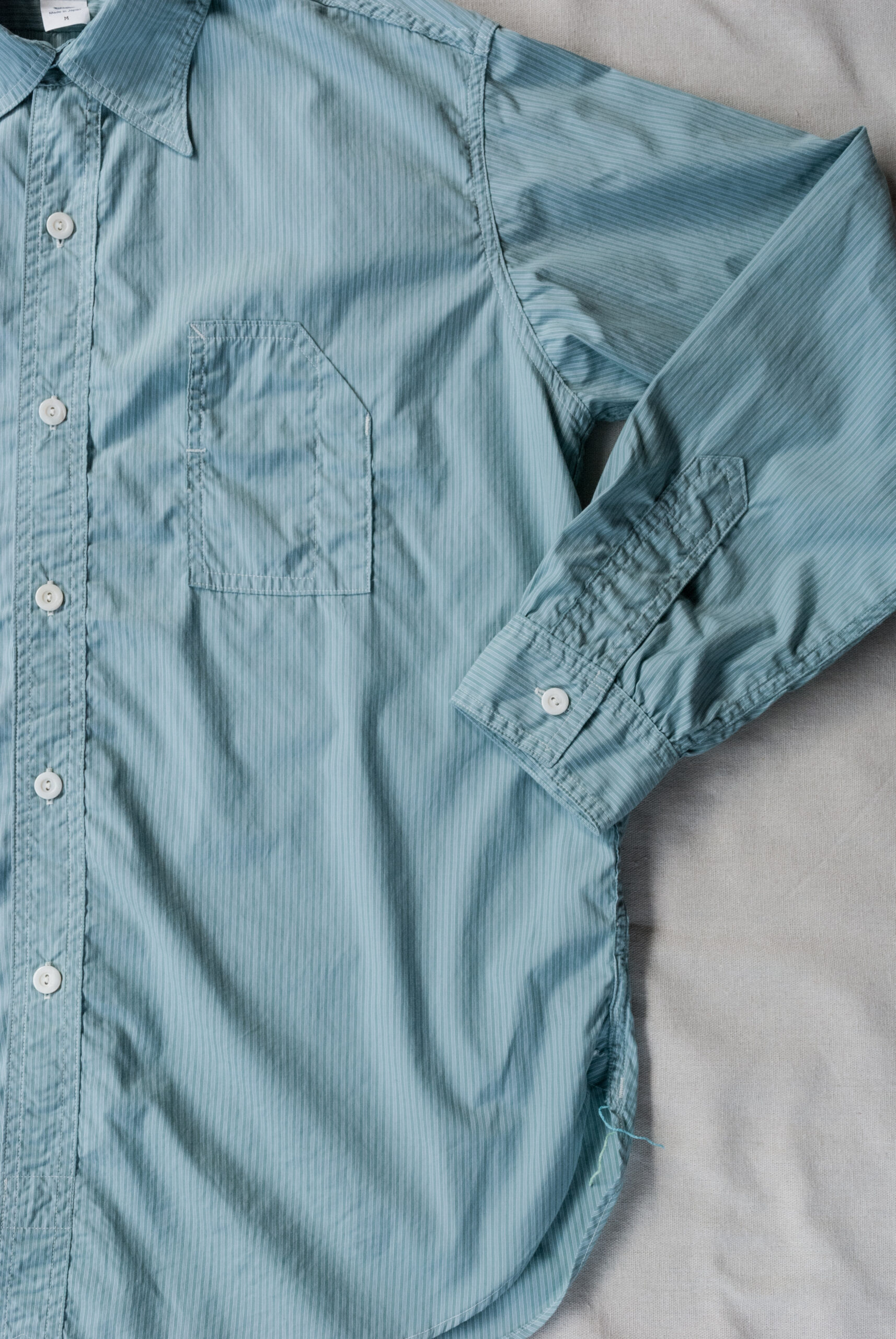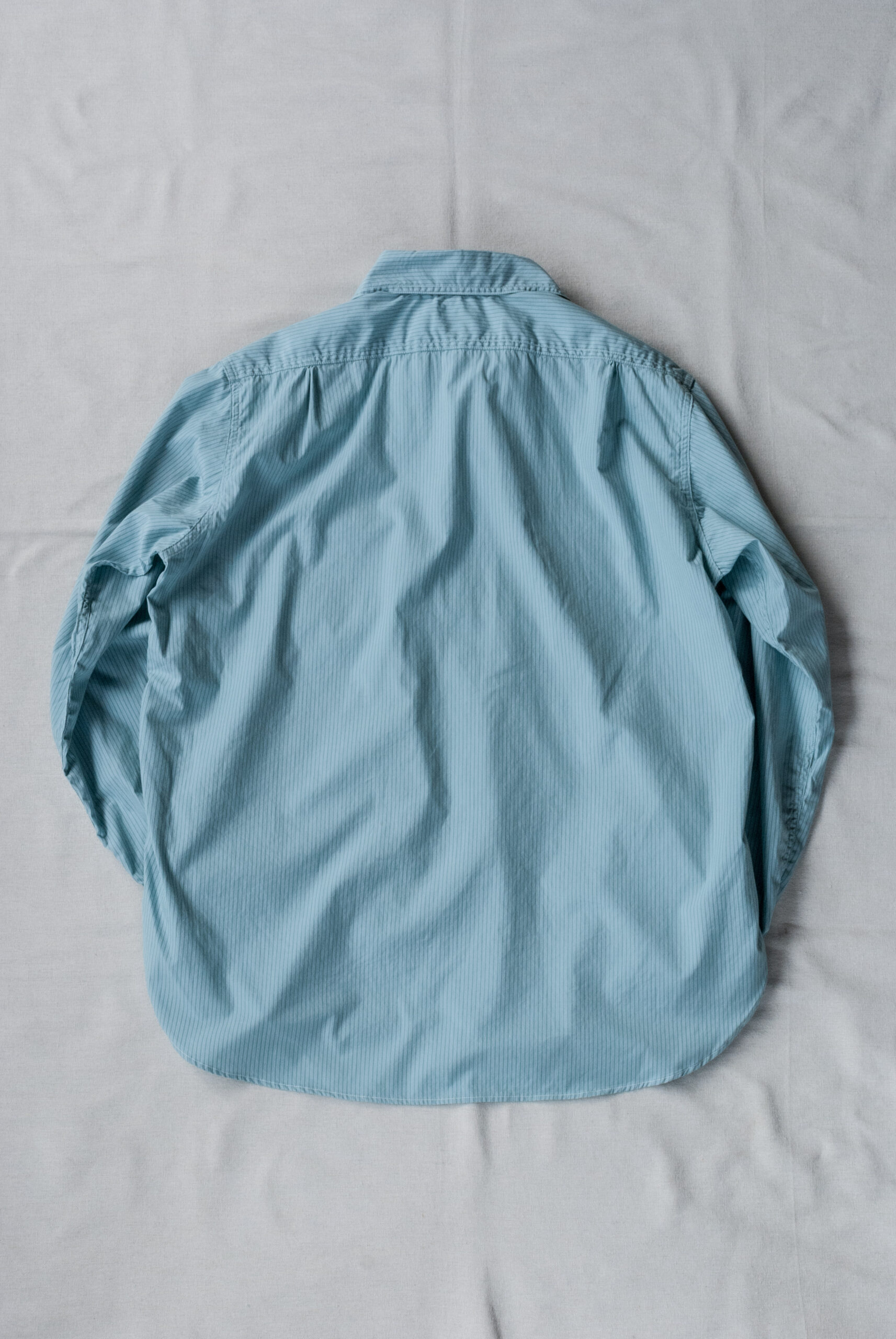 デザイナー大淵さんが1990年頃にF.I.T.(N.Yにあるファッション工科大学)のプロジェクトで作った1920年代風のワークシャツがデザインベースとなっており、袖口やヨーク(肩から背中の切り替え部分)のギャザー等、その当時のアメリカではポピュラーであったディテールを持ちながら、『その時代にありそうで、ない・・・』というポストのコンセプトを体現したようなシャツです。
