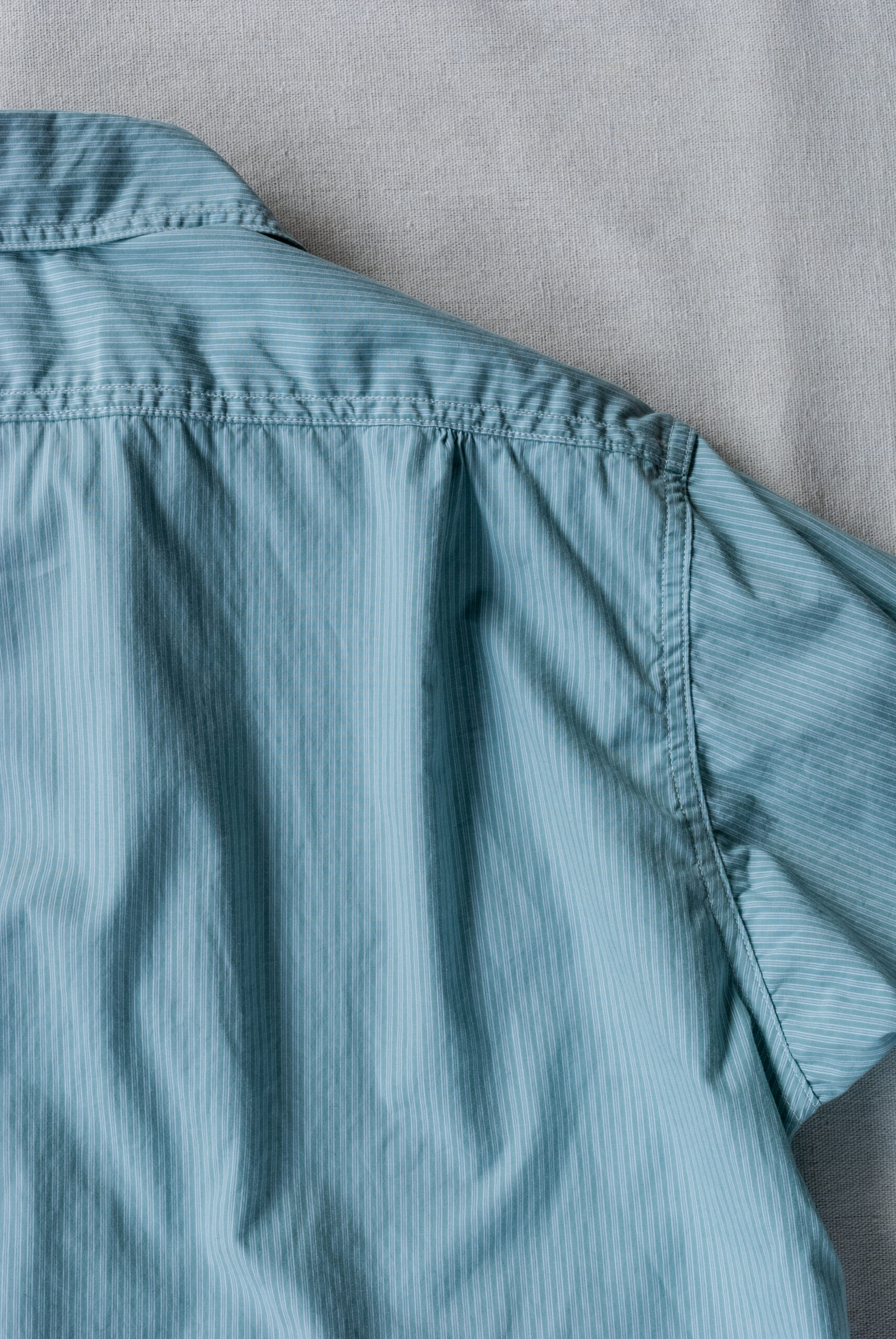 前回も細かく見て行ったのですが、背中や袖口などの『寄せ』の部分ではヨーロッパのシャツのムードを感じさせながらも、2本針の巻き縫いや両サイドのマチの『縫い』の部分ではアメリカ的な力強さも併せ持つハイブリッドなワークシャツです。