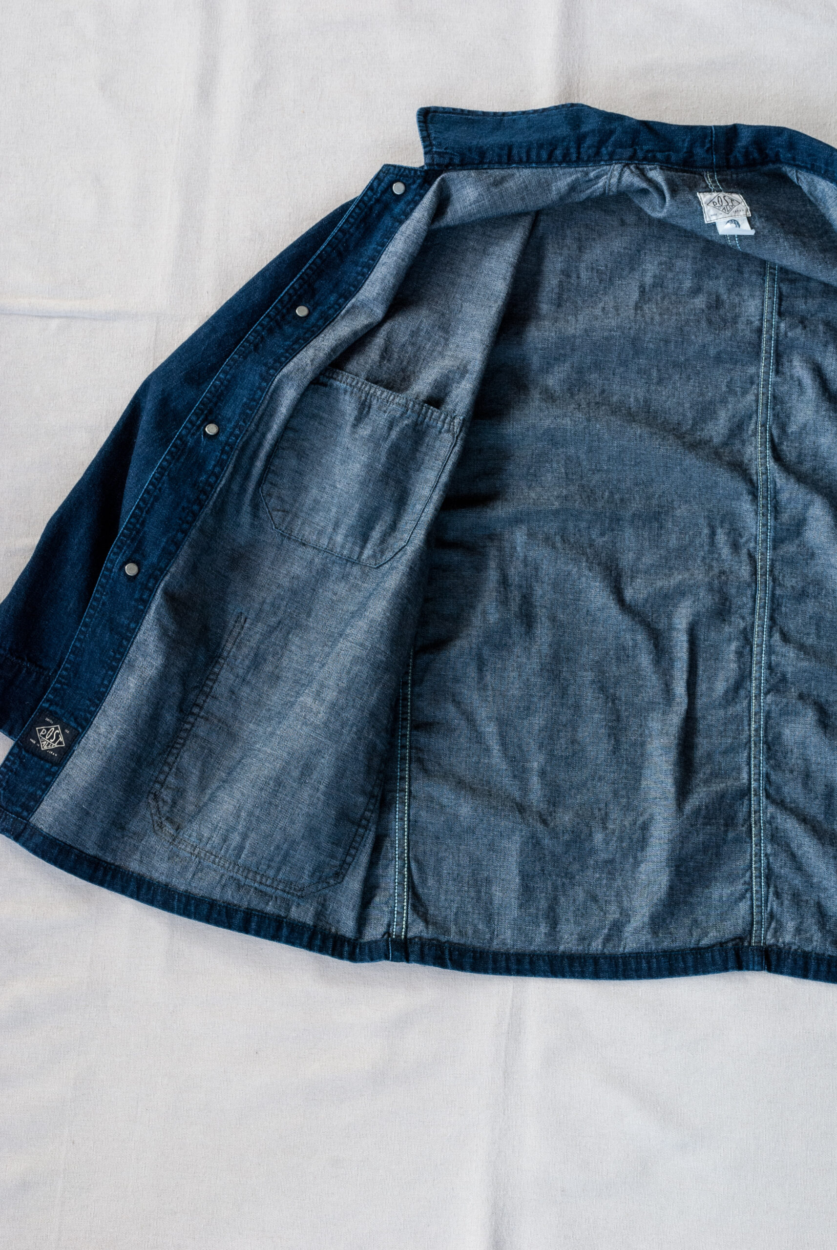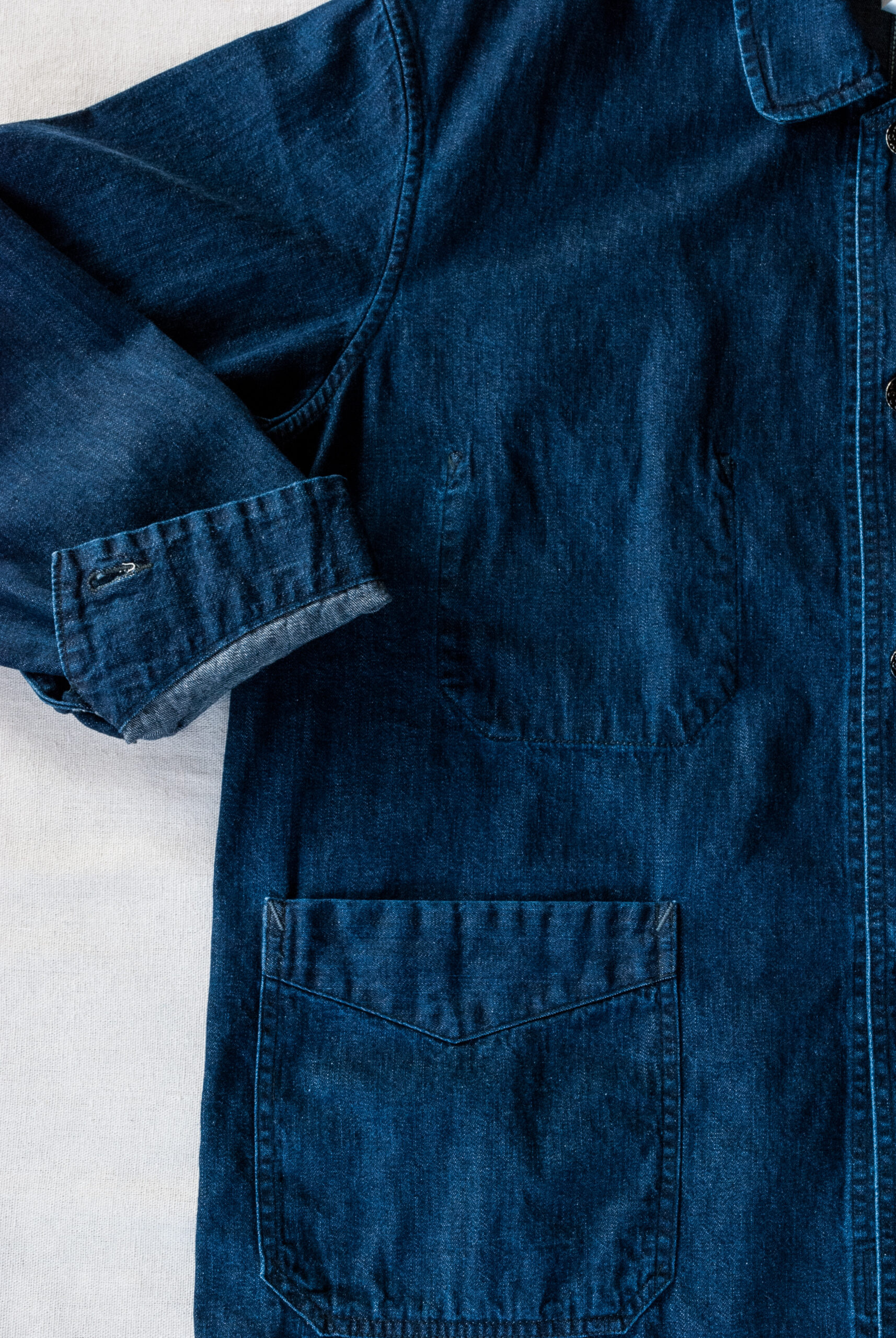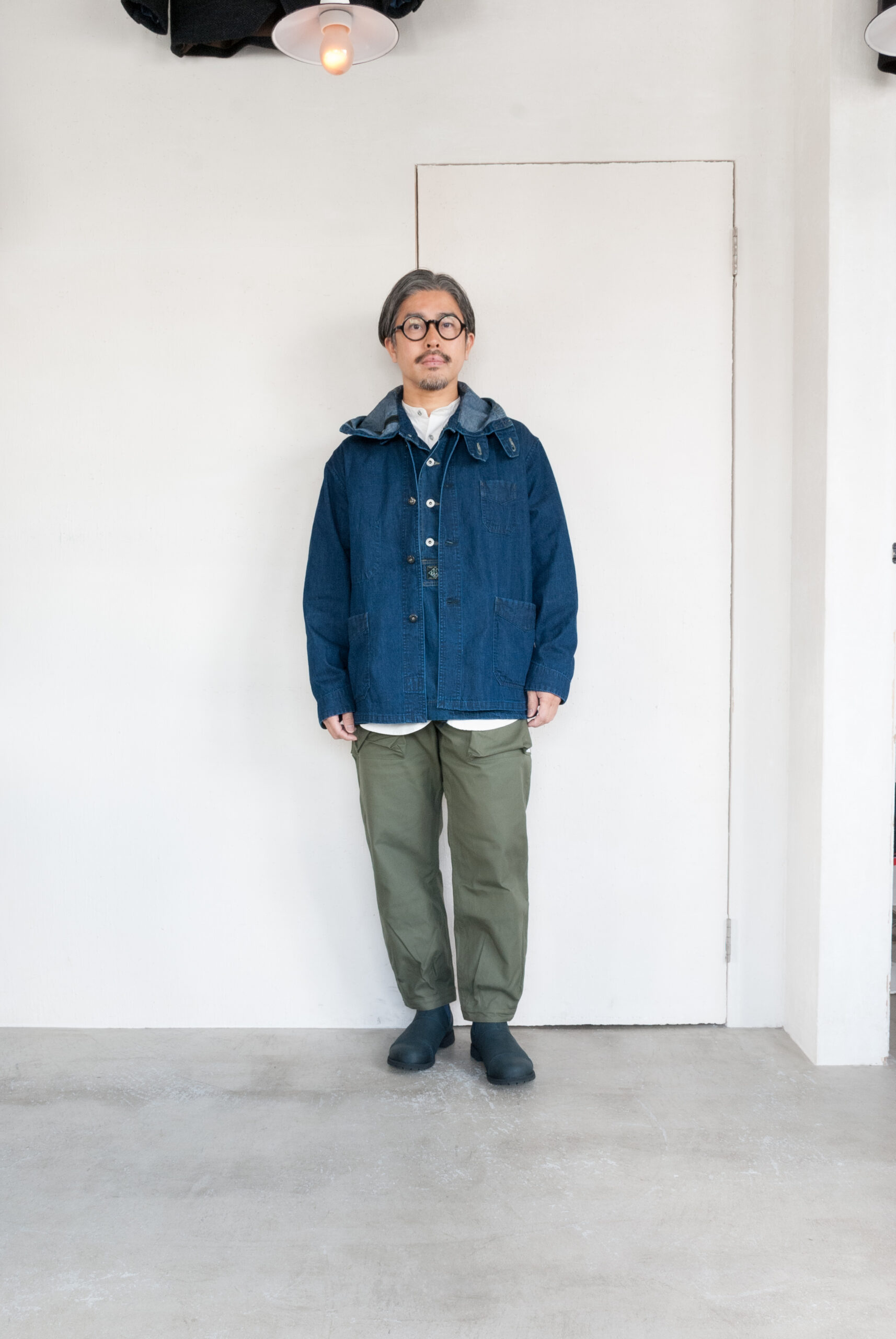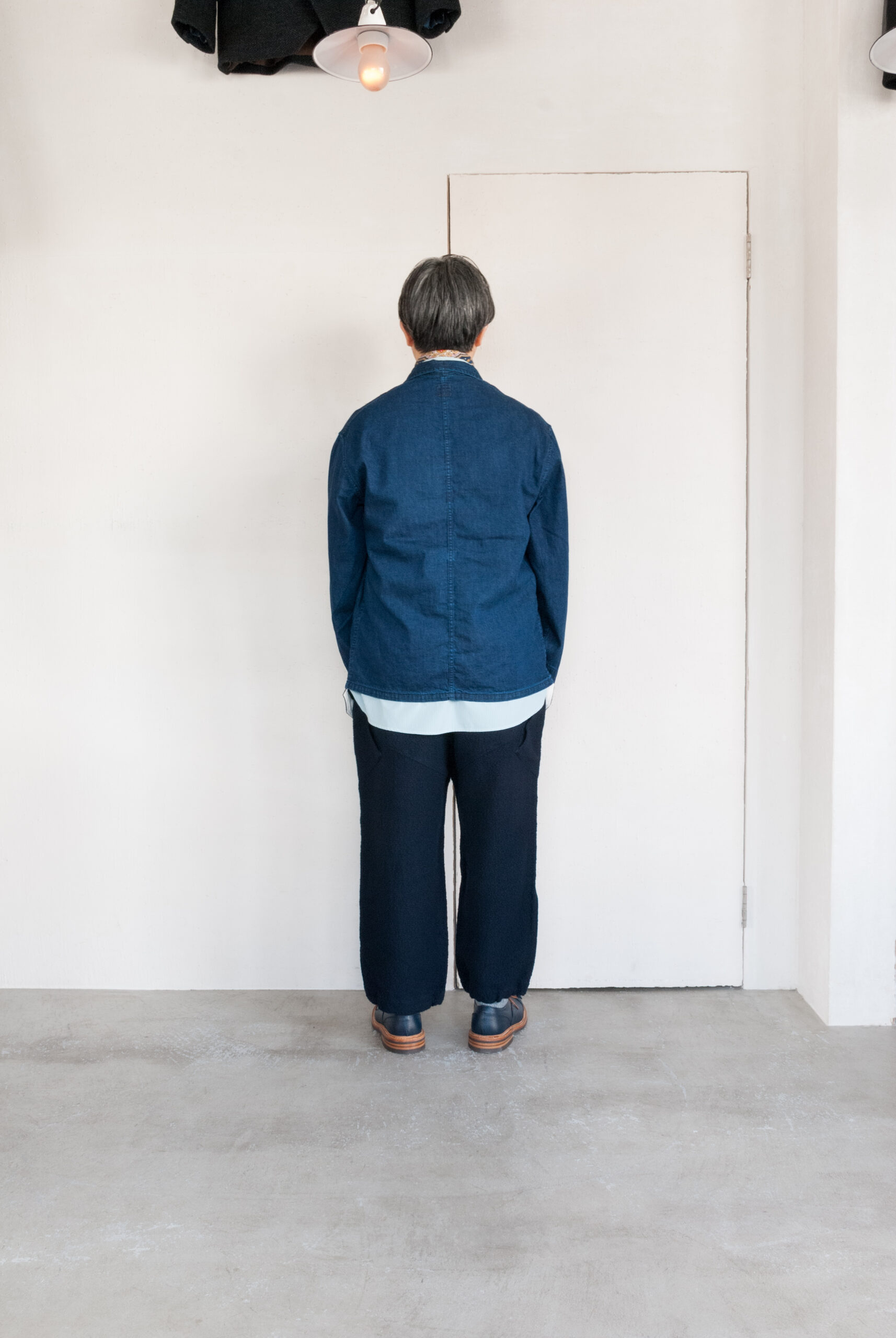 薄過ぎず厚すぎない8ozの生地は、春や秋の羽織ものとしても良いですし、インディゴデニムのフレンチジャケットは、様々なムードやコーディネートに対応出来る懐の深いポテンシャルを秘めています。