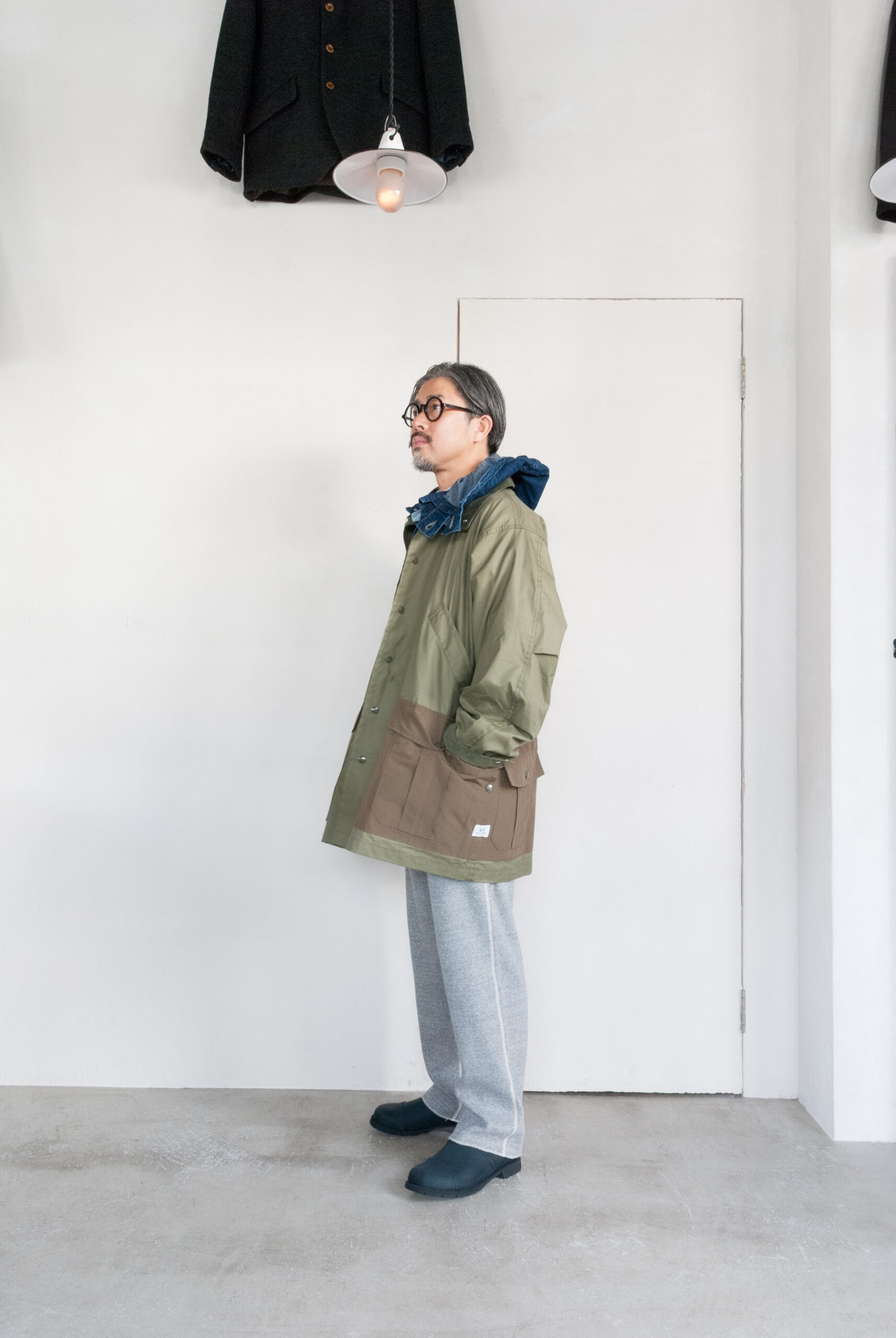 スタイルとしてモッズパーカに近い感じになるのですが、生地のトーンを変えて切り替えられているので、一目でわかる違いがあります。