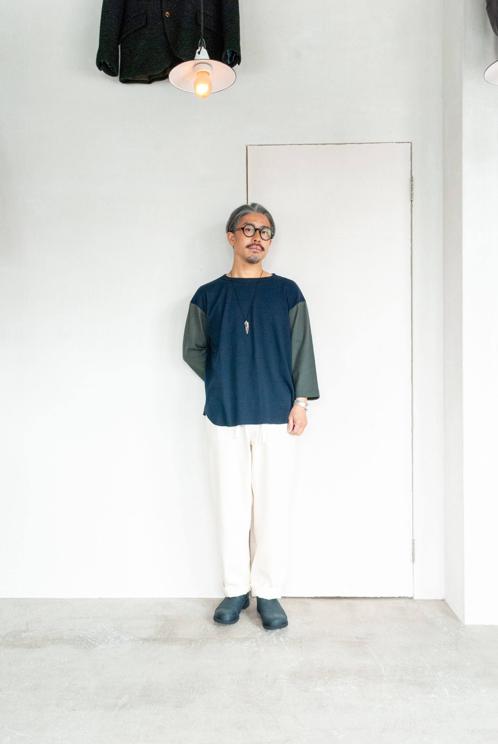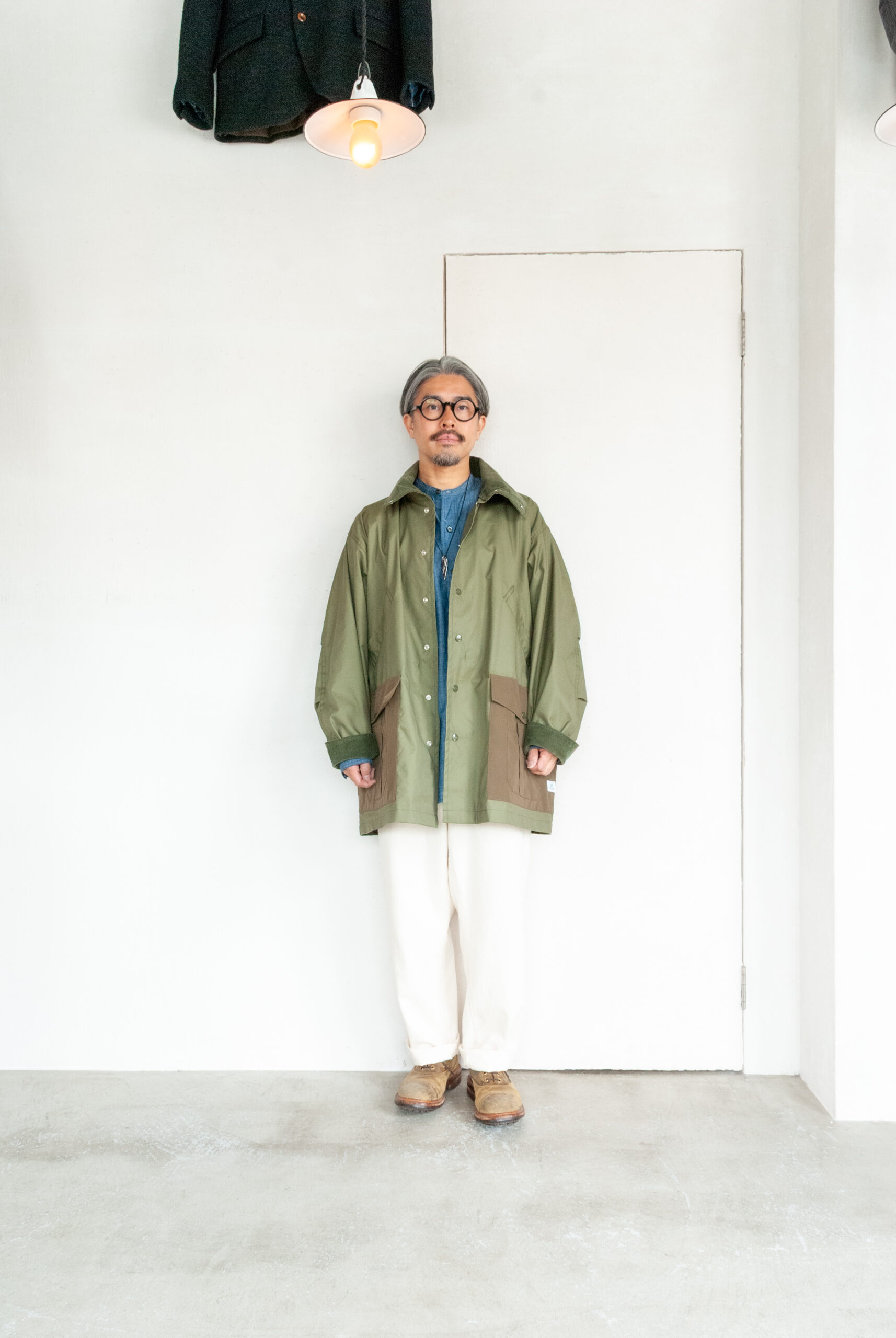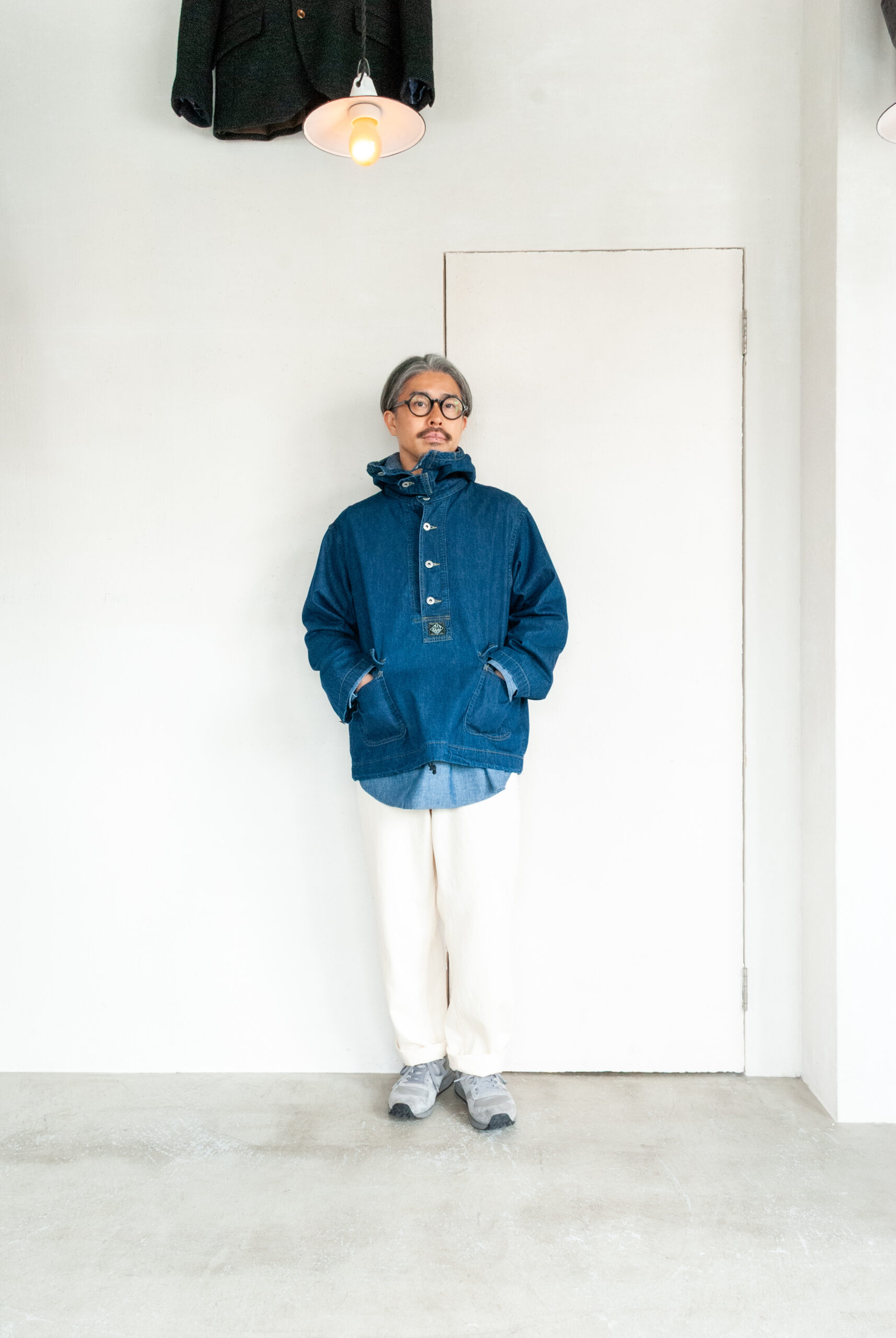 去年に続き、うちではパンツだけのセレクトになりますが、このパンツ、バックポケットに特徴的な両玉縁のスマイルポケットが搭載されており、そこだけ見ると最初は奇抜に映るのですが、穿いてみると生地や色もあってか意外とすんなり消化できます。
