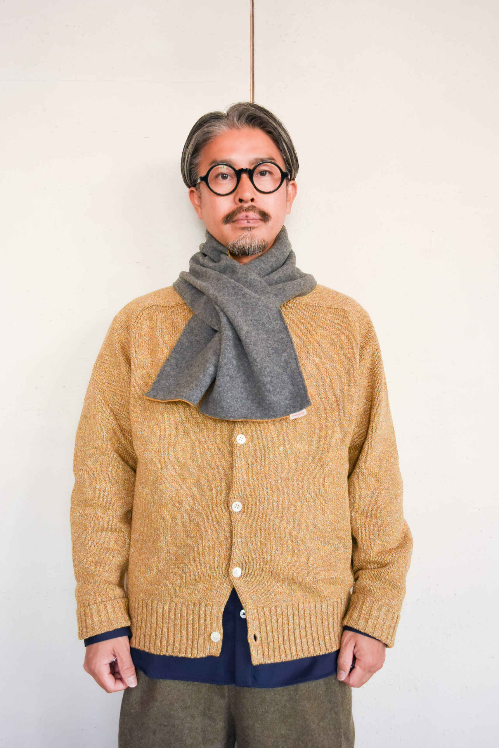 少しくすみを含んだ、強すぎない黄色で、グレーやネイビー、ブラウンといった冬の定番色に自然と溶け込みます。