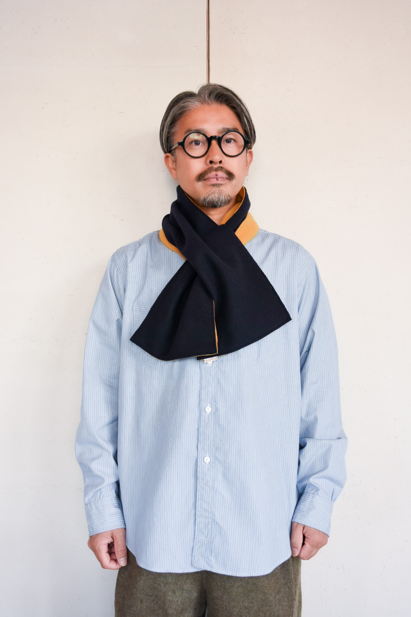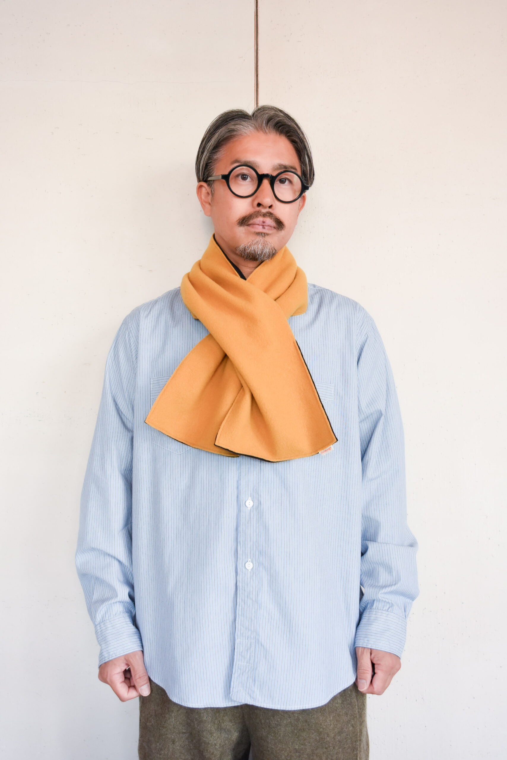 もともとは“生地を巻いて暖を取る”という素朴な発想から生まれた形なので、いかにもマフラー然とした主張はありません。