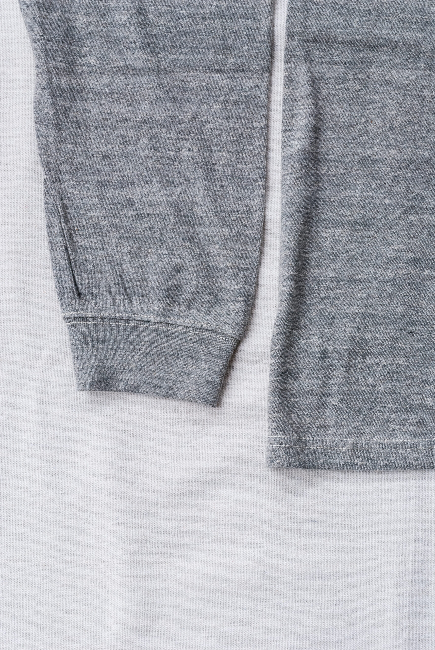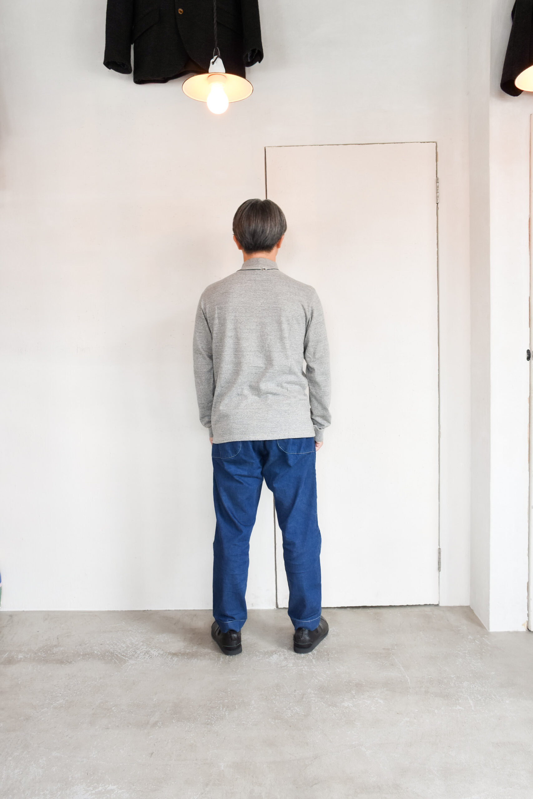 その生地を秋冬なので長袖にしてリブを付けてモックネックにしてるのが『DUOMO』。ゆったりめのシルエットに変更してポケットを外したのが『DOUG』です。