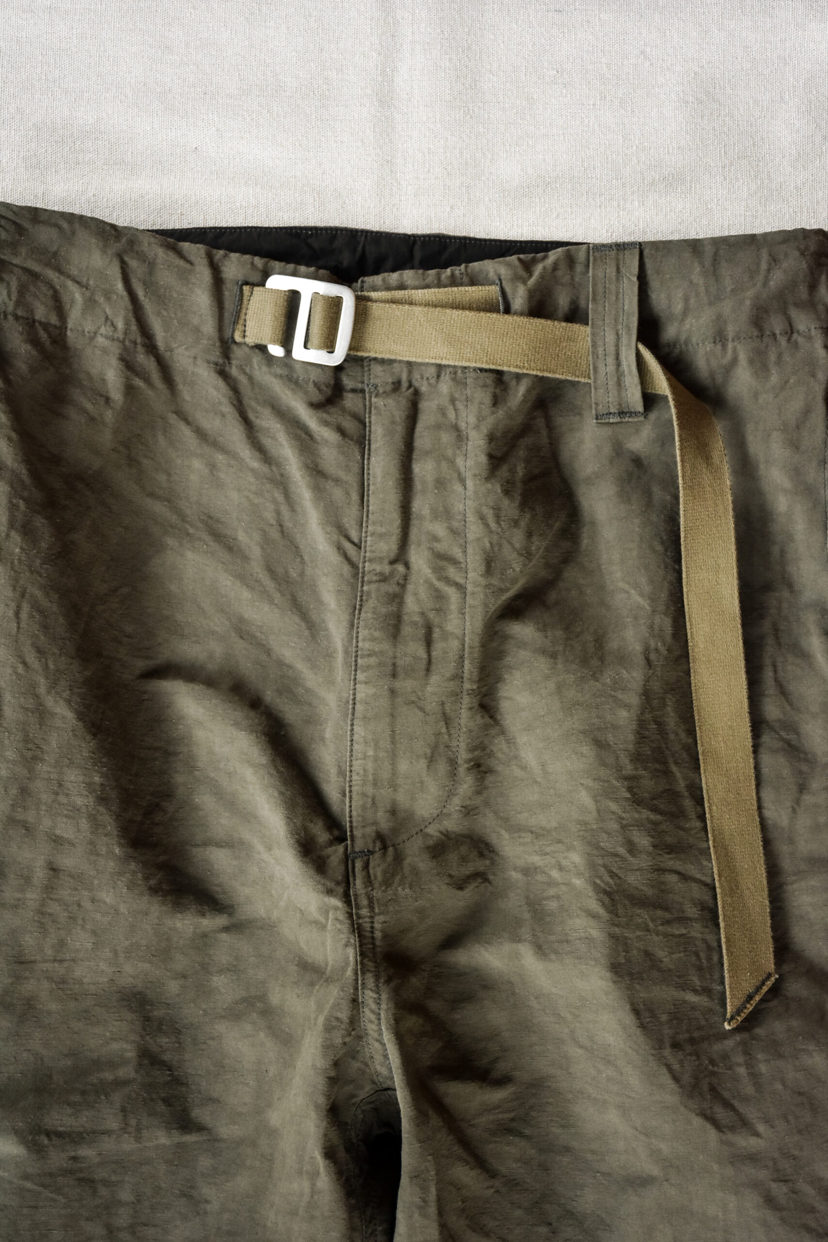 いわゆる軍パンのオリーブとも違って、強さを前に出す色ではない。