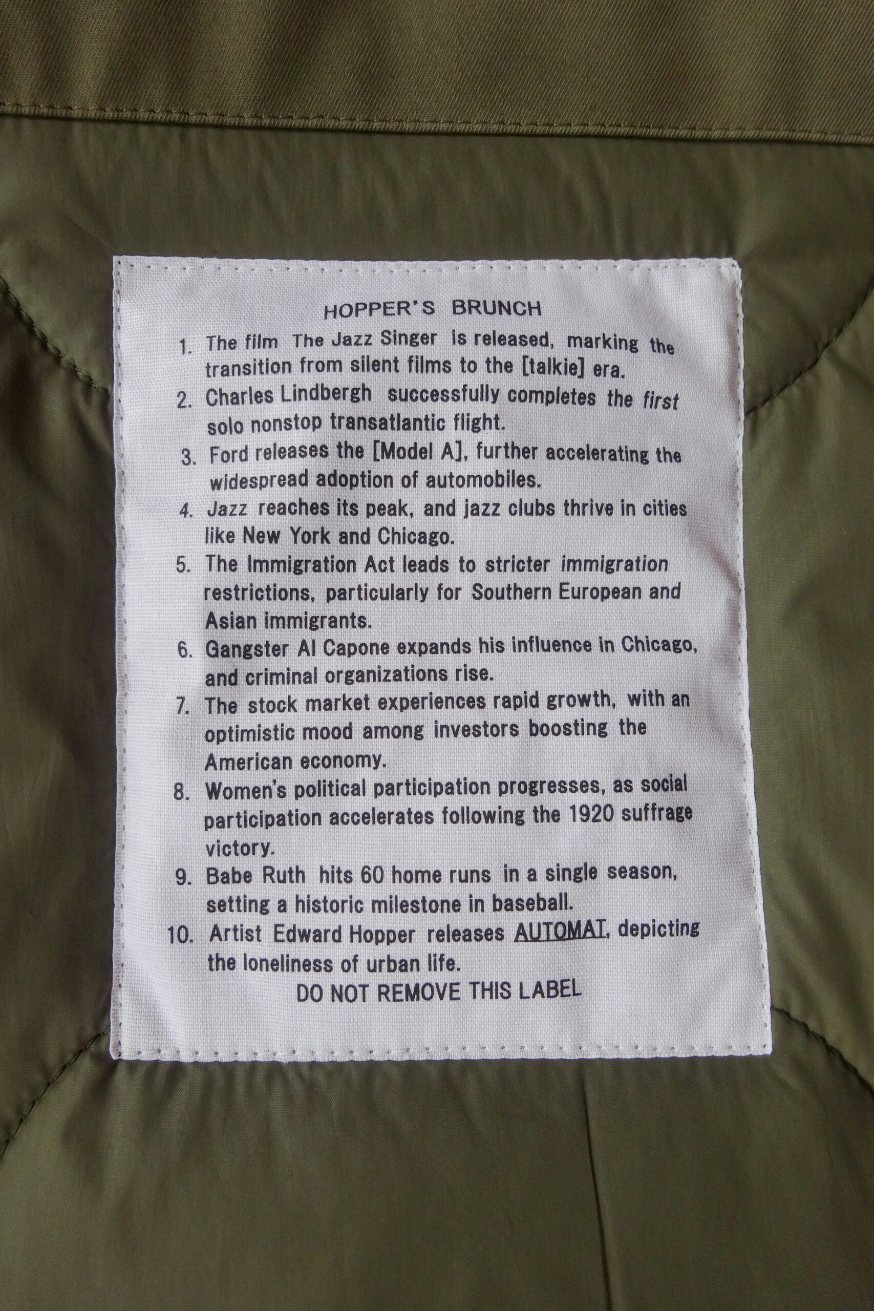 古着のライナーとは違う、HOPPER’S BRUNCHならではのミリタリースタイル。
