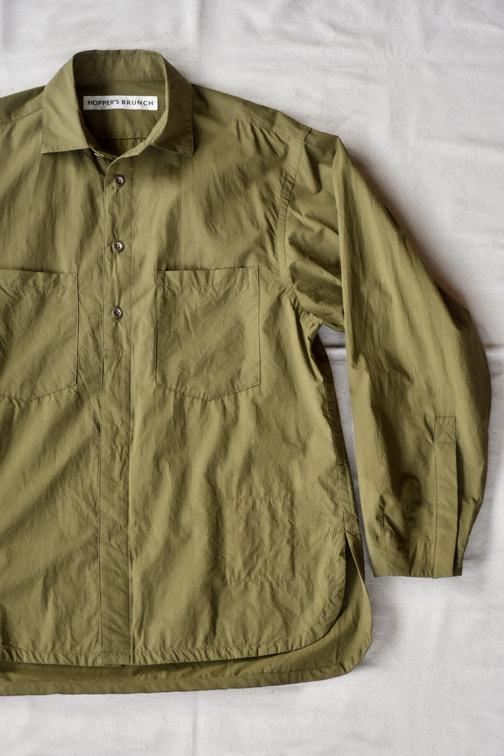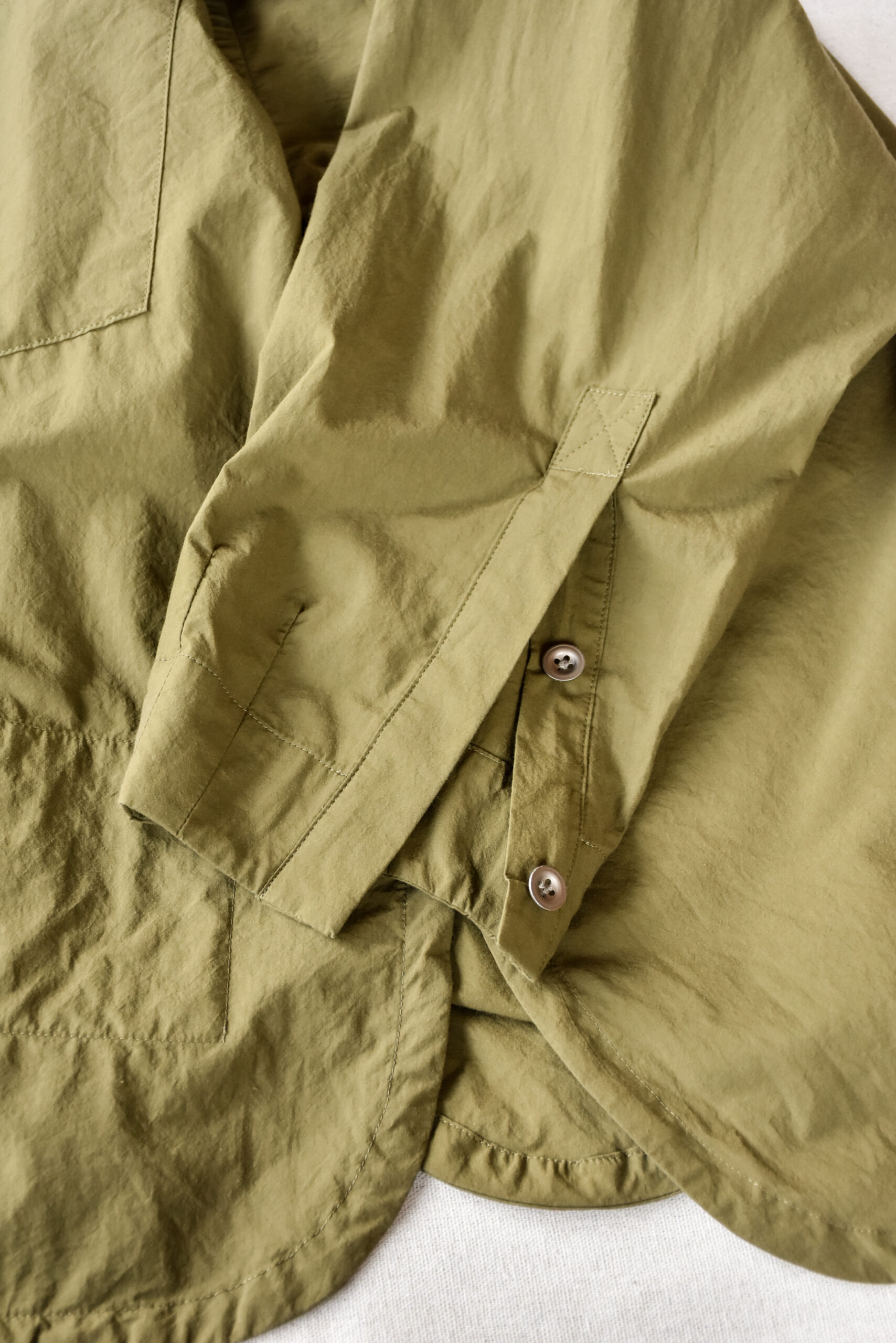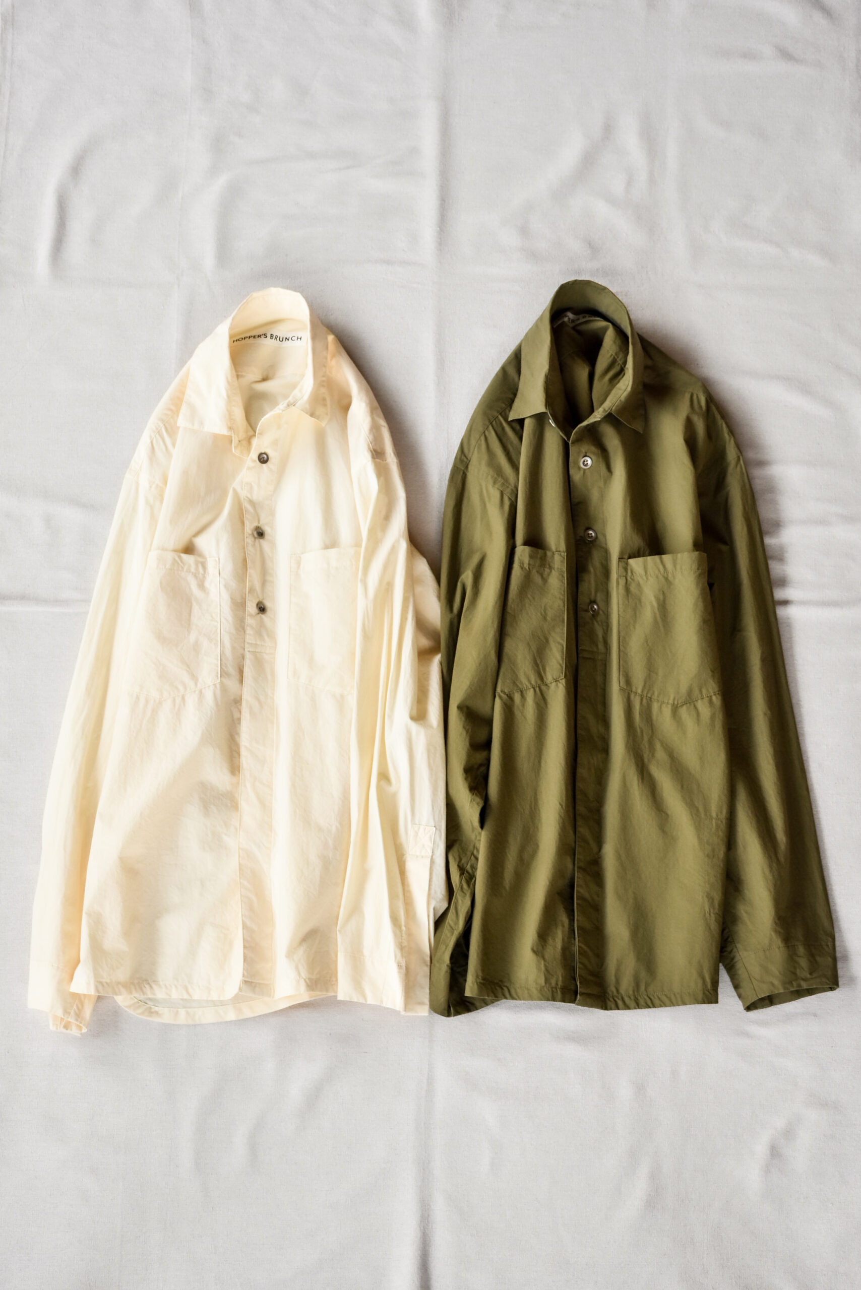 シャツの軽さで着られて、ジャケットのようにも使える一着。