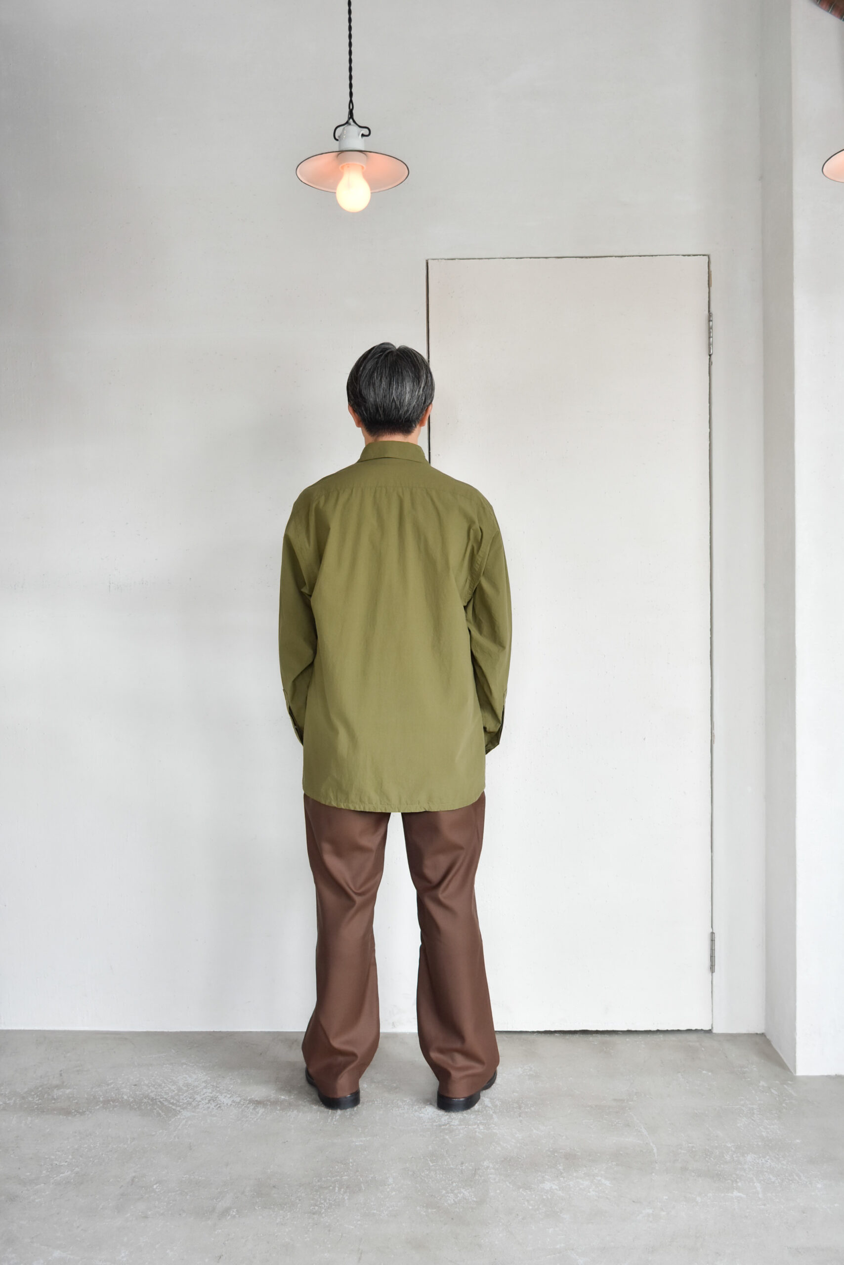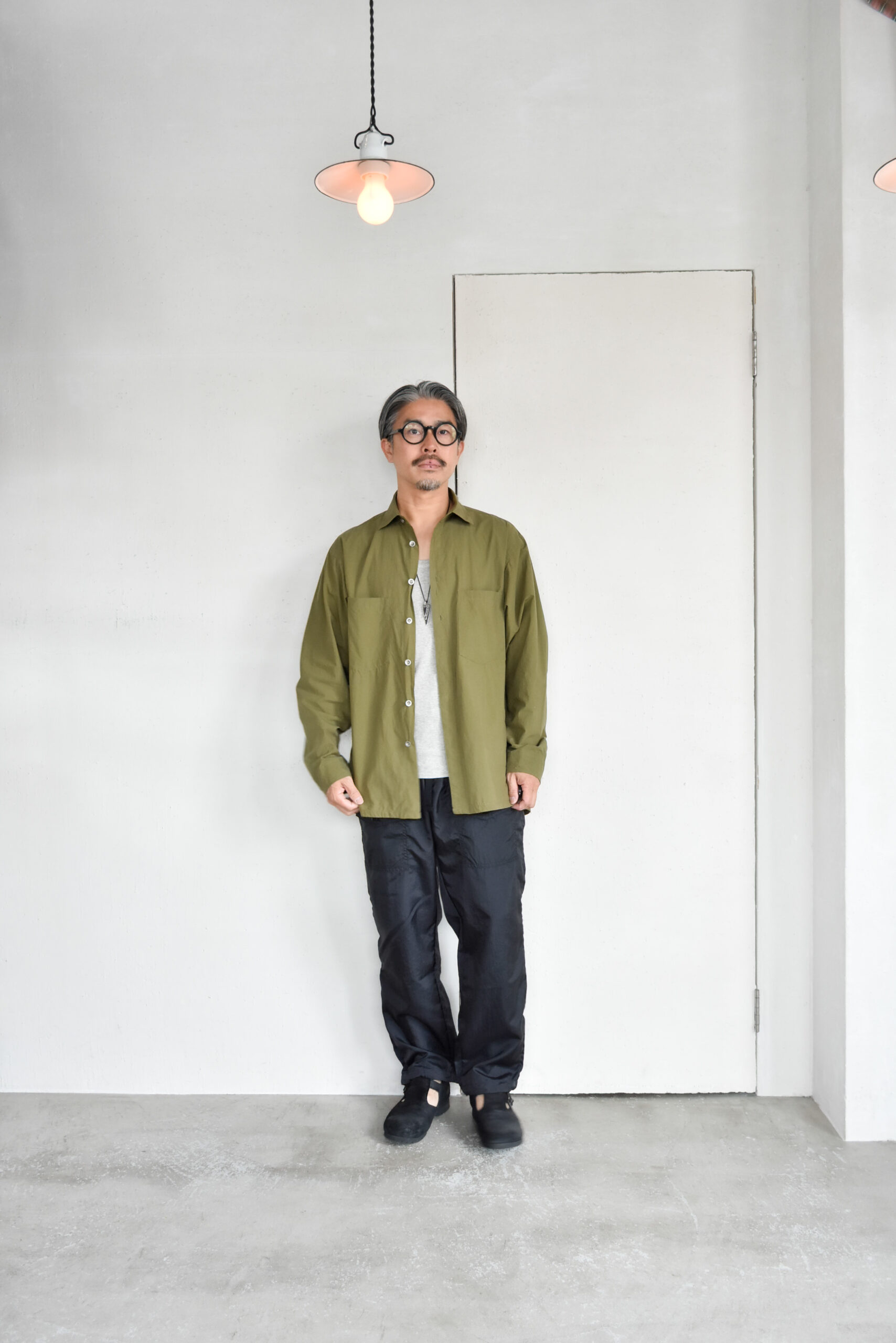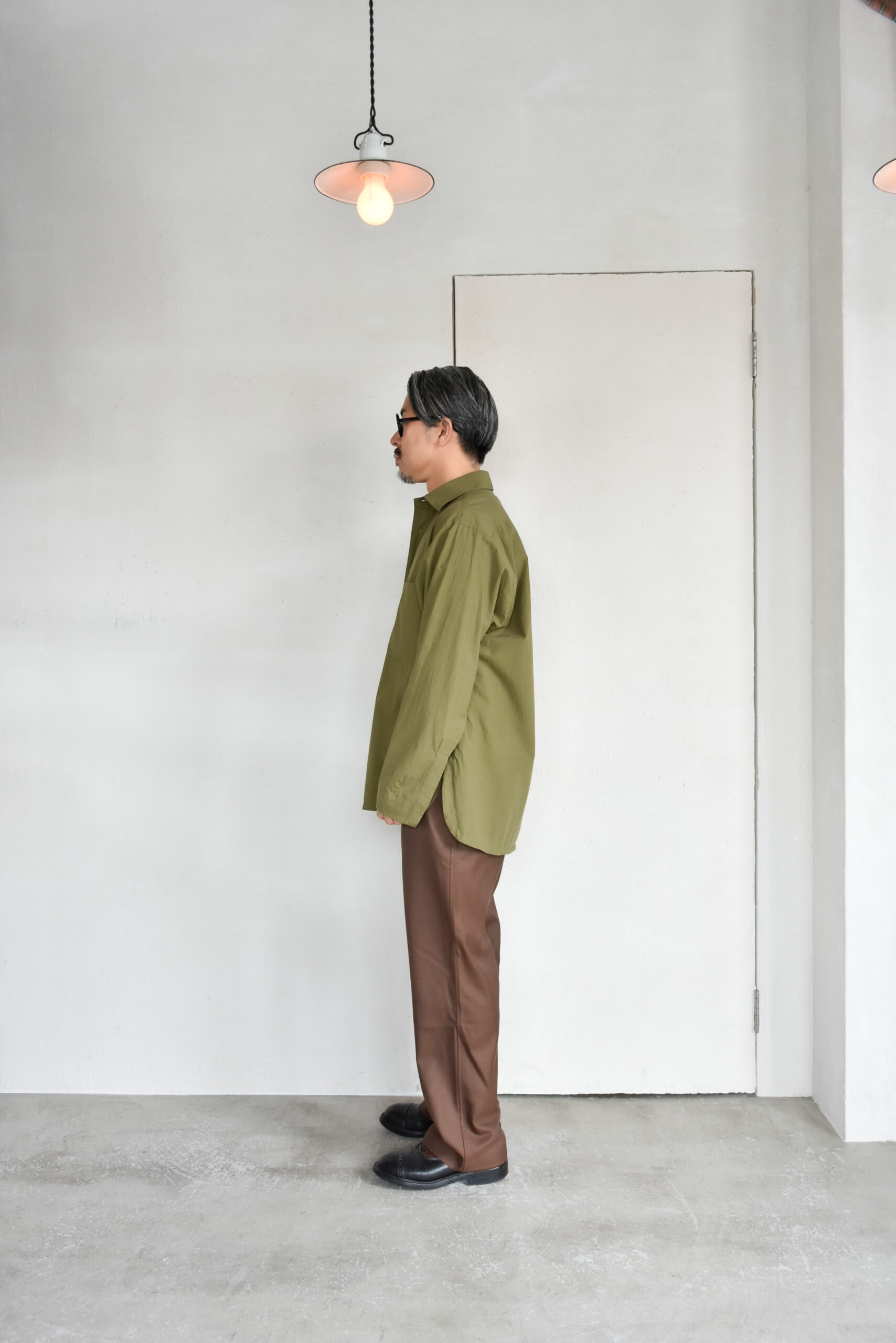 洗いをかけたタイプライタークロスは、高密度ならではのハリを残しつつ、空気を含んだような柔らかさがあり、少しカサッとしたドライなタッチで肌離れもいい。