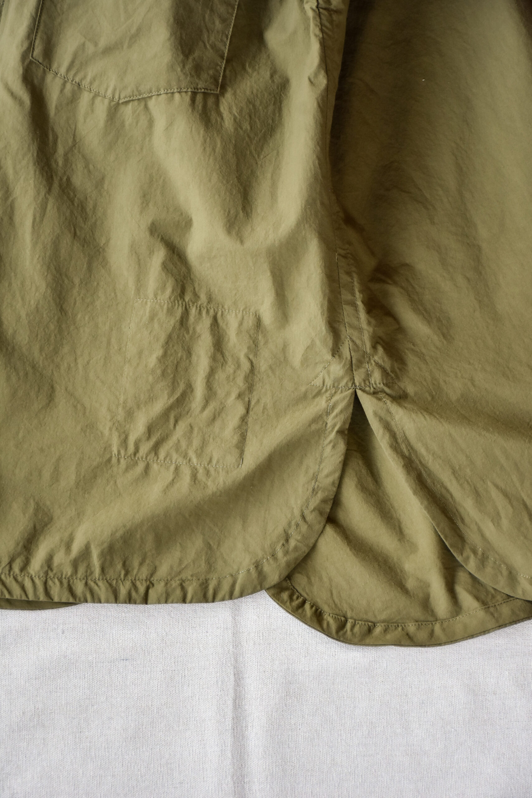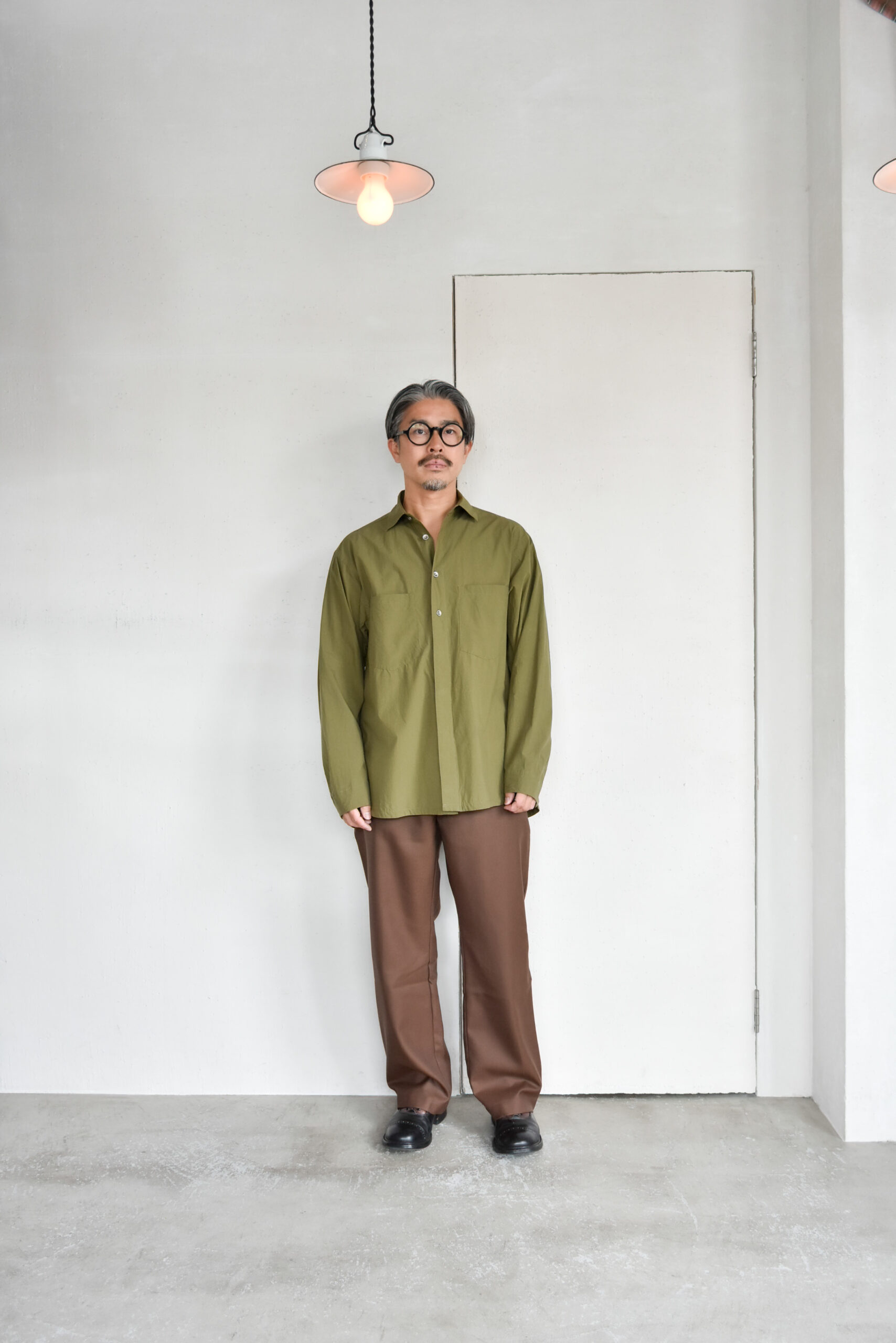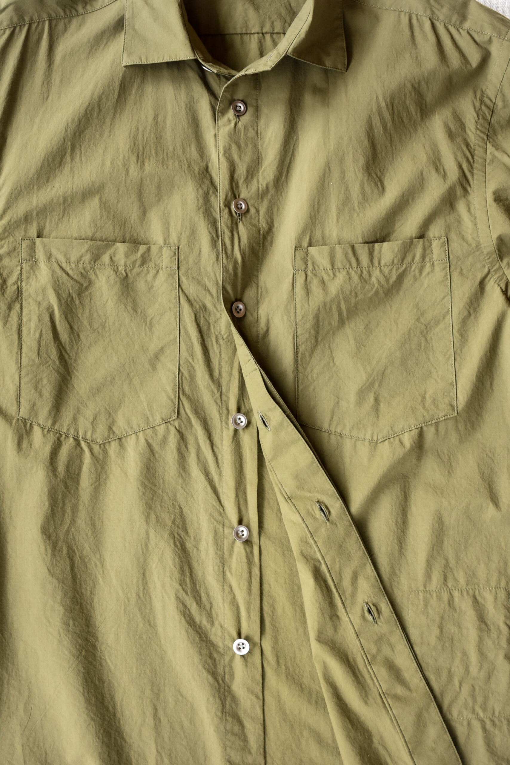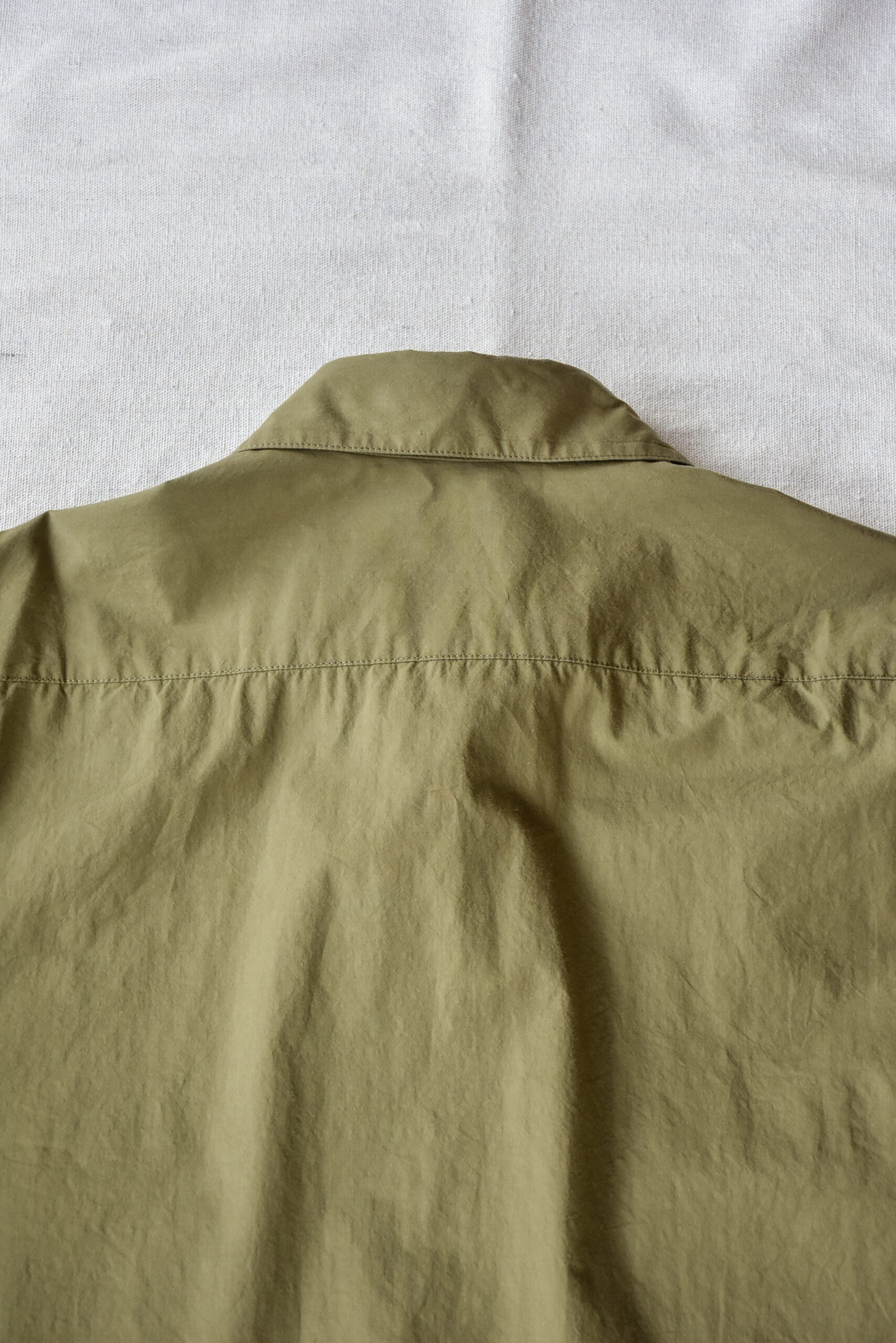 洗いをかけたタイプライタークロスは、高密度ならではのハリを残しつつ、空気を含んだような柔らかさがあり、少しカサッとしたドライなタッチで肌離れもいい。