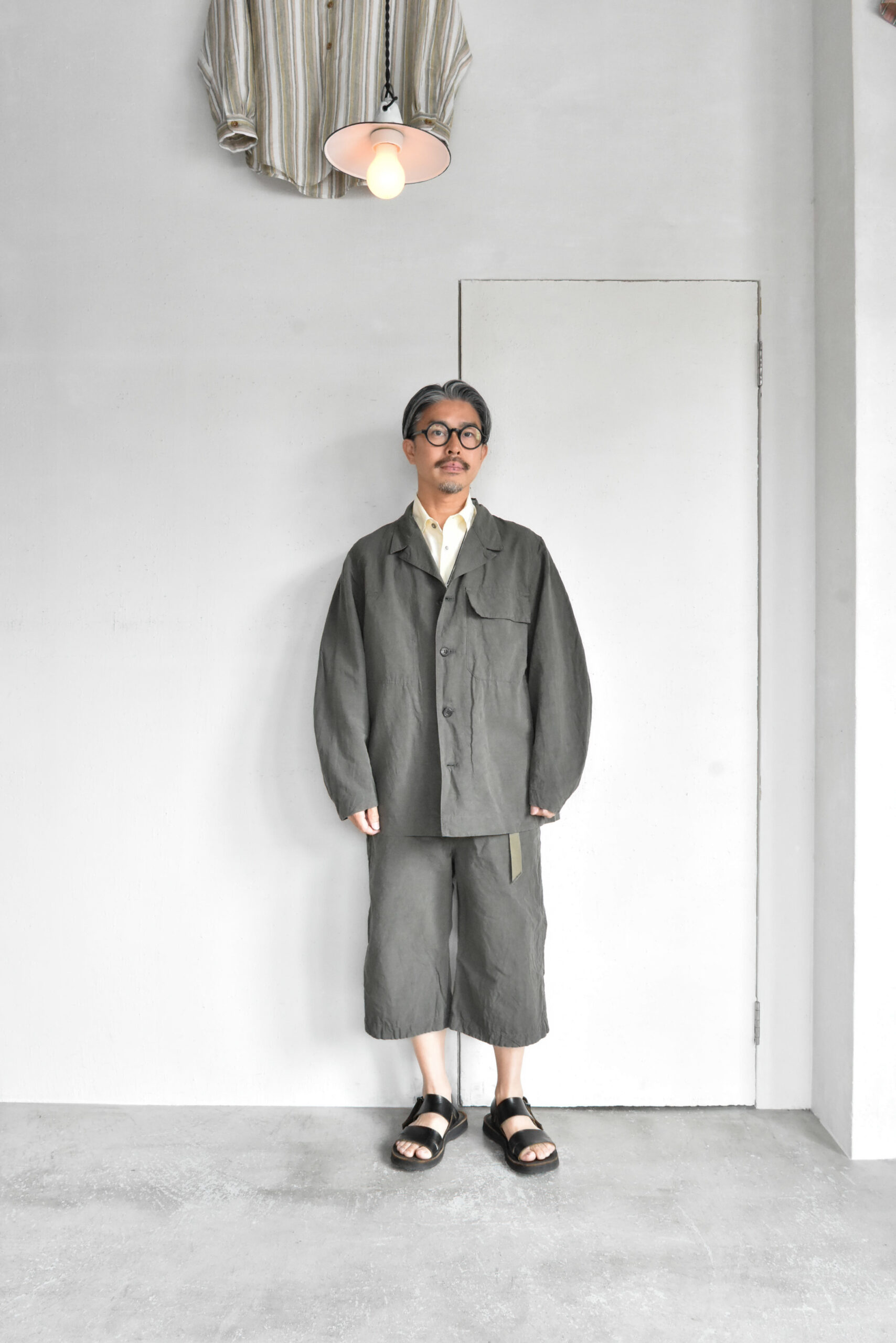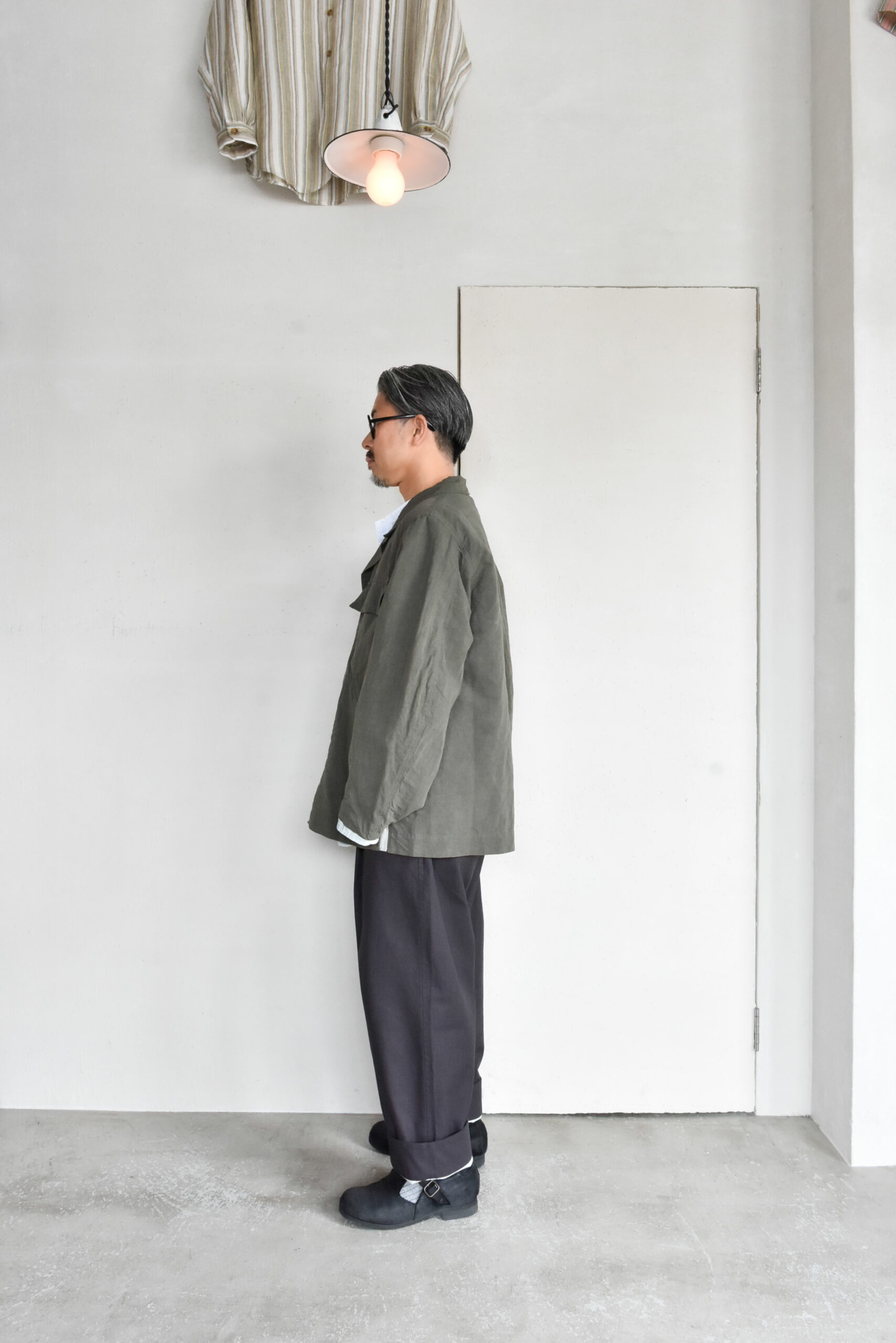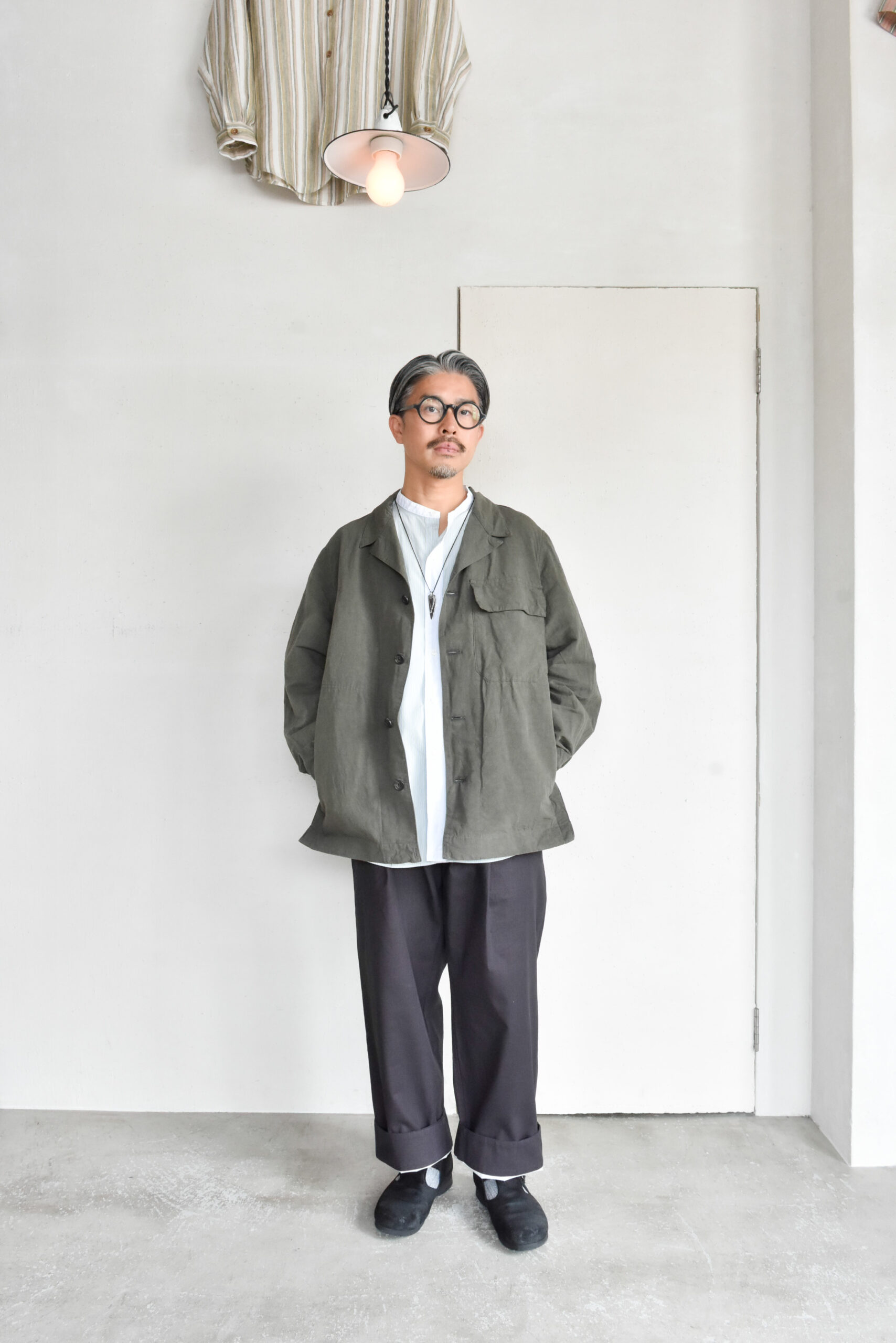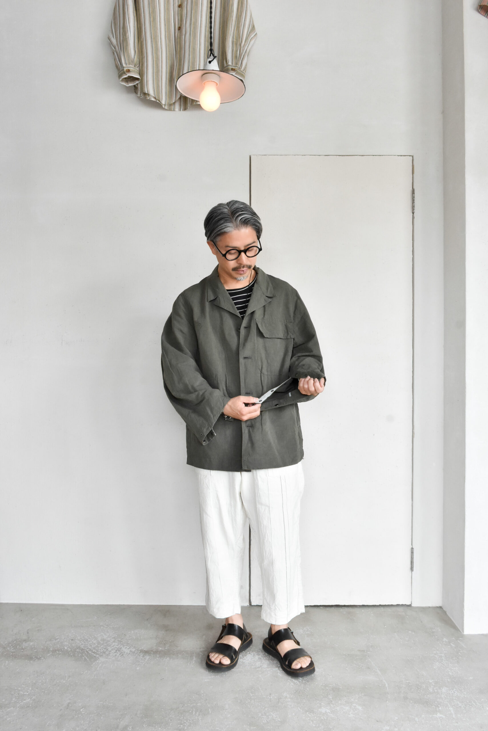生地は、ドライタッチで奥行きのある色味が魅力のコットンリネンのオリーブと、ほのかな光沢とシャリ感を持つコットンナイロンのネイビーの2種類。