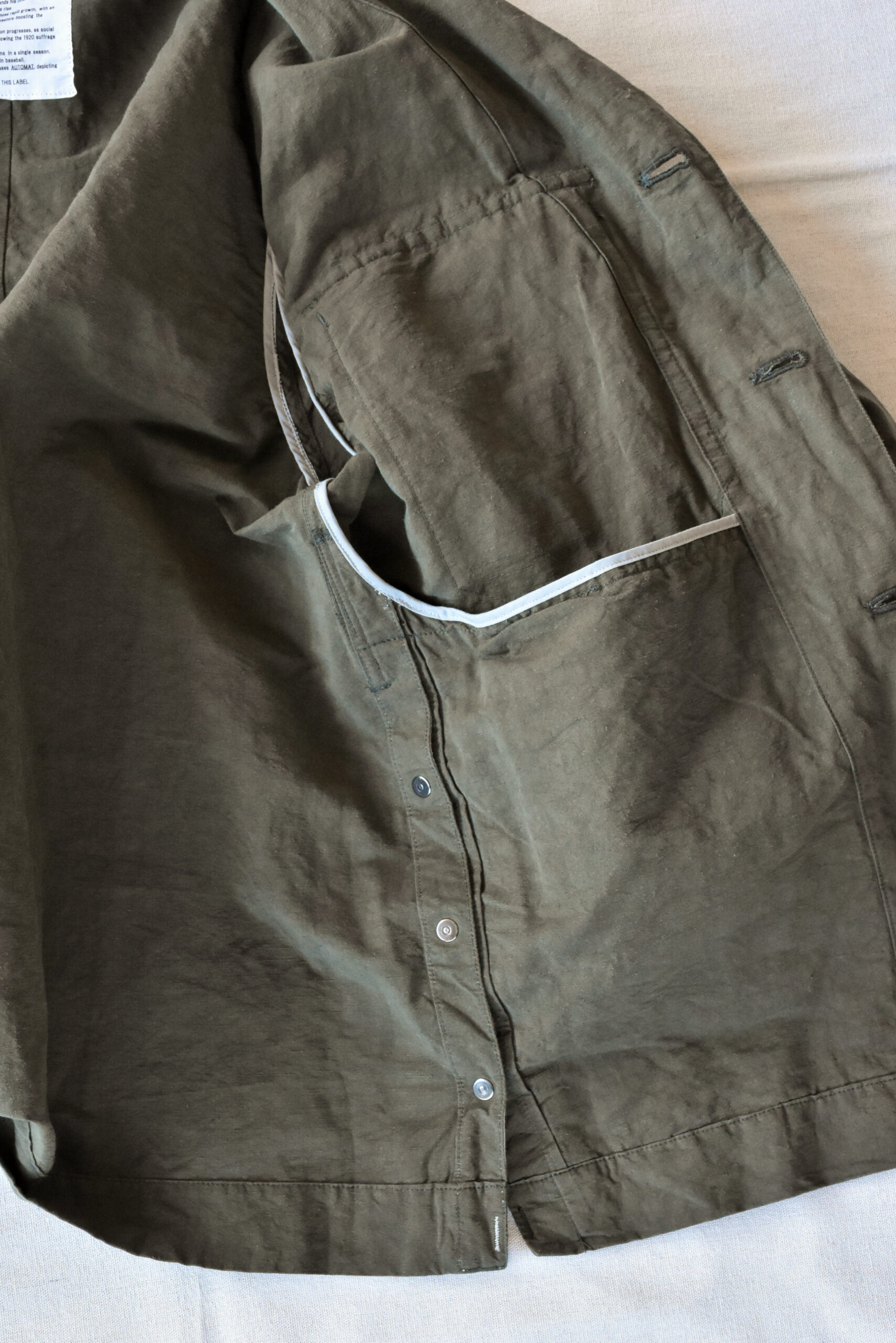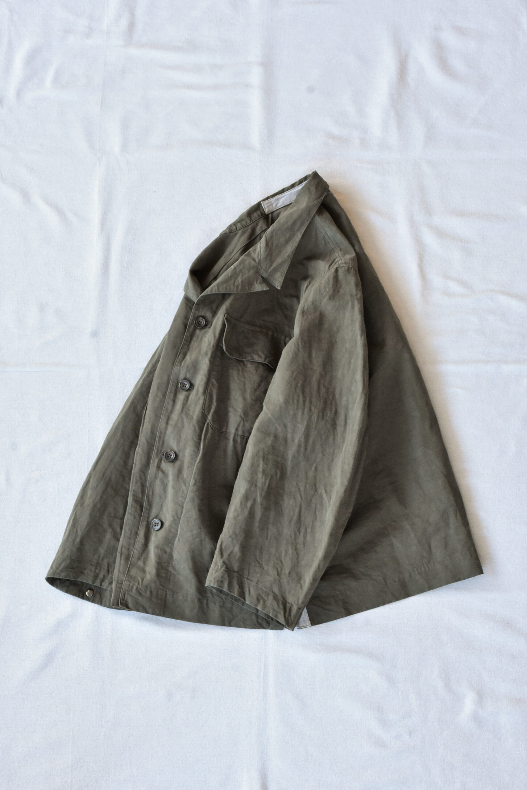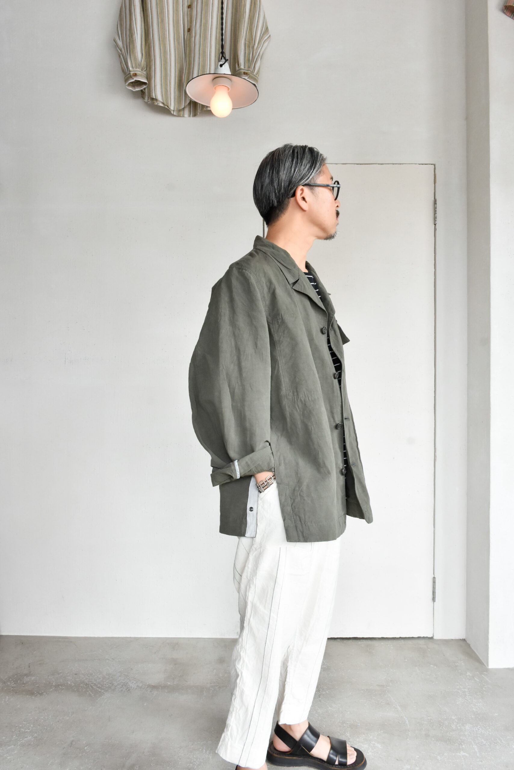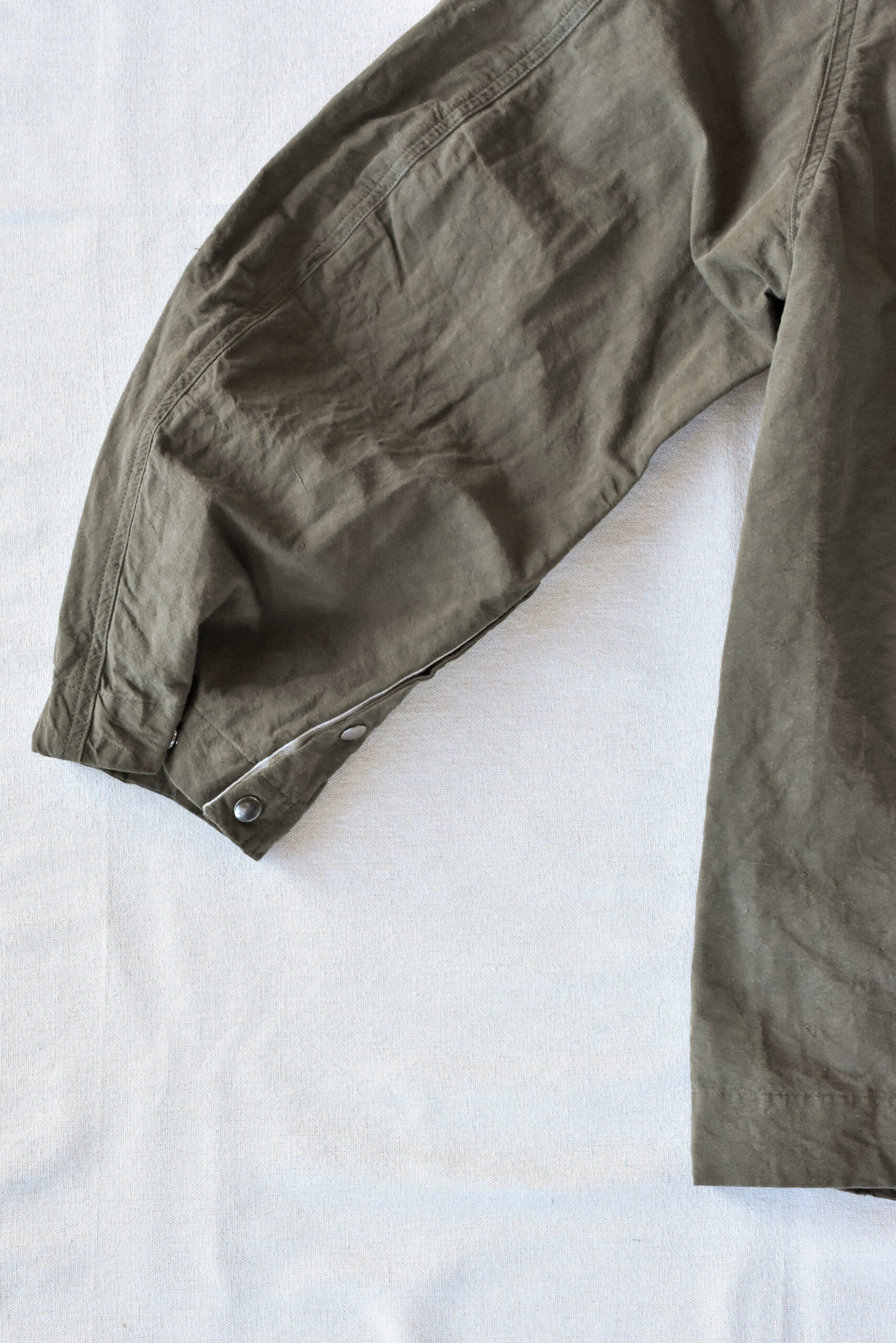 生地は、ドライタッチで奥行きのある色味が魅力のコットンリネンのオリーブと、ほのかな光沢とシャリ感を持つコットンナイロンのネイビーの2種類。