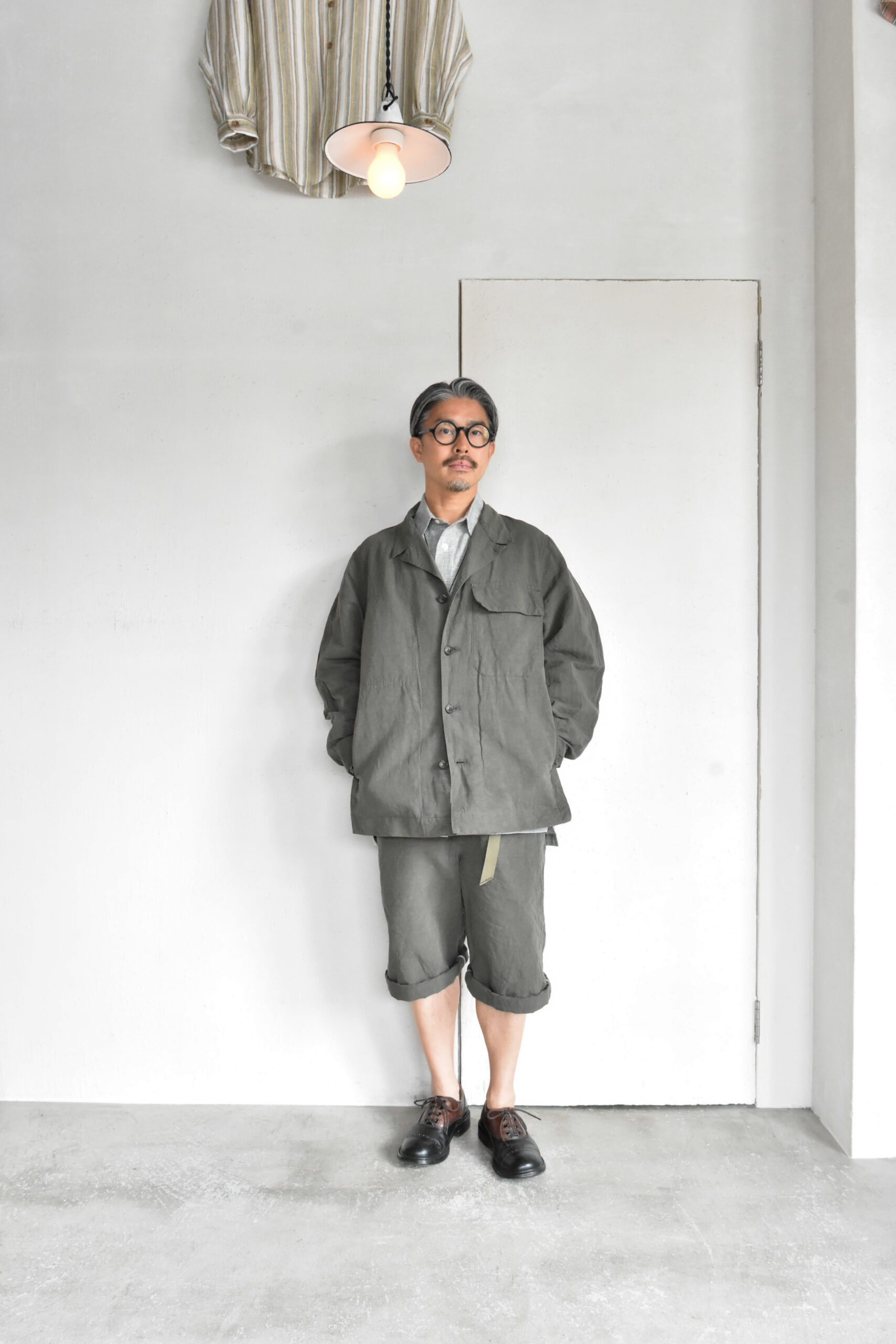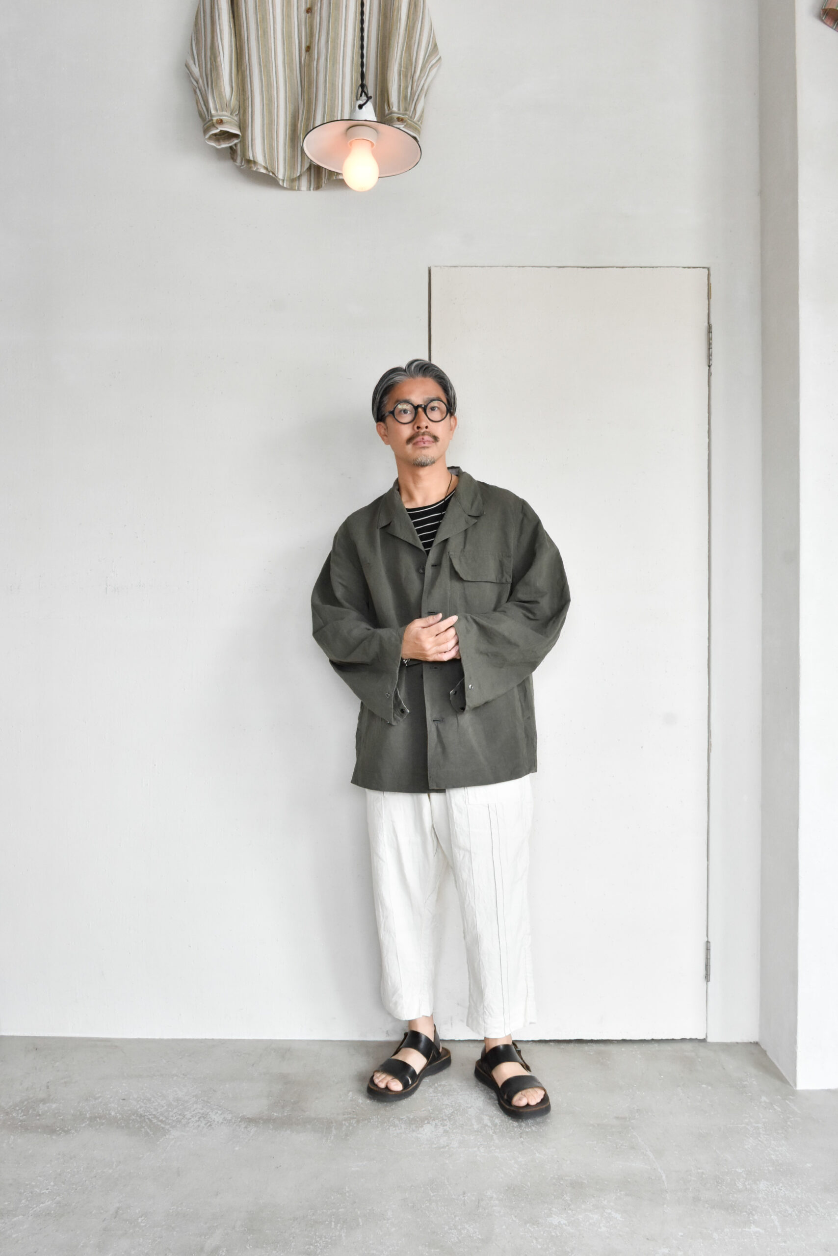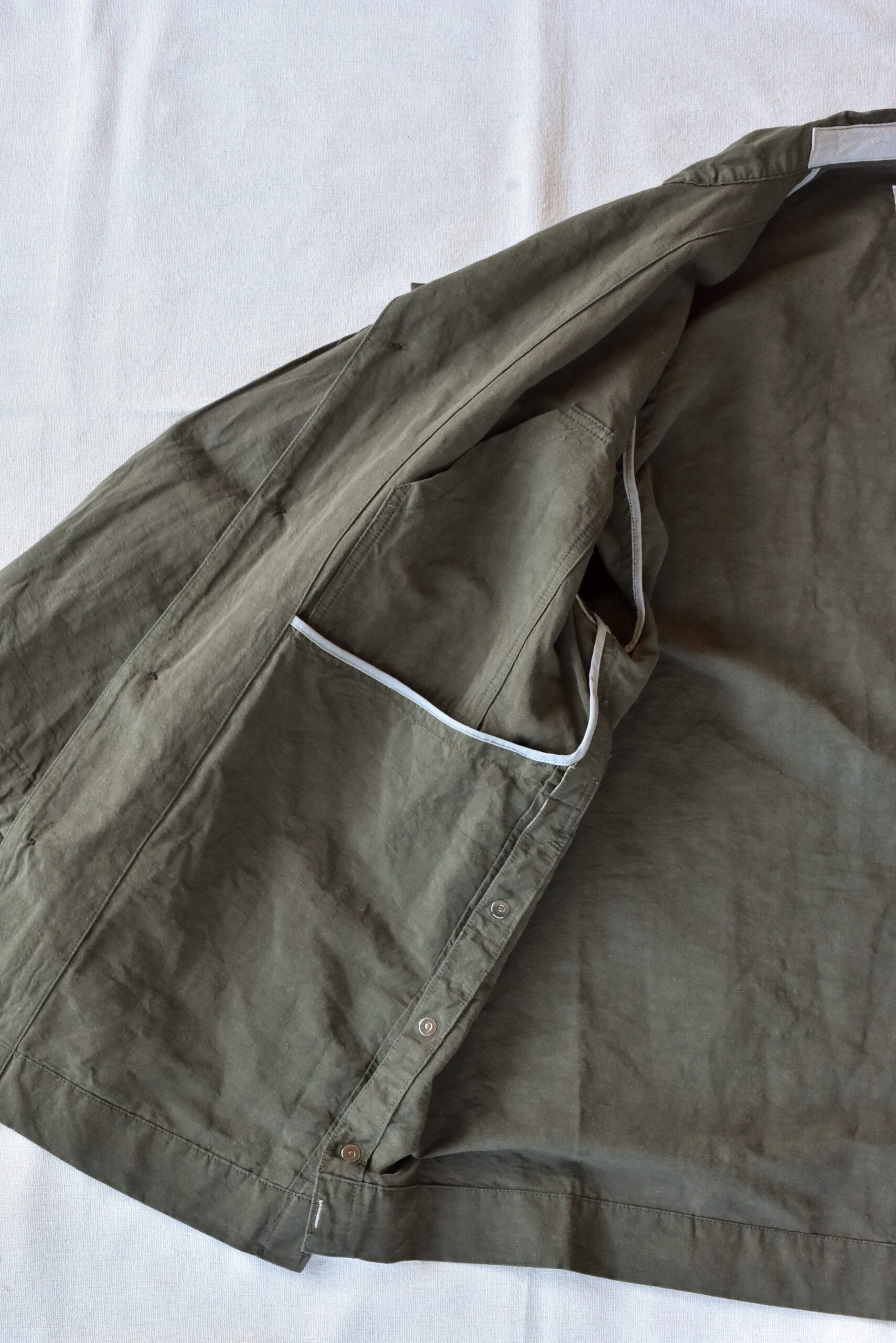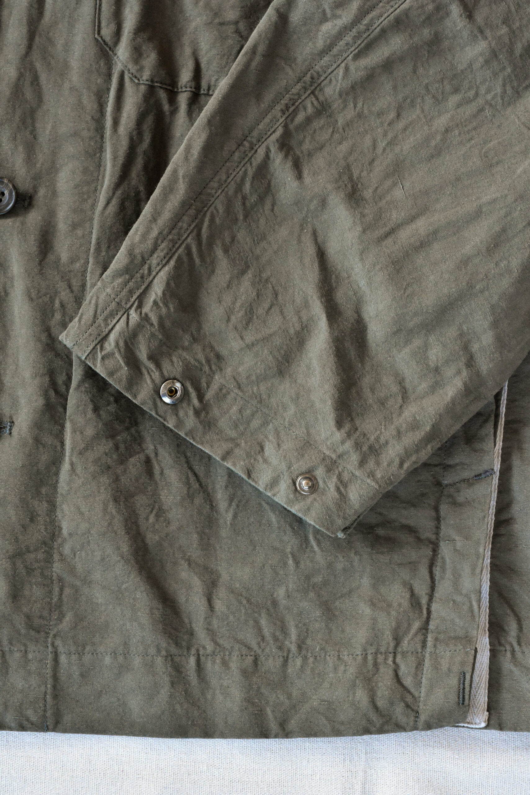 生地は、ドライタッチで奥行きのある色味が魅力のコットンリネンのオリーブと、ほのかな光沢とシャリ感を持つコットンナイロンのネイビーの2種類。