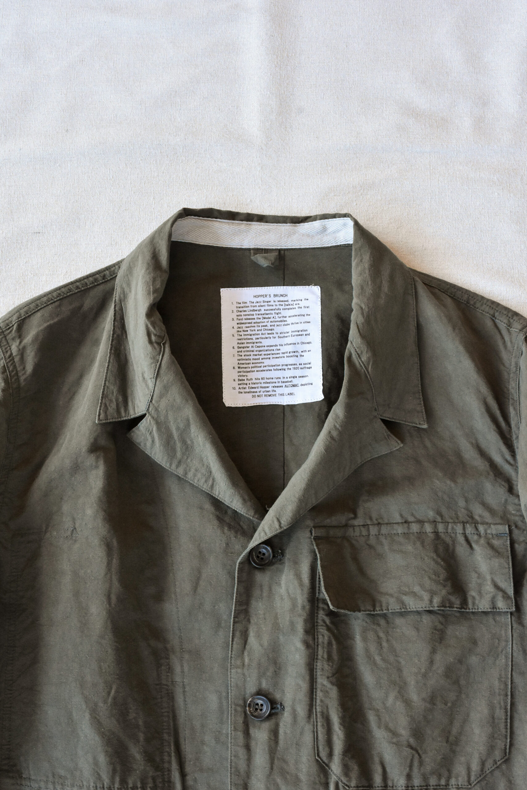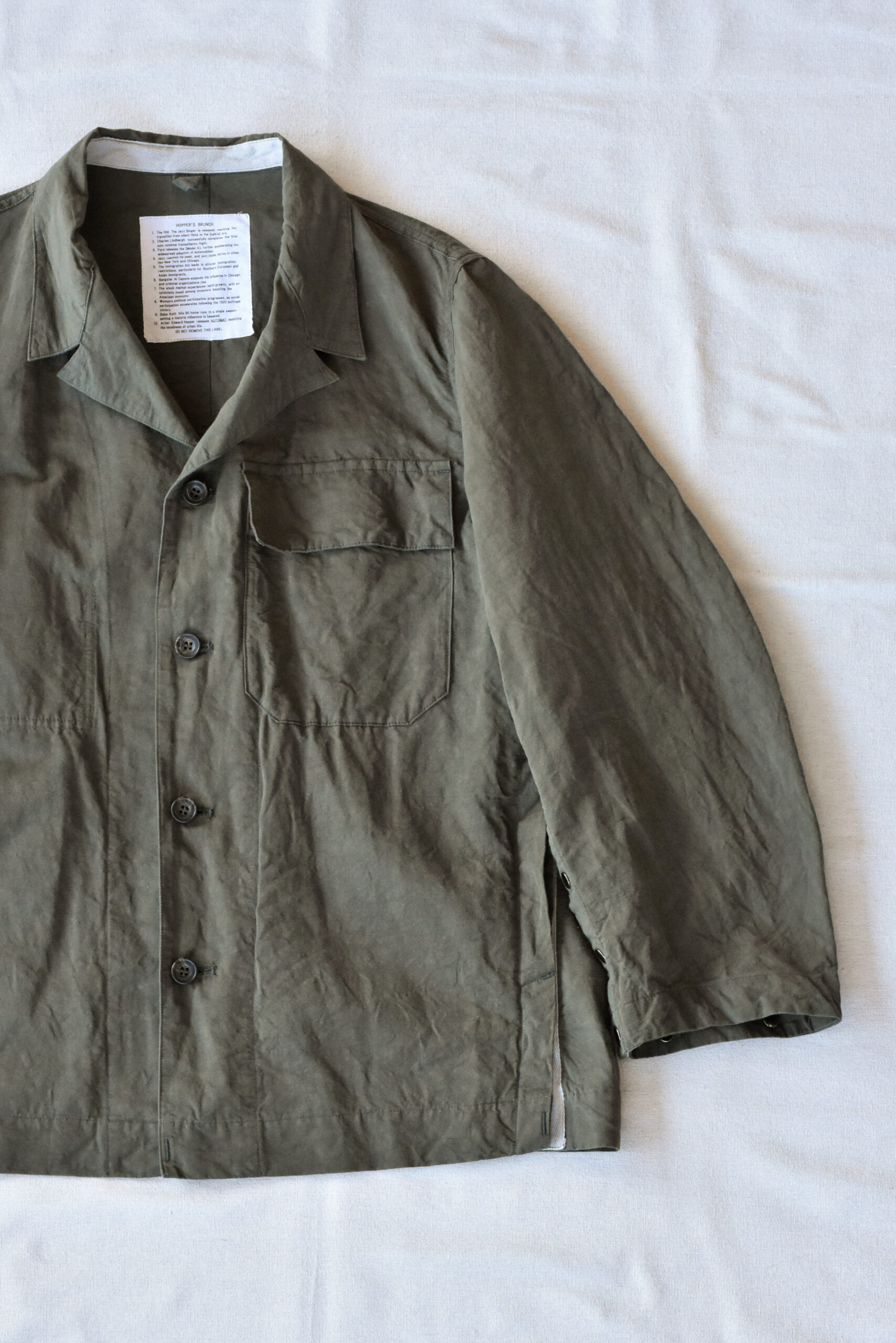 HOPPER’S BRUNCHのTraveler Jacketは、カバーオールをベースにしながらも、袖口やサイドをスナップボタンで開閉できる構造によって、服の形や空気の通り、着心地を自在に調整できる一着です。