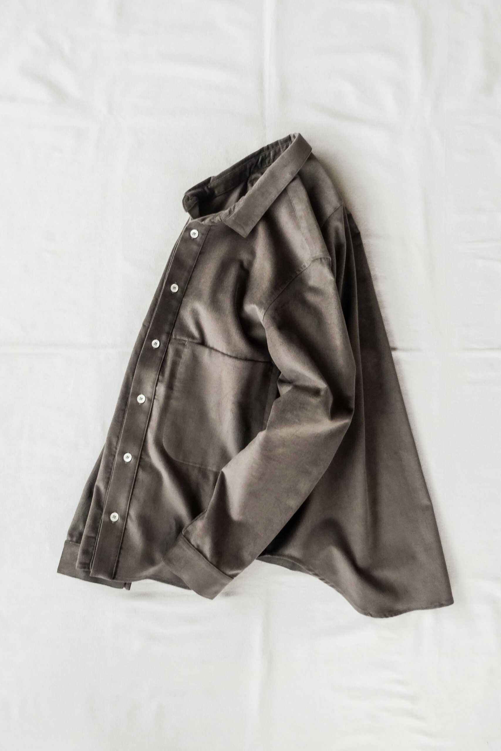 生地は、光沢を帯びた細畝のコーデュロイ。