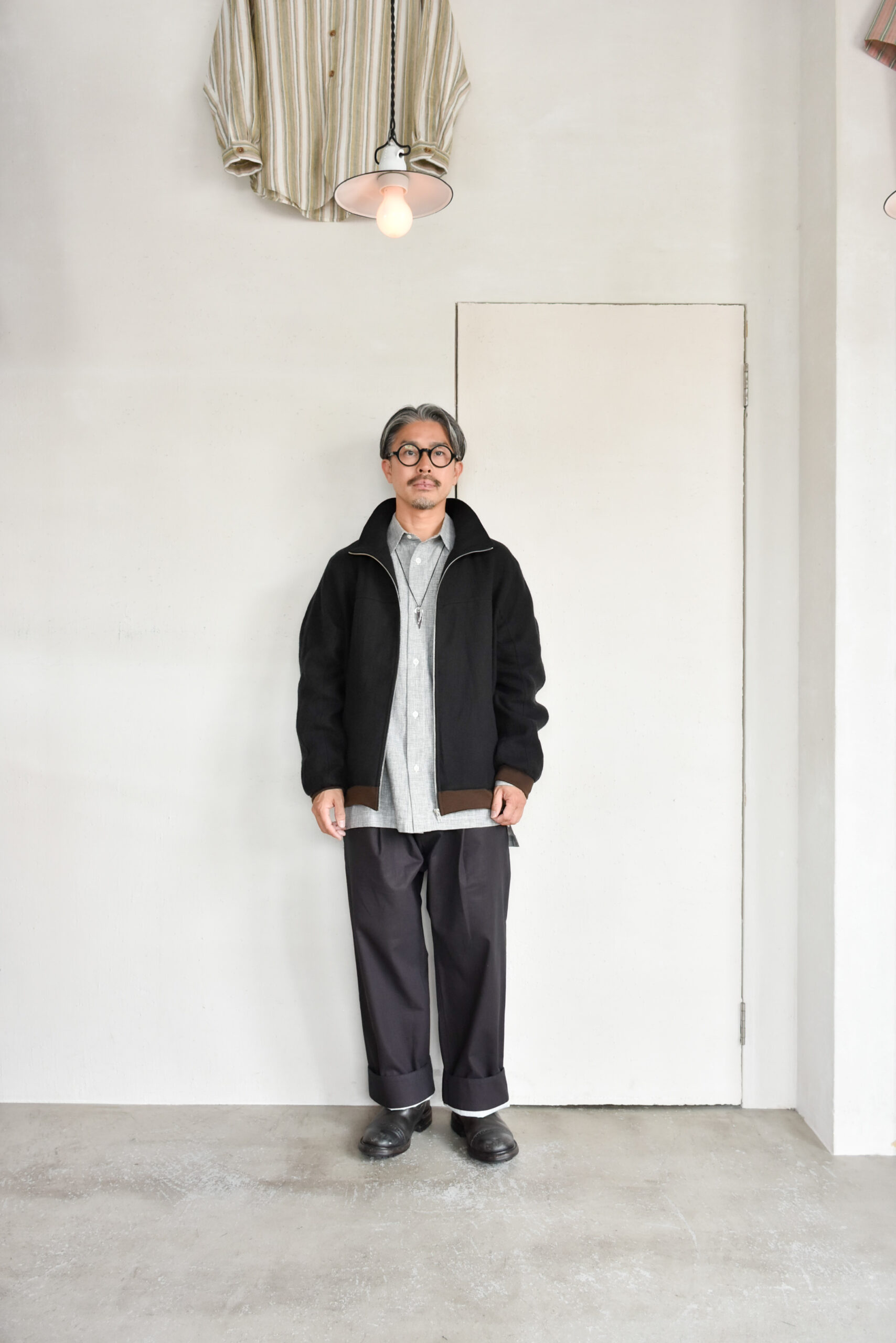 ゆとりのある身幅に対してアームはすっきりと整えられ、リラックスしながらもだらしなく見えないバランスに仕上がっています。