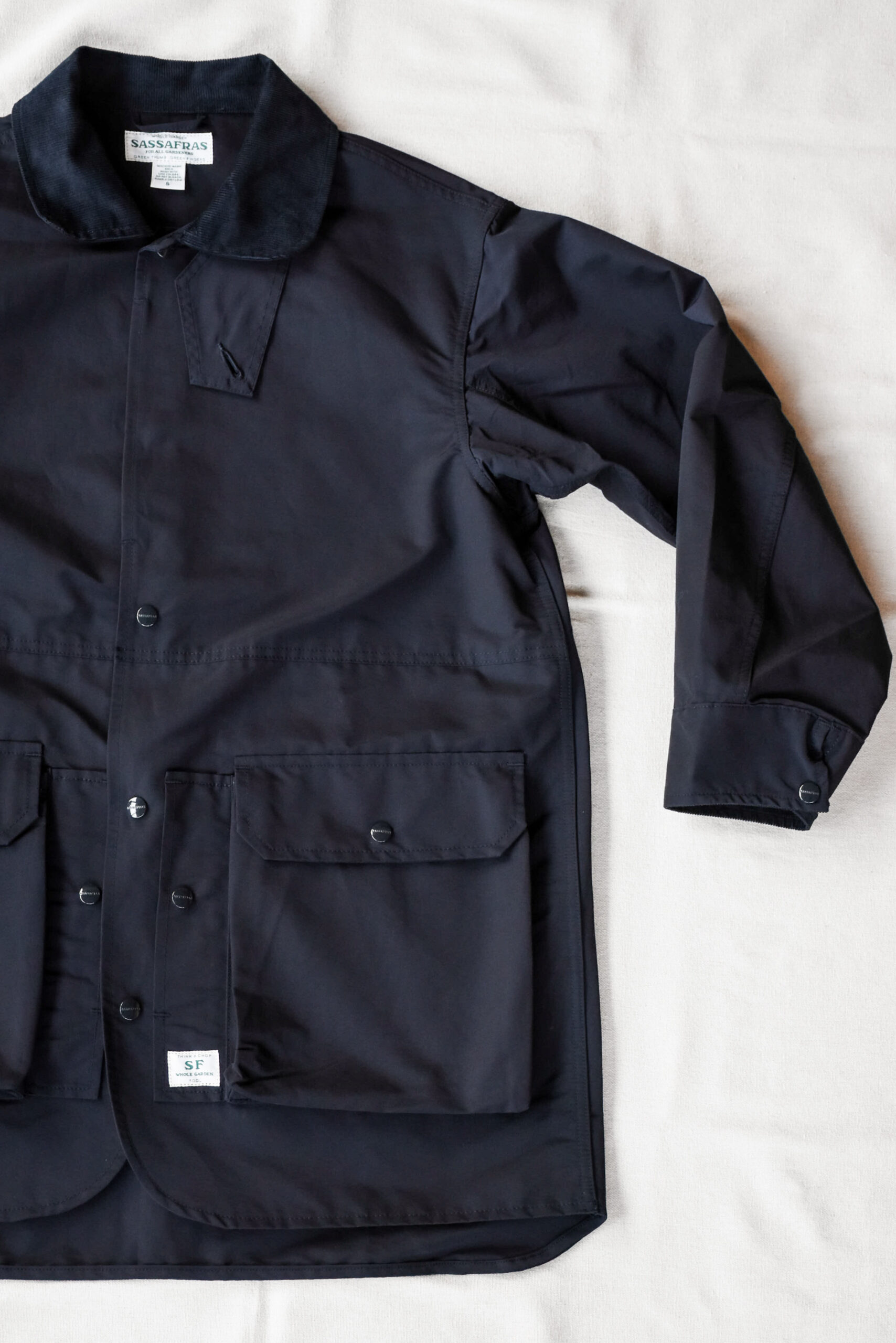 ハンティングやミリタリーの要素を背景に持ちながら、各ディテールのレイアウトが見事なSASSAFRASの新作コート。