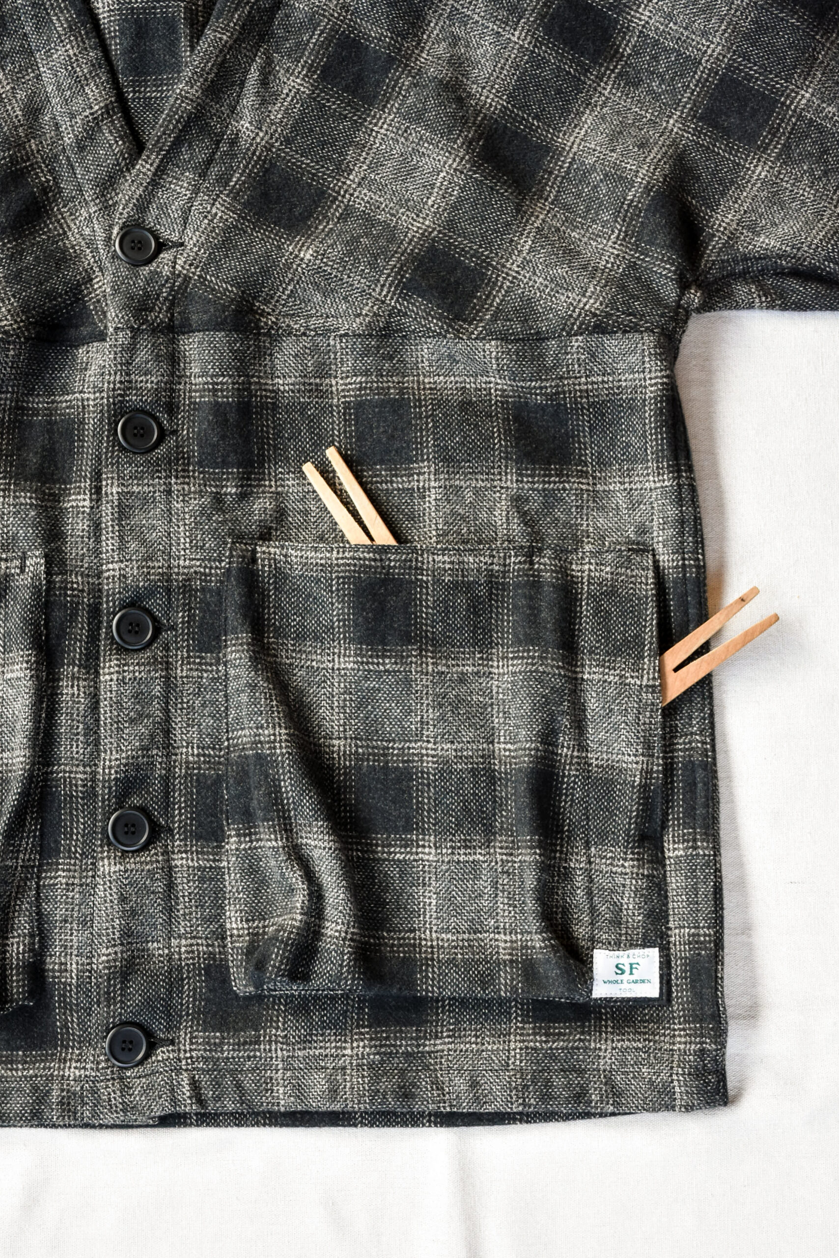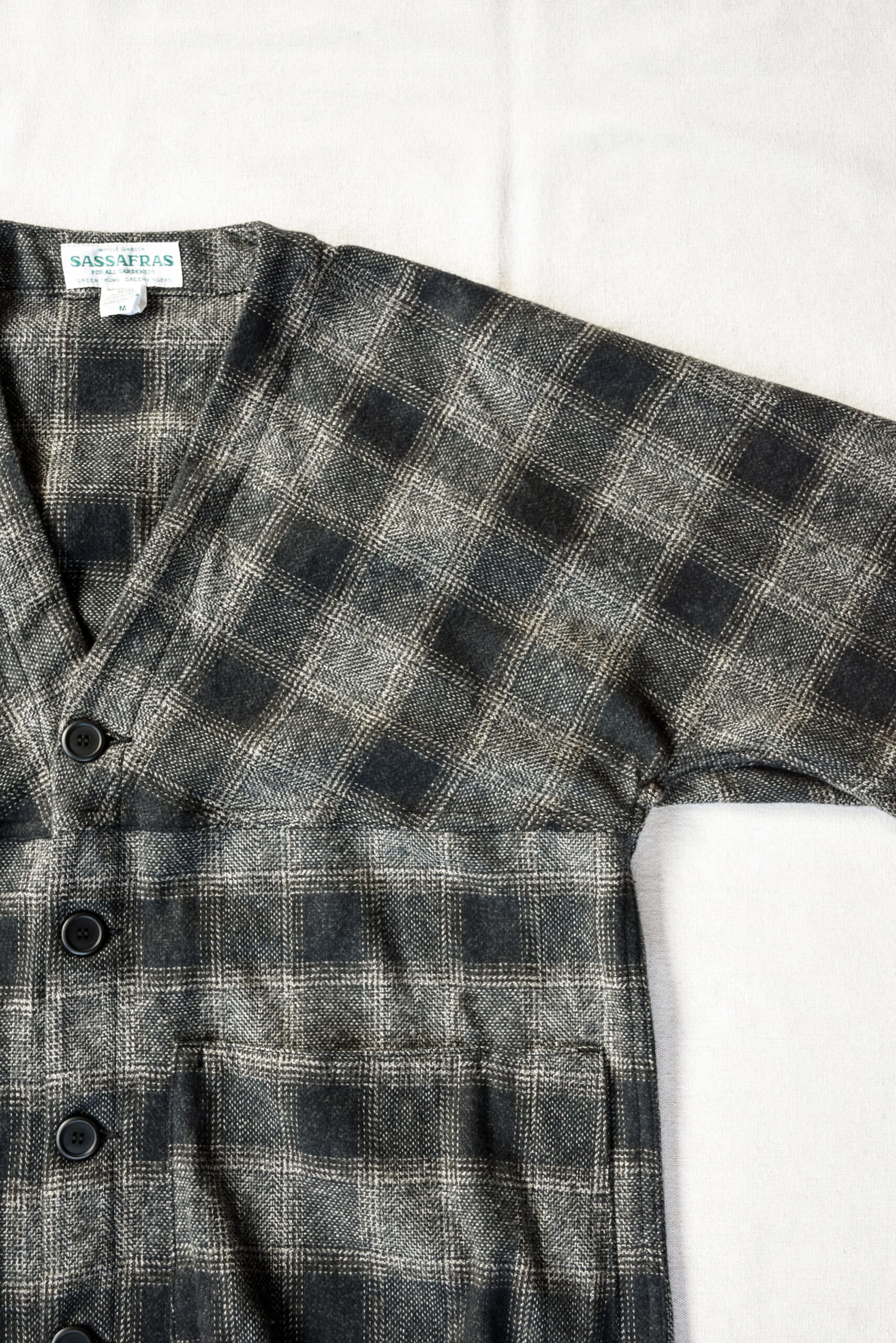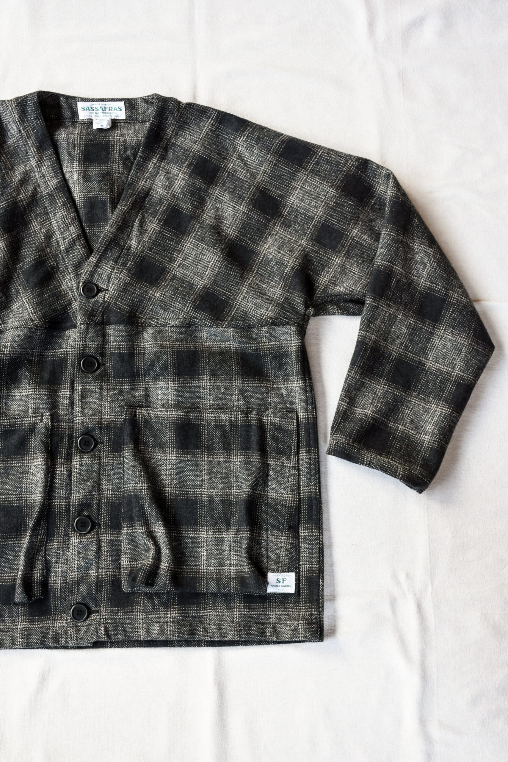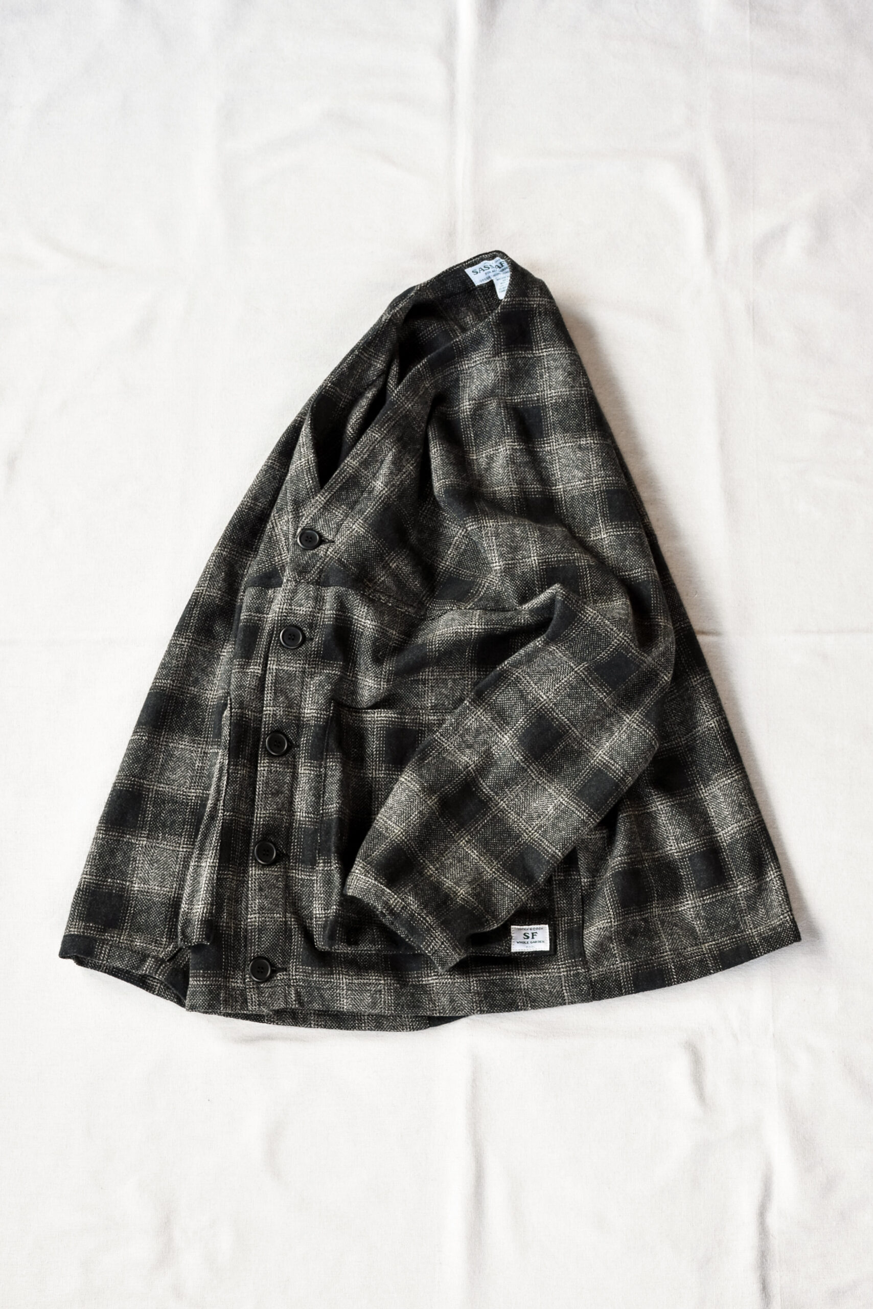 ササフラスのラインナップの中では、ユニークな立ち位置のジャケットですが、軽い羽織りとしても、冬場のアウターのインナーでも、季節ごとに役割を変えながら長く活躍してくれる一枚です。