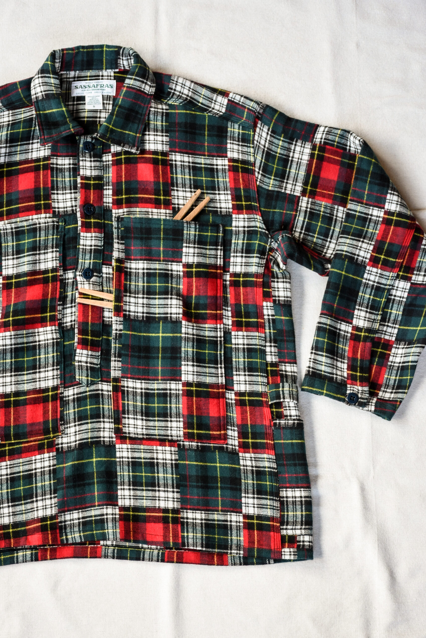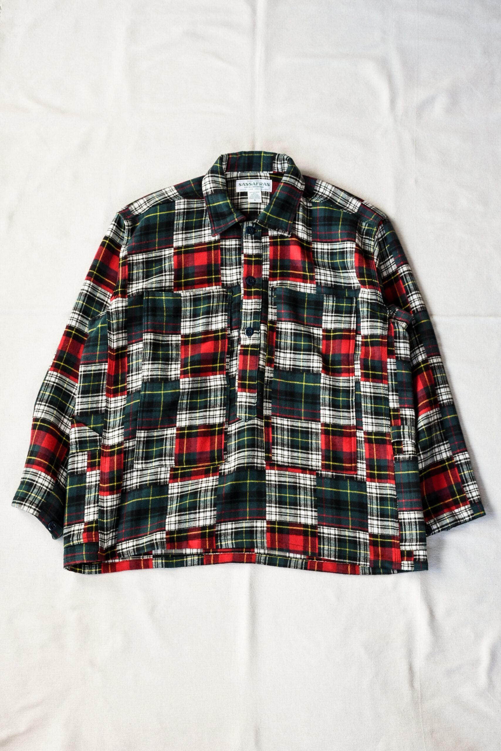 90’s のラルフやブルックスを思わせる懐かしいチェック柄を、ミリタリーベースのプルオーバー型に落とし込んだササフラスのT.P Gardener Shell Half。
